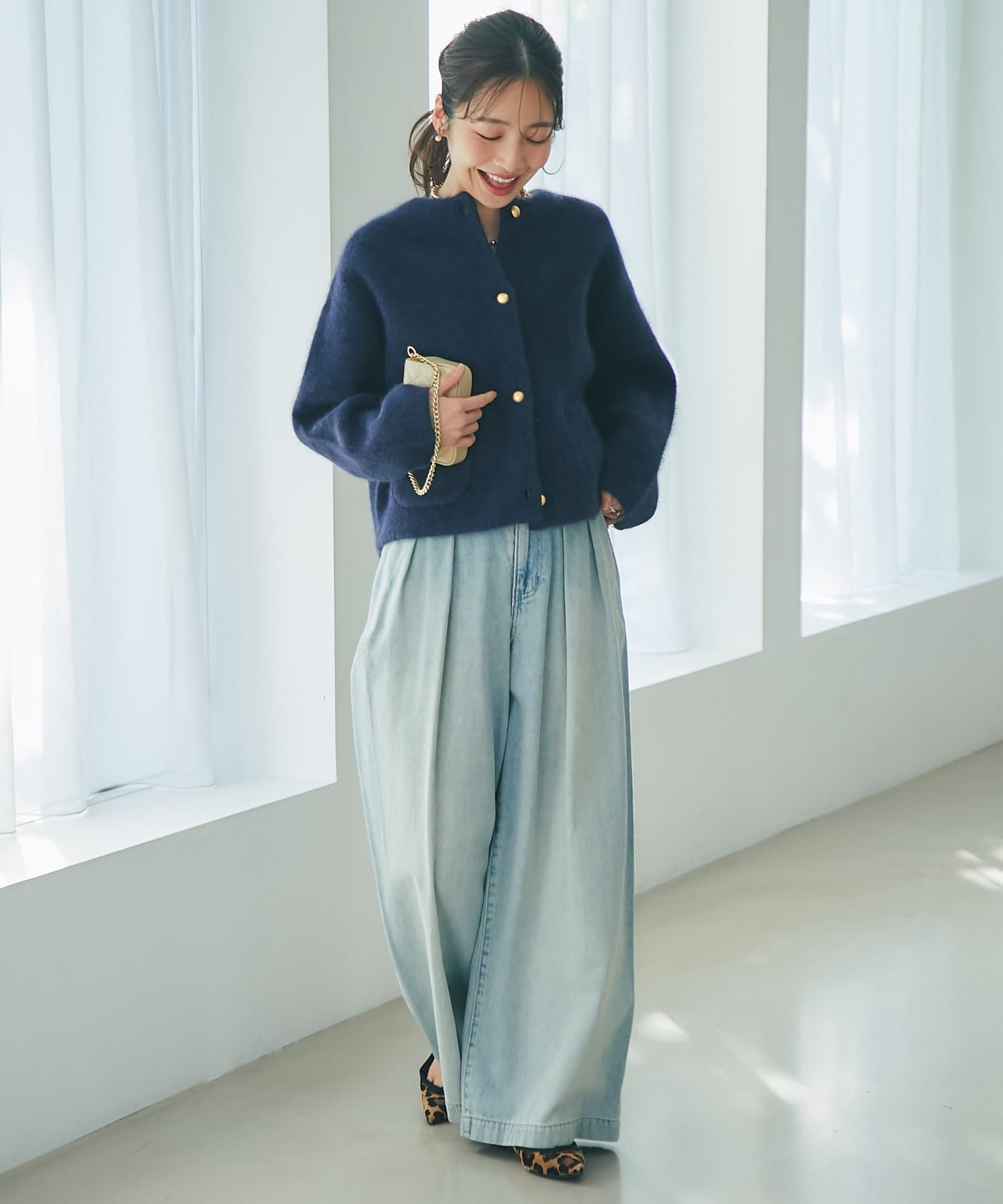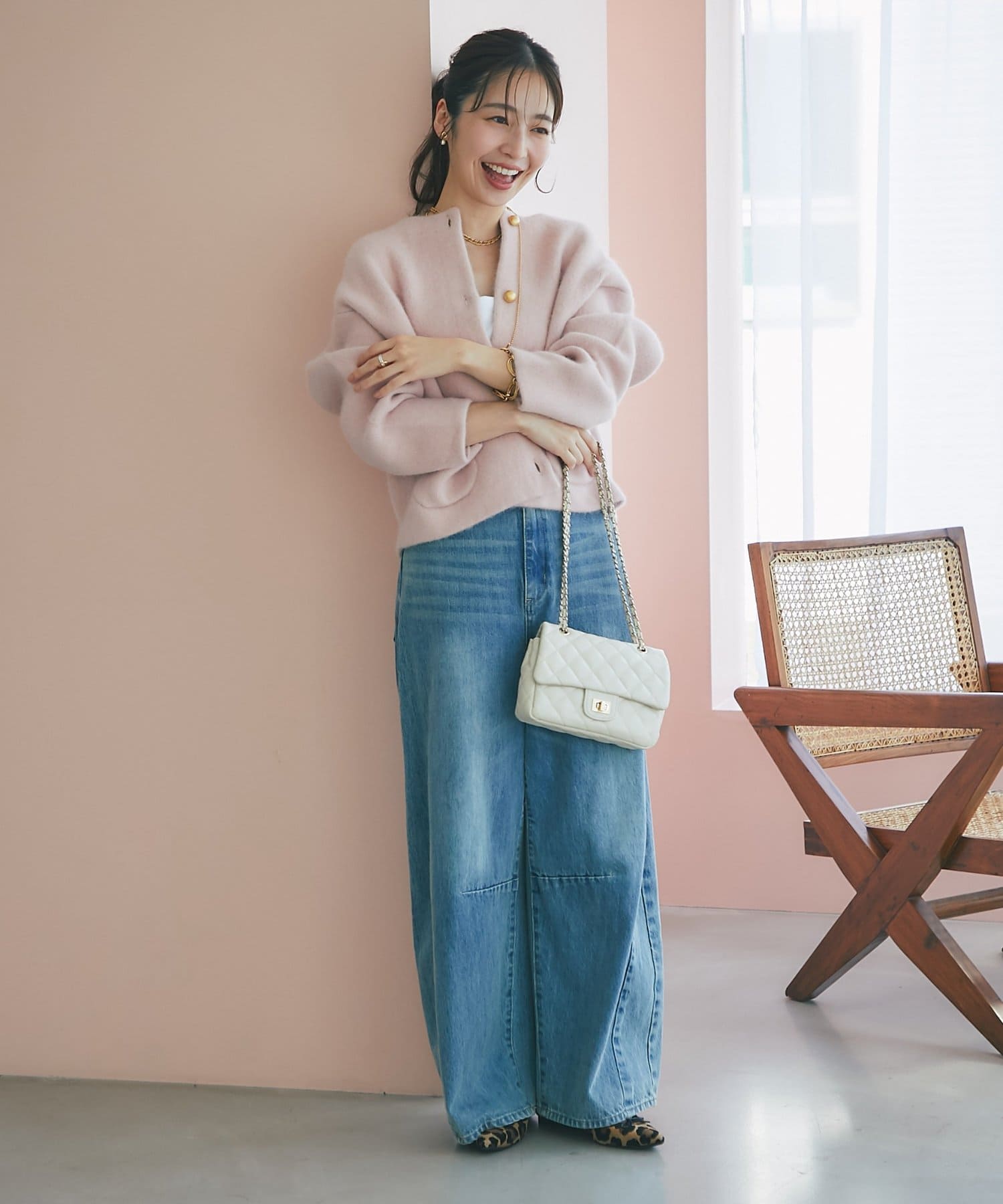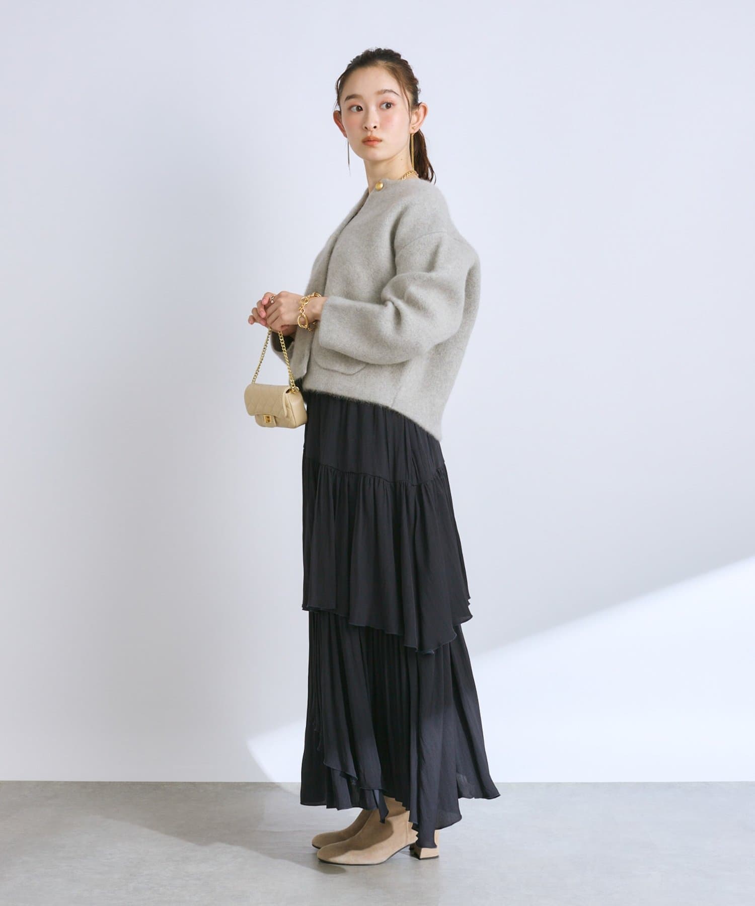 デニムと合わせたカジュアルスタイルや、スカートやワンピースのフェミニンスタイルも◎