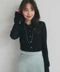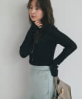 ボディに優しくフィットするリブ編みで、すっきりと見せつつも締めつけ感のない快適な着心地。
