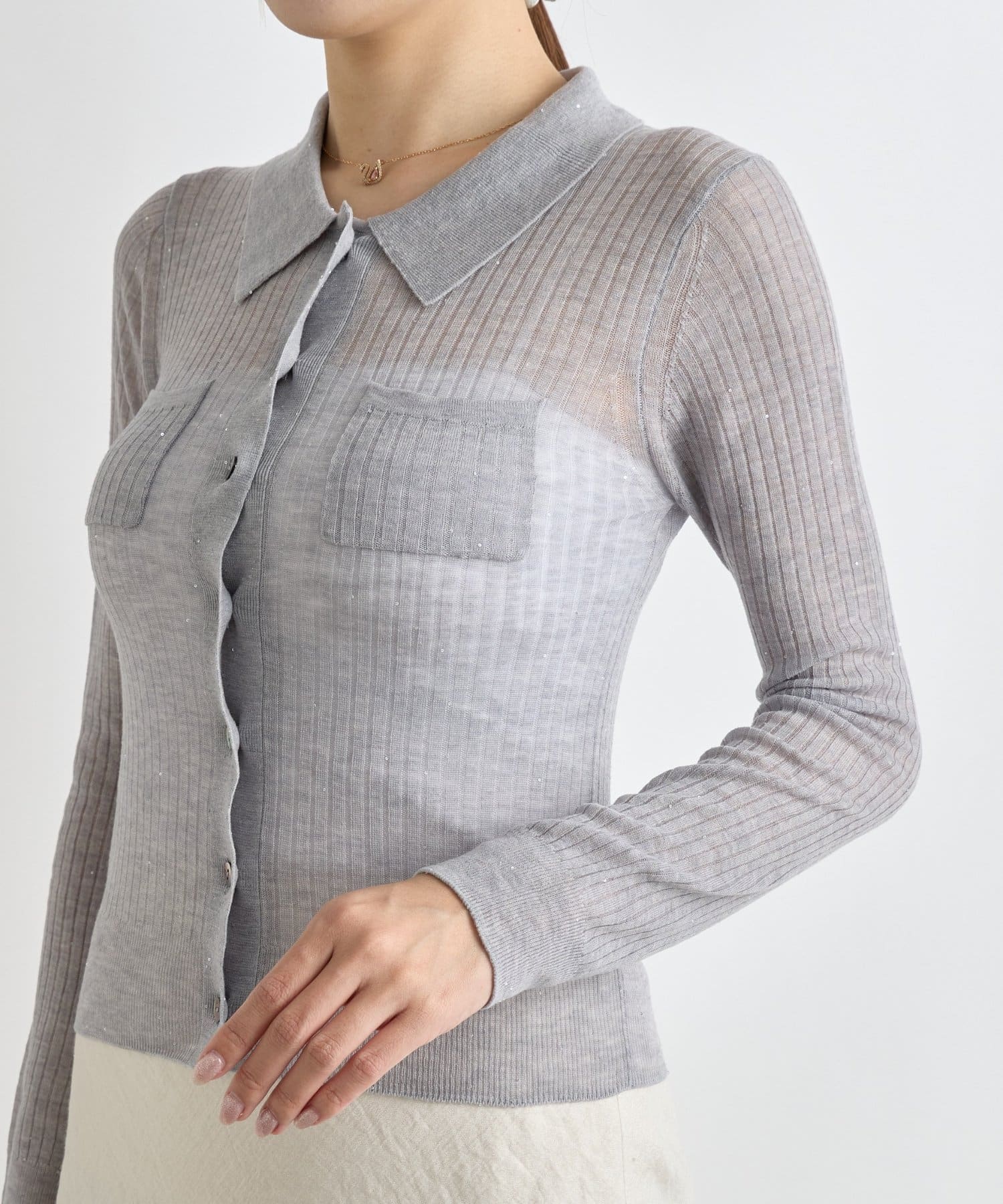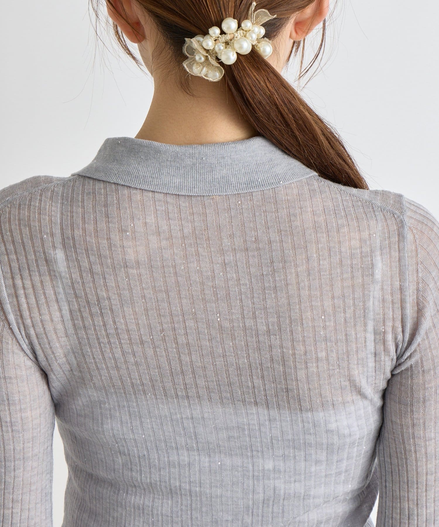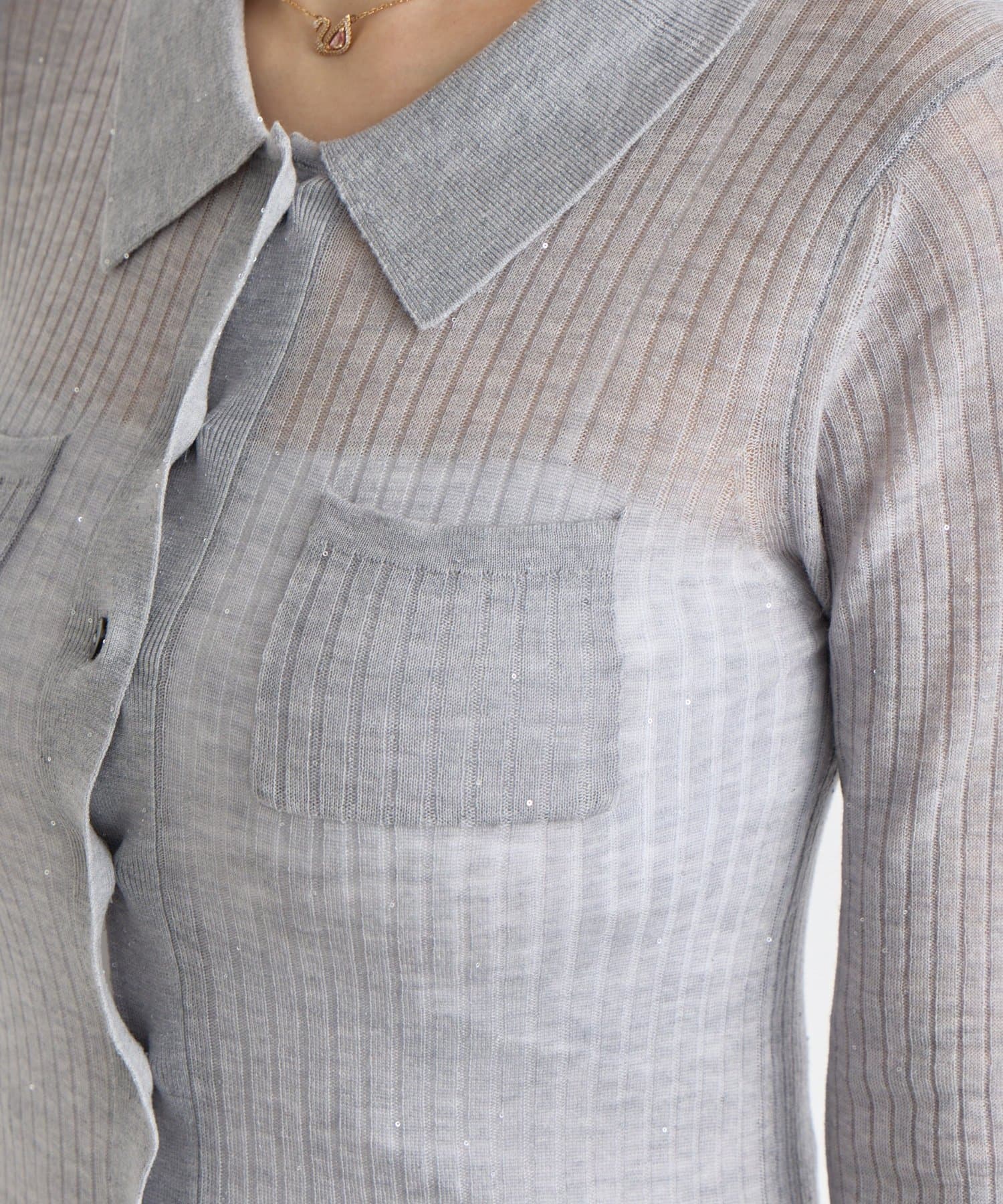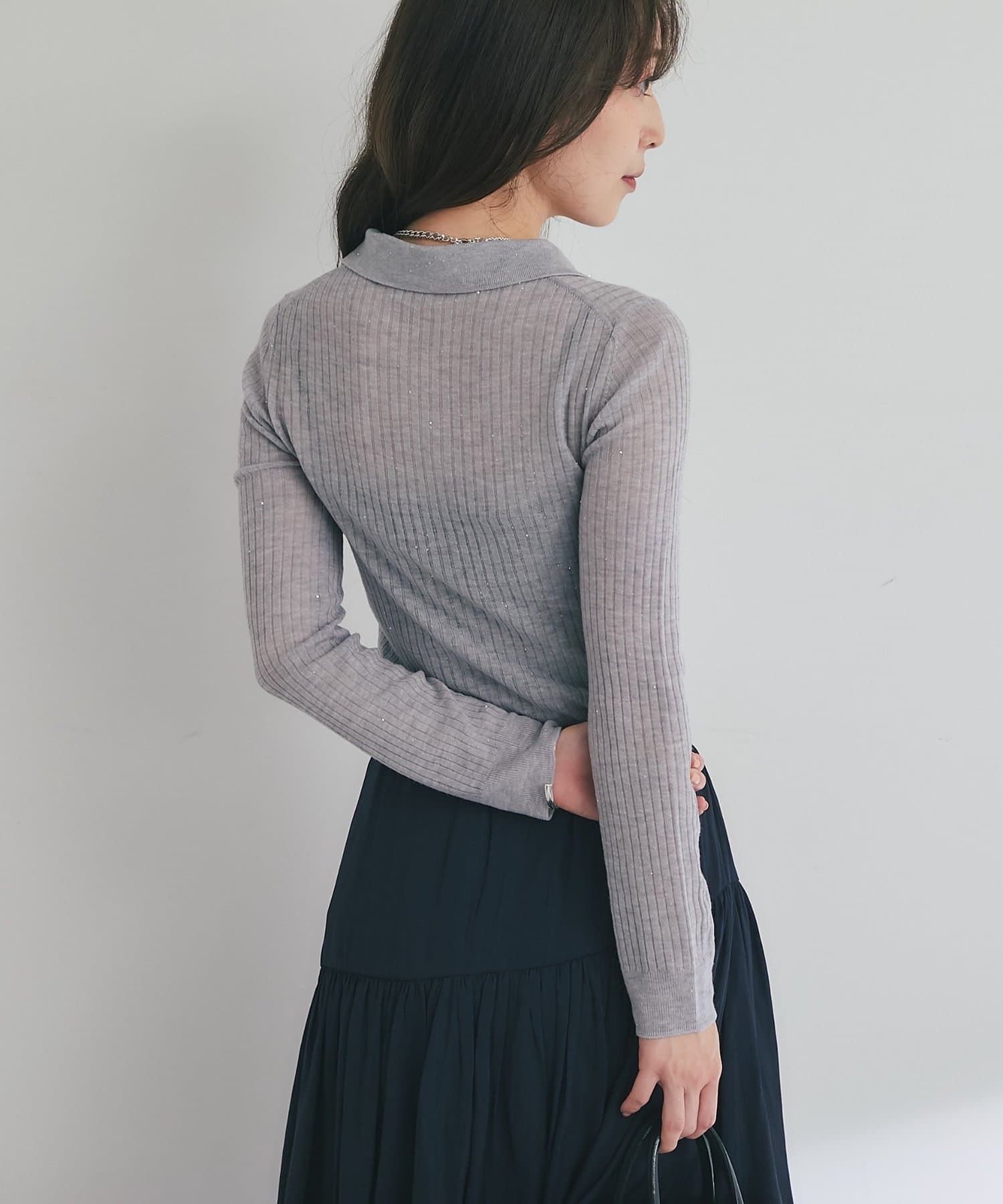 【大人っぽシアーニット】シアースパンコールポロリブニット