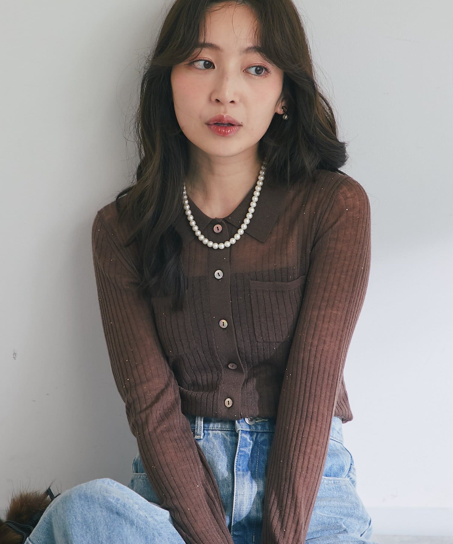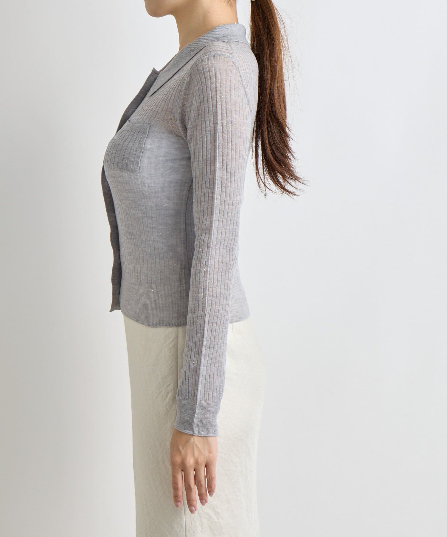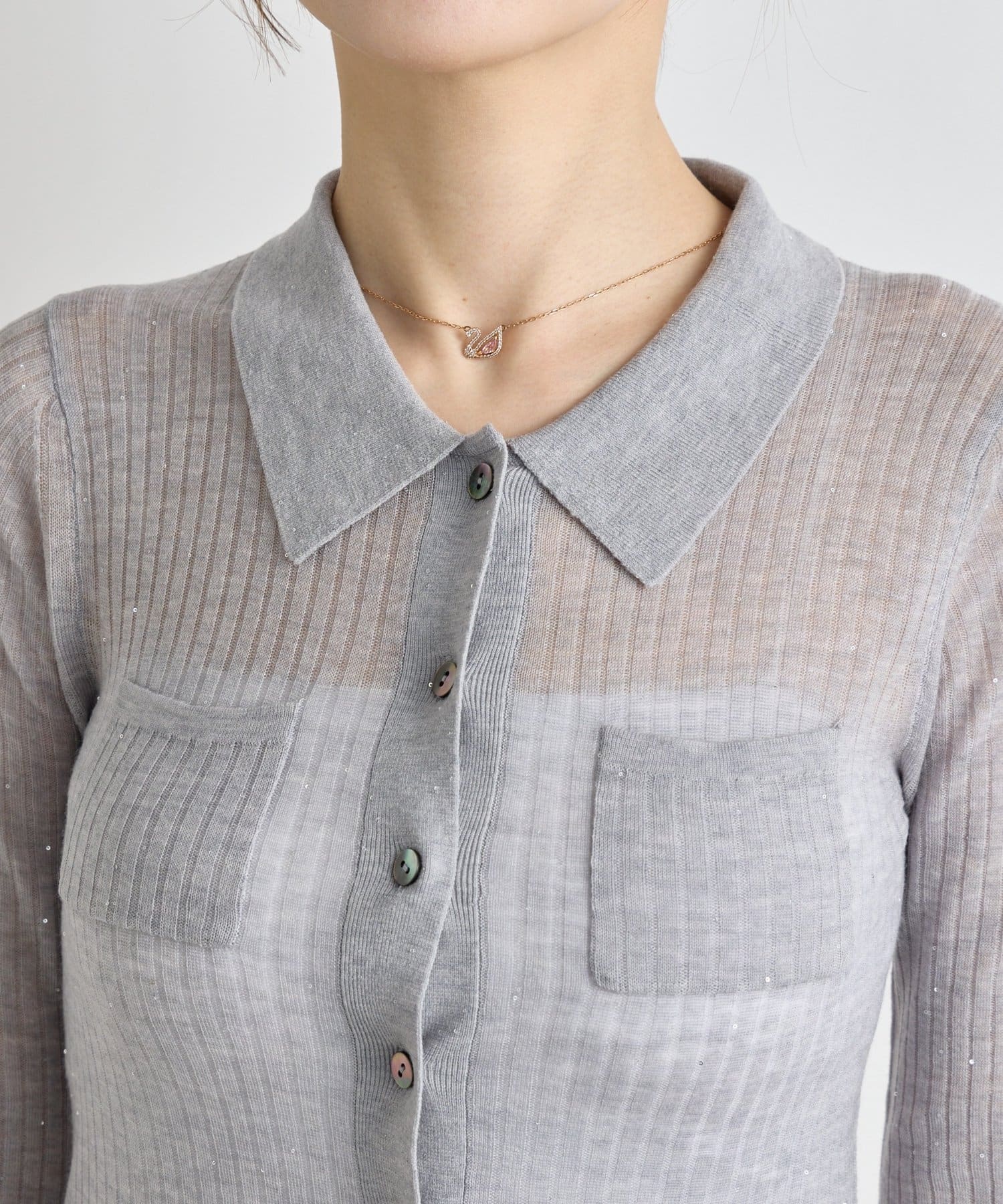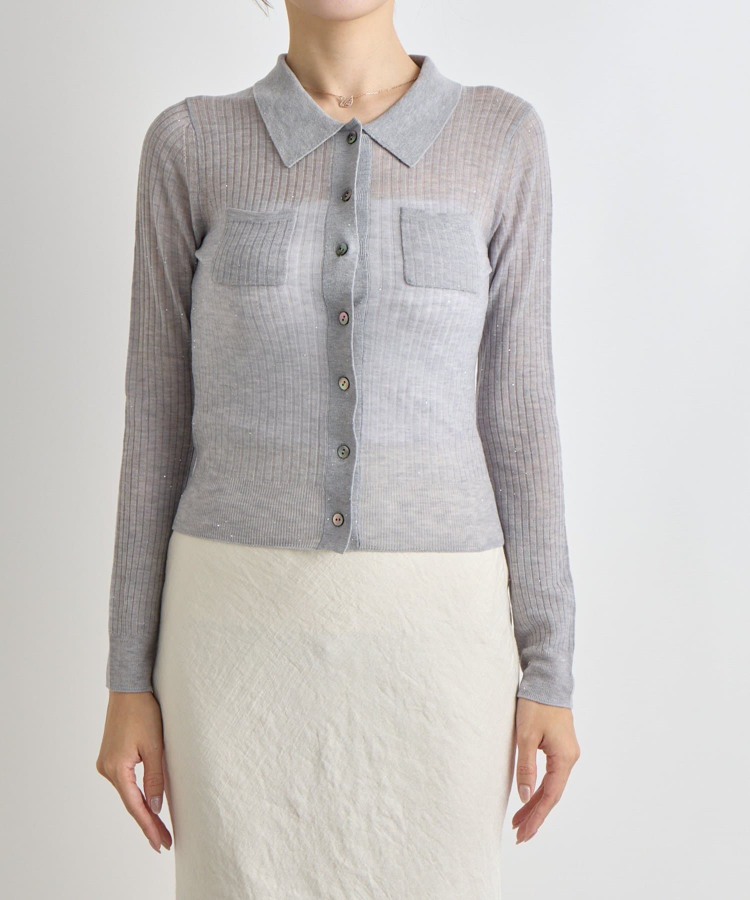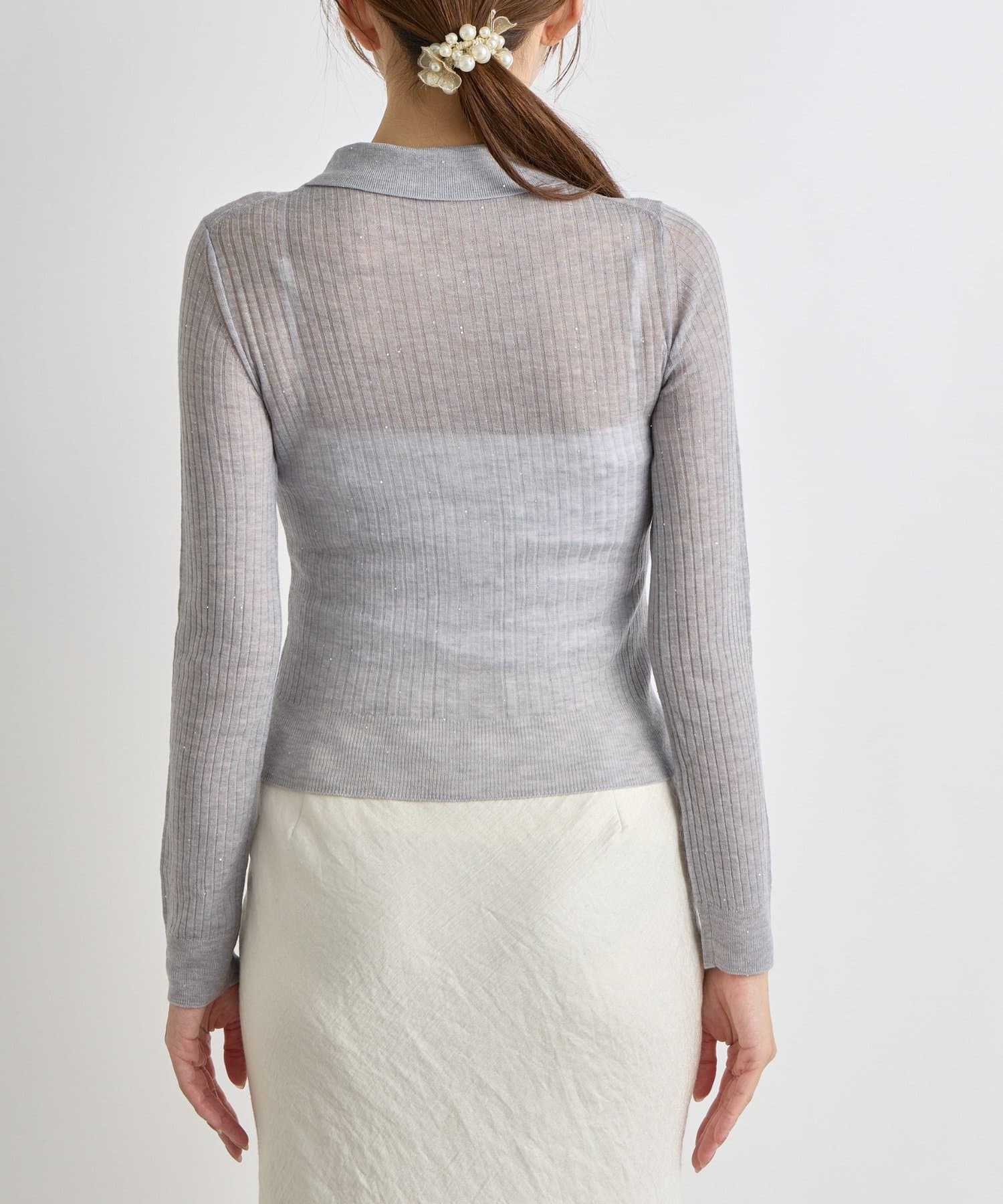 【大人っぽシアーニット】シアースパンコールポロリブニット