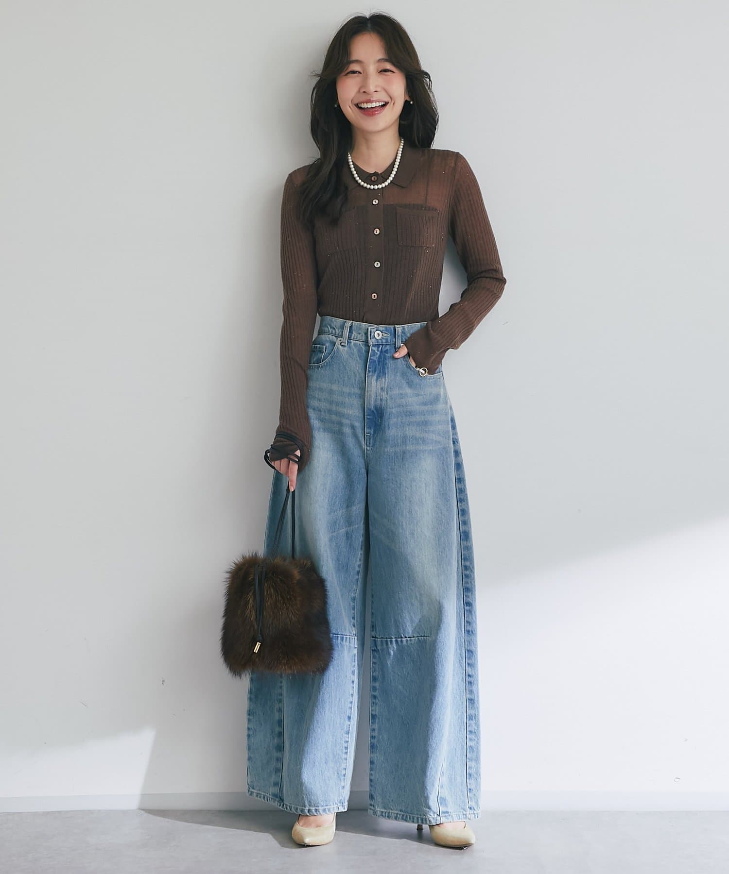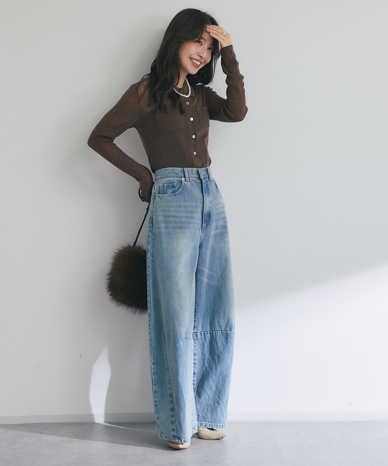 デニムやワイドパンツと合わせた大人カジュアルに。