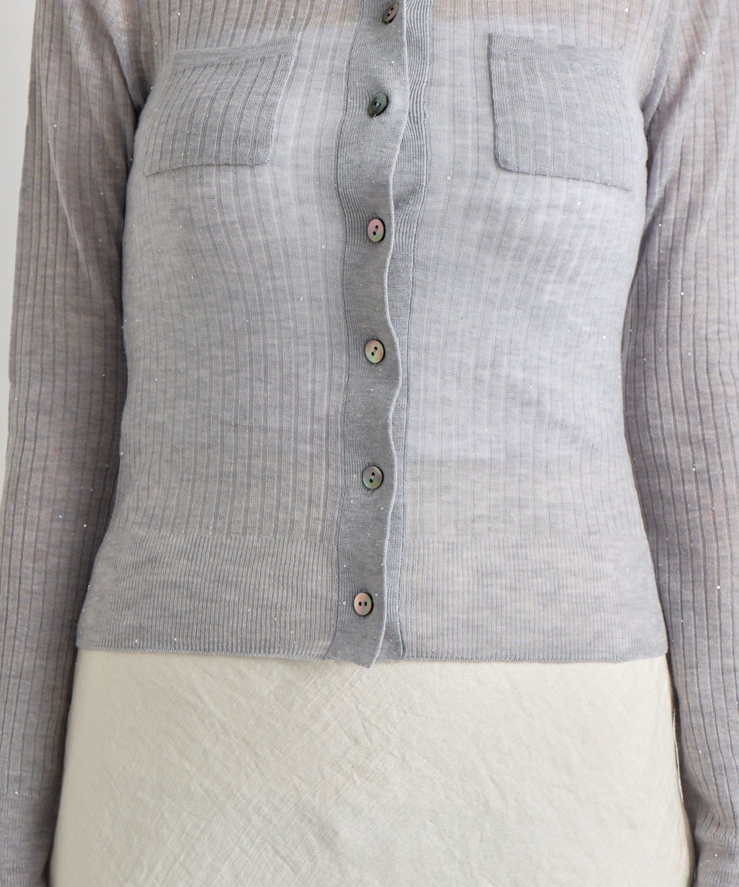 繊細なスパンコールが上品にきらめく、大人の女性のためのリブニットトップス。
