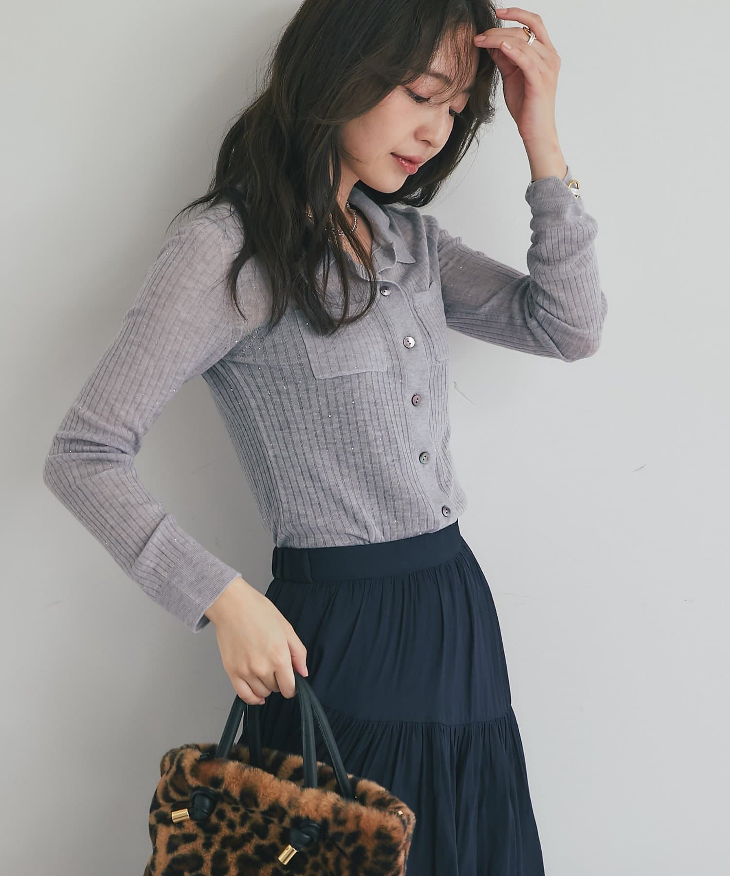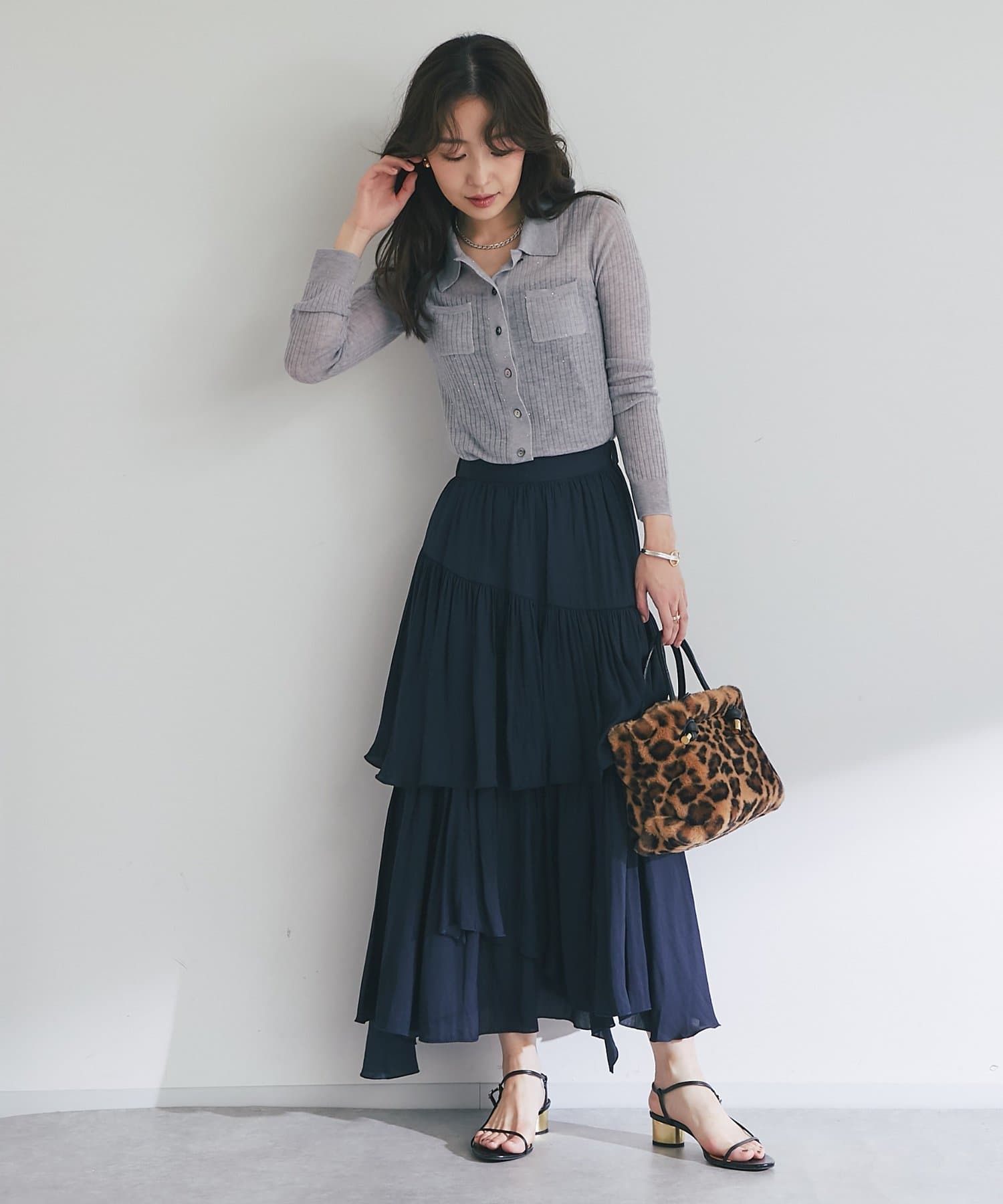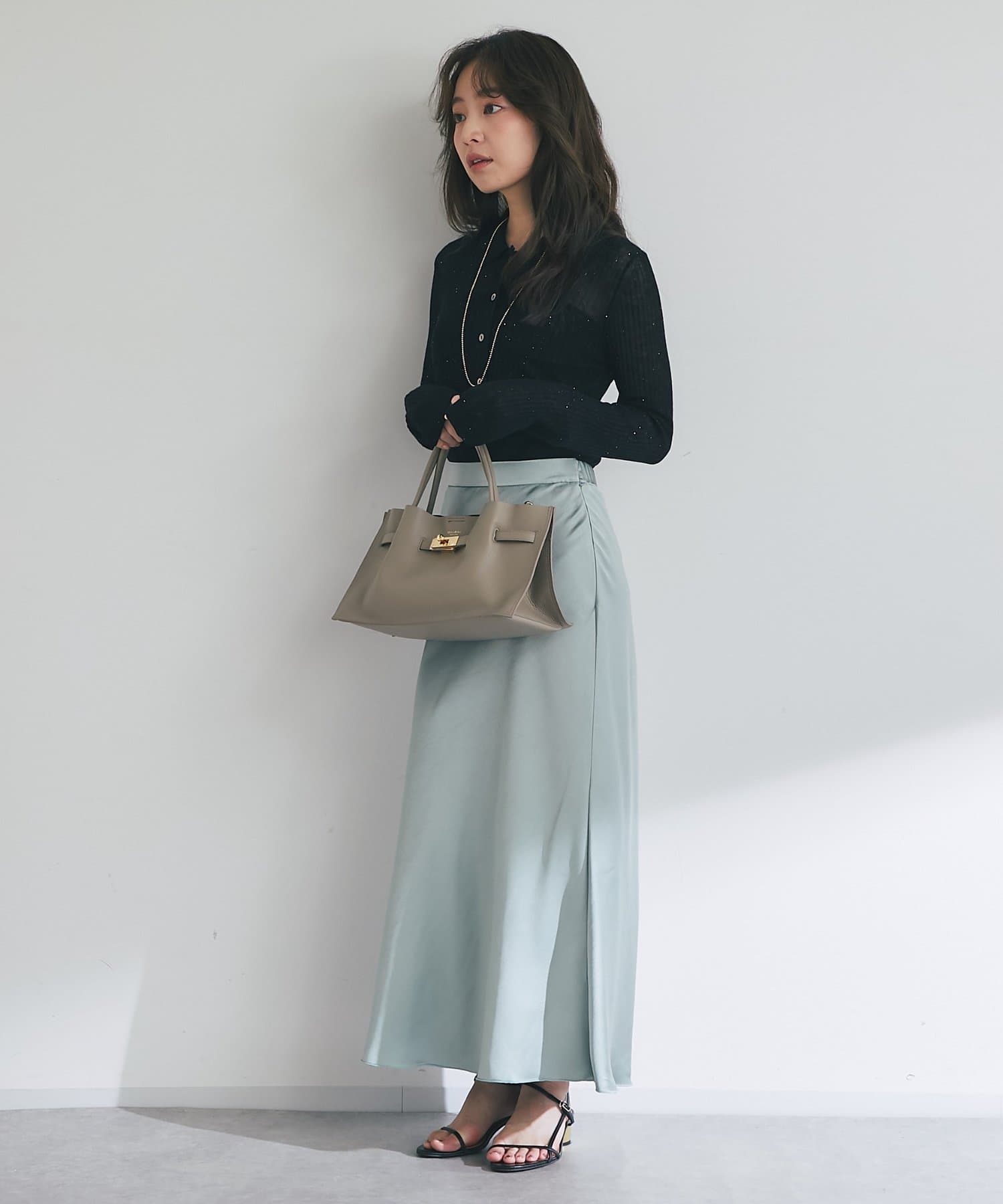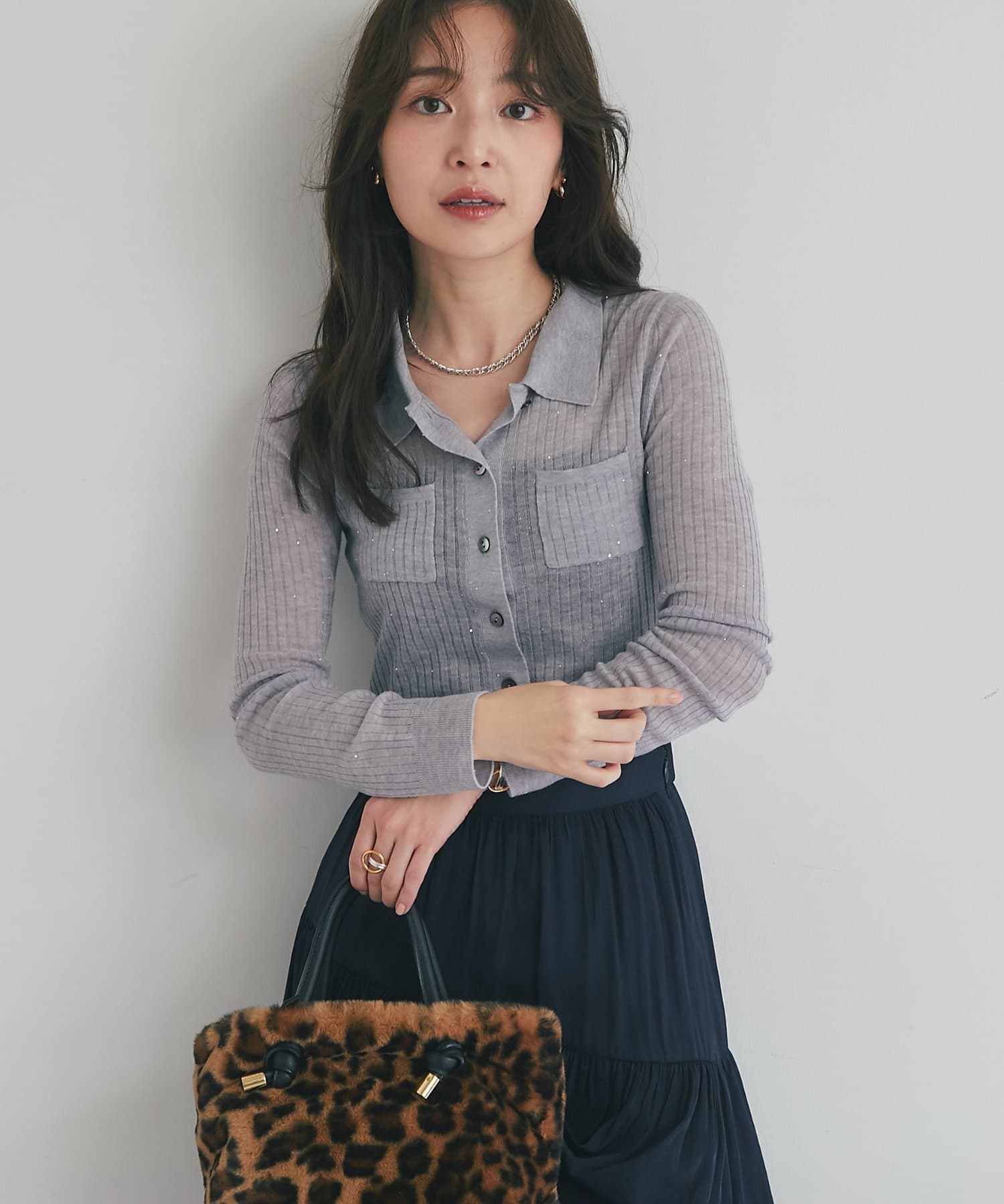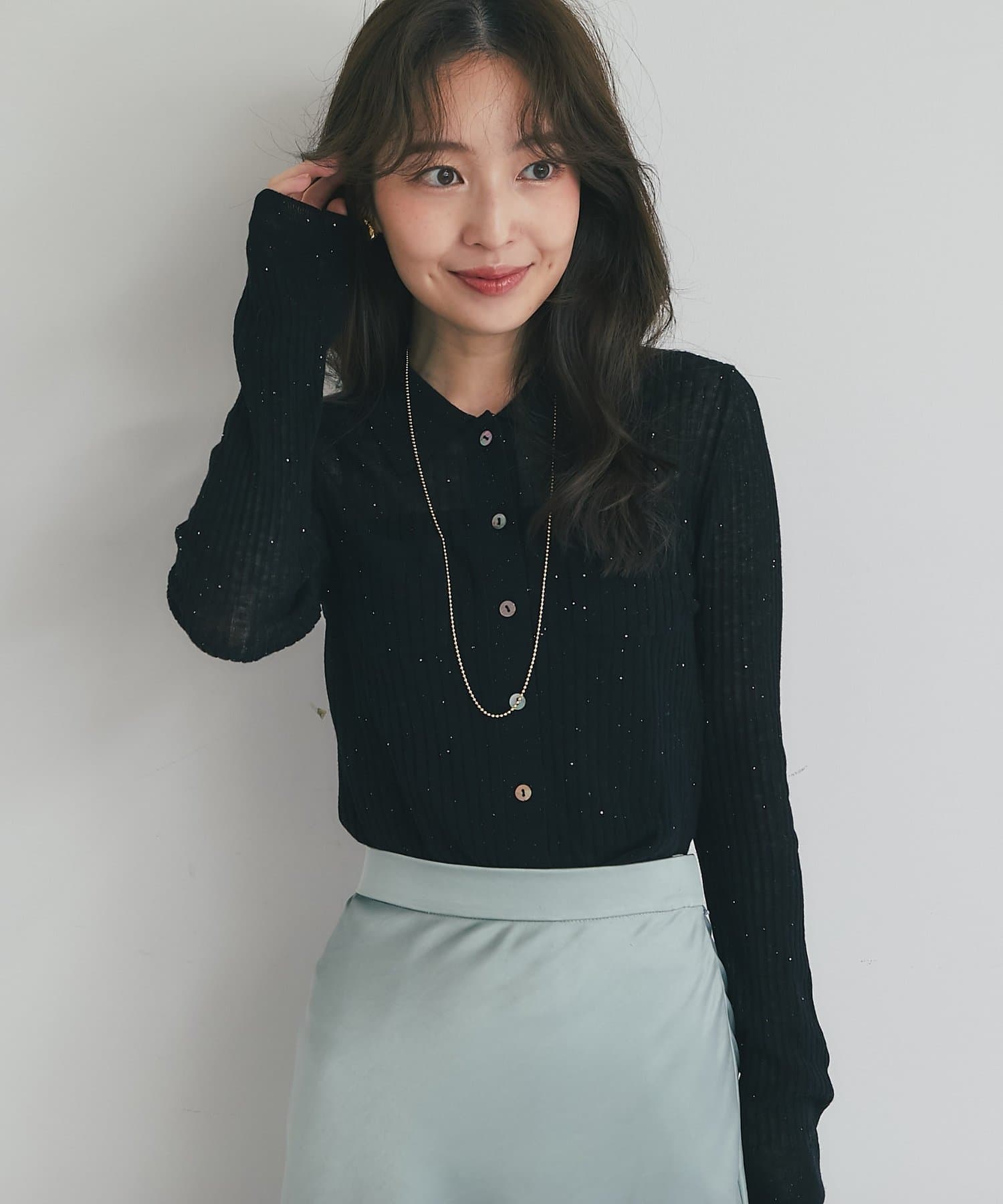 シアーな素材感がほんのりとした抜け感を演出し、トレンド感も漂います。