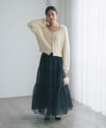 ハイウエストのボリュームスカートを合わせると、バランスよく決まりスタイルアップも◎