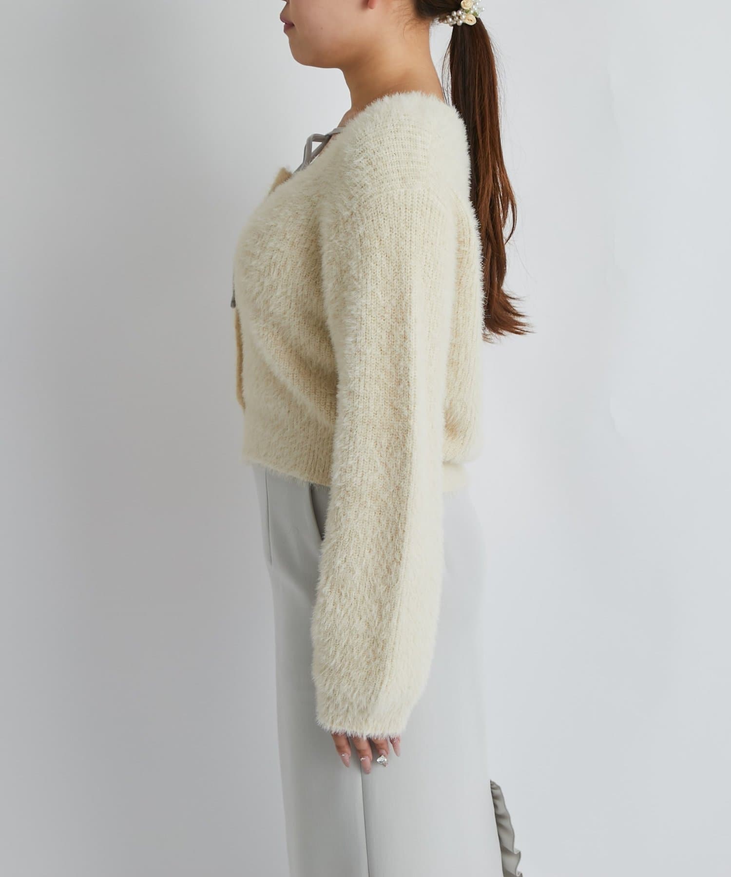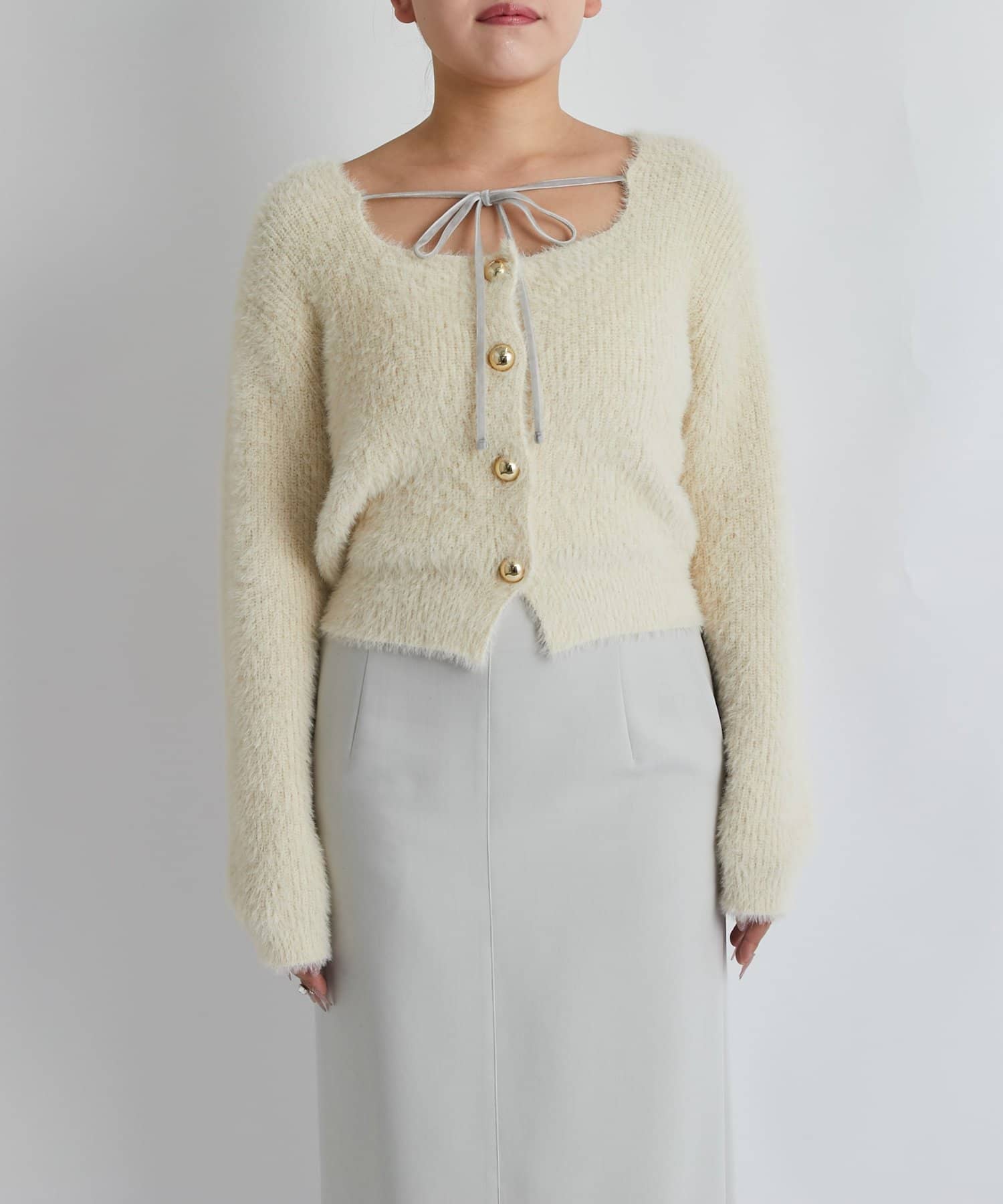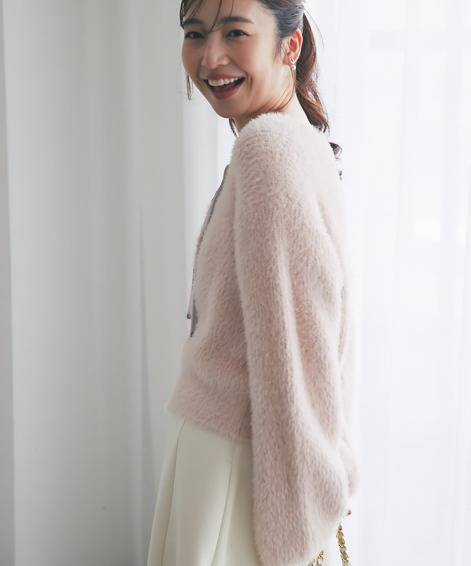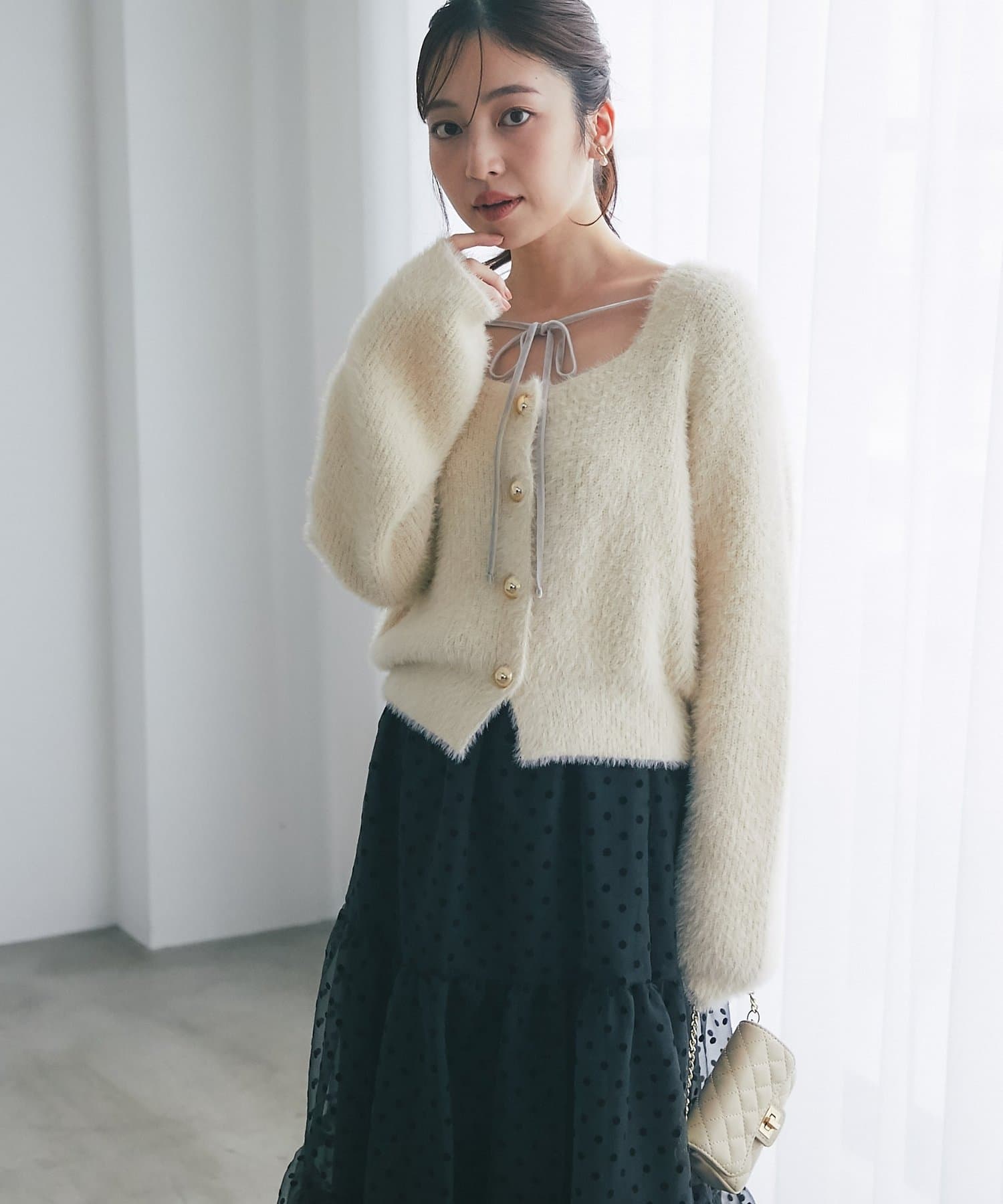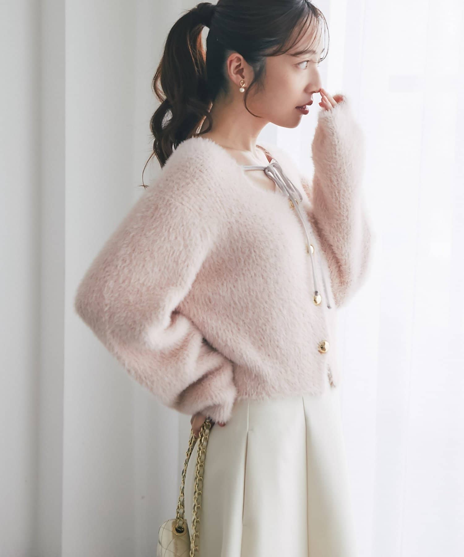 【最強モテニット】フェザーヤーン片畦リボンカーディガン