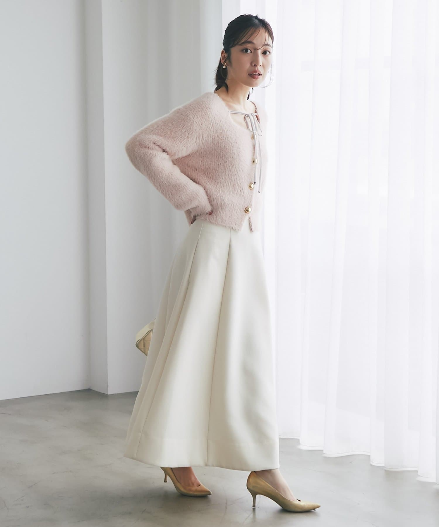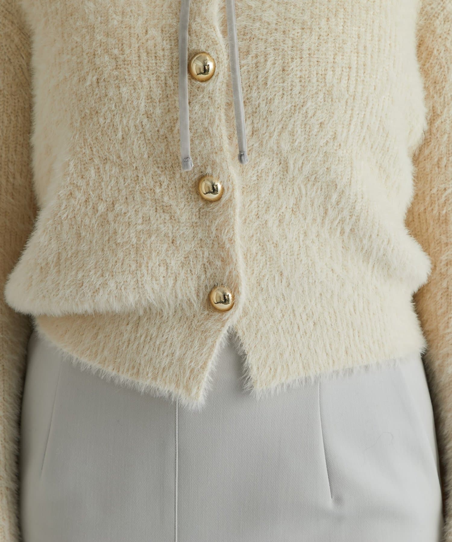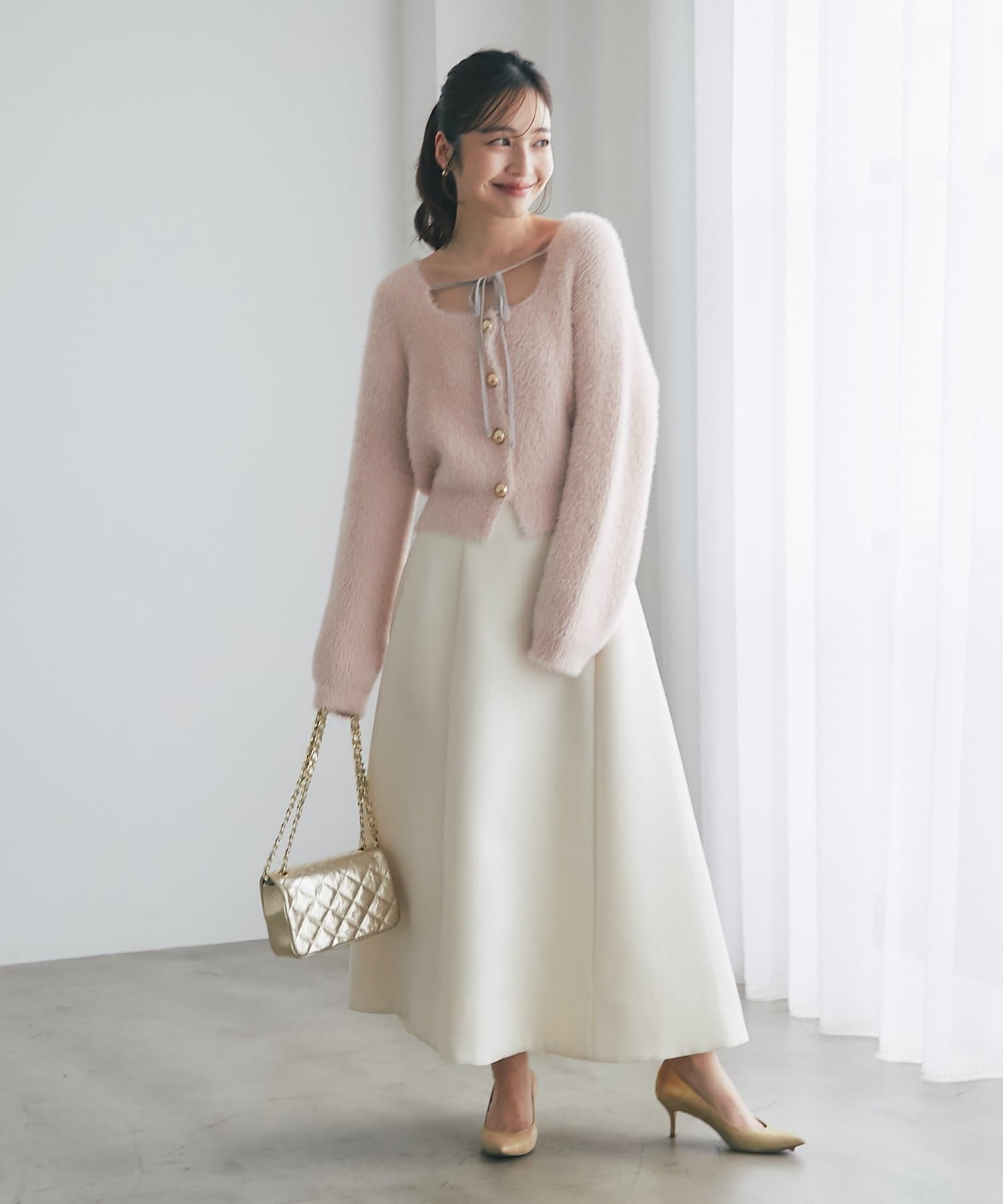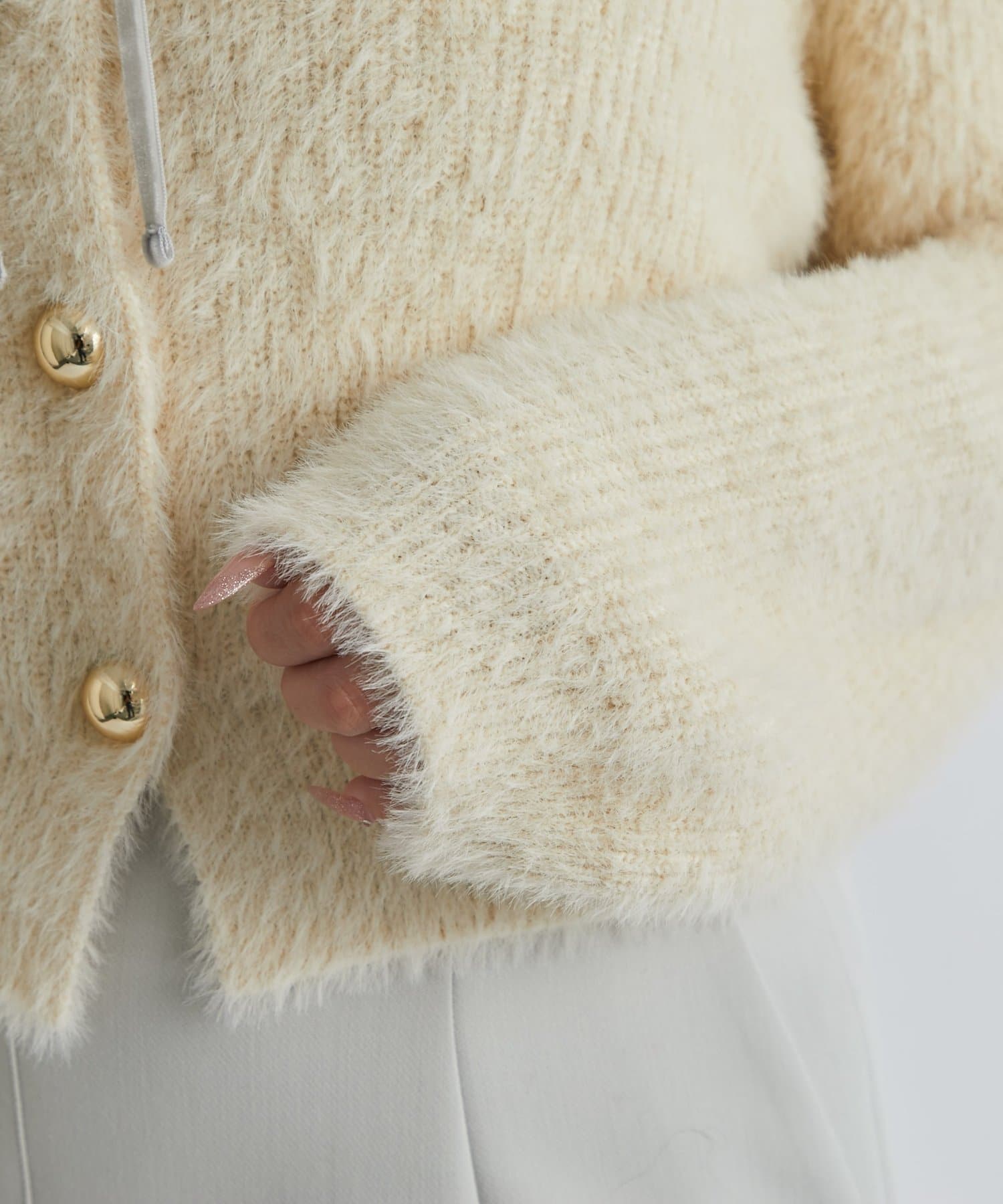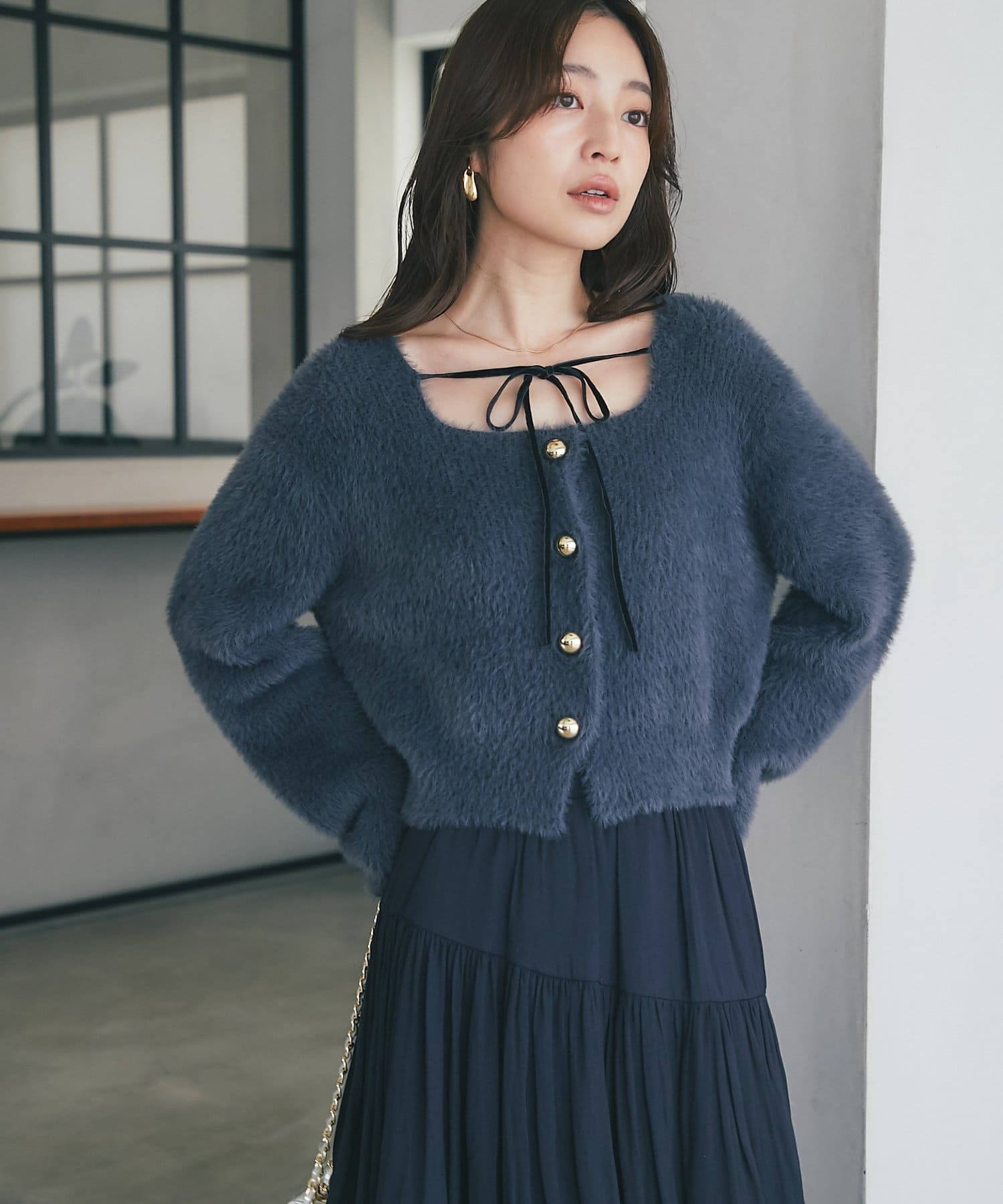 【最強モテニット】フェザーヤーン片畦リボンカーディガン