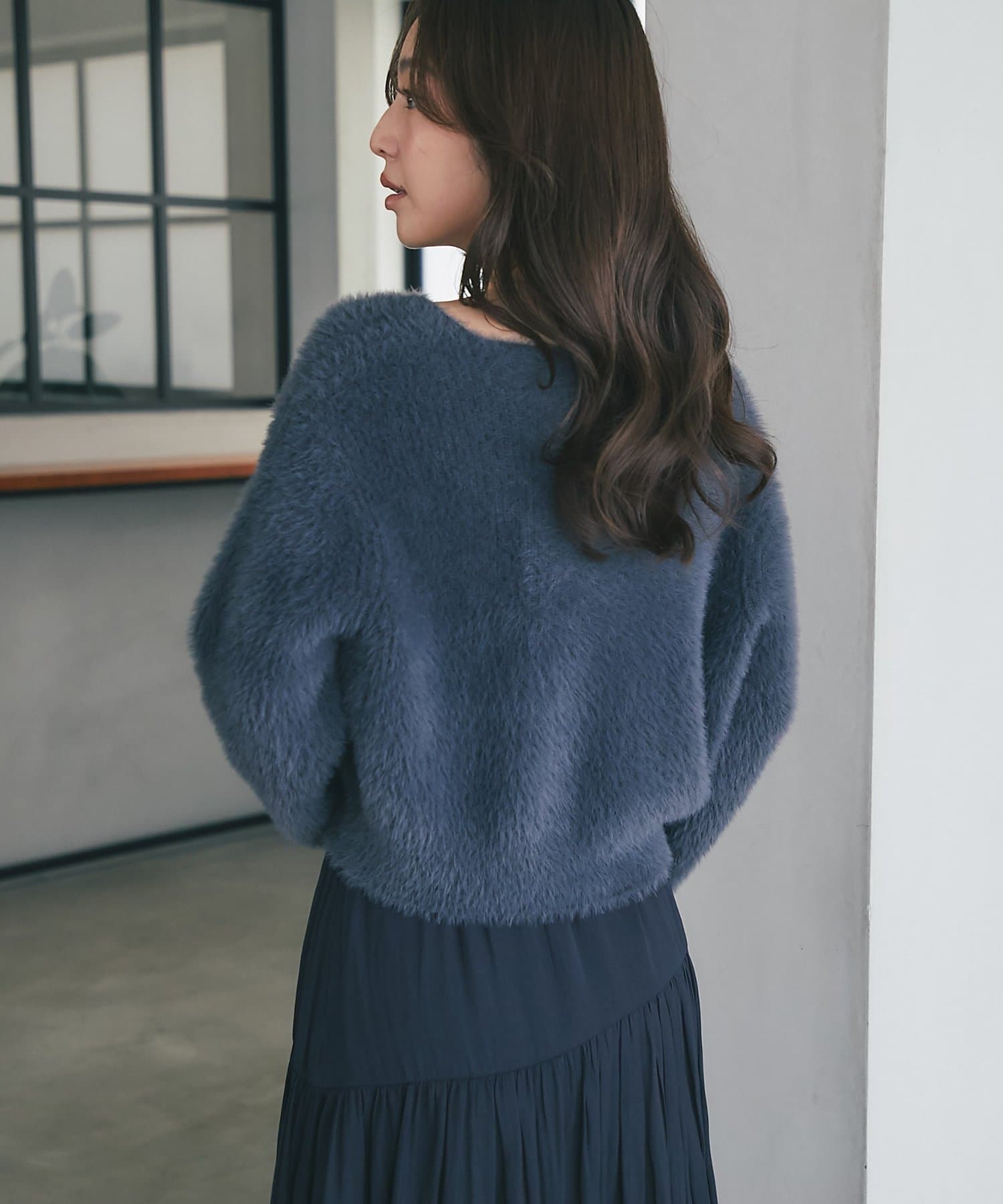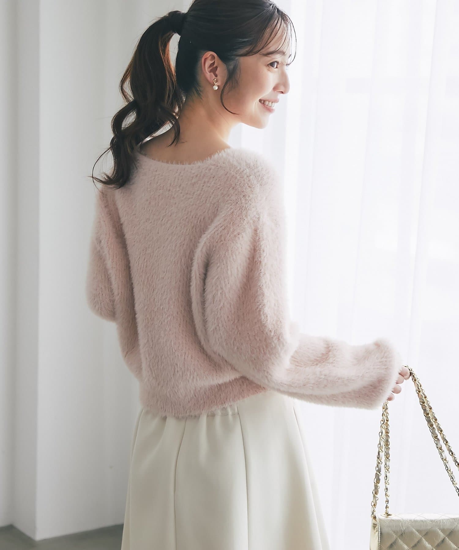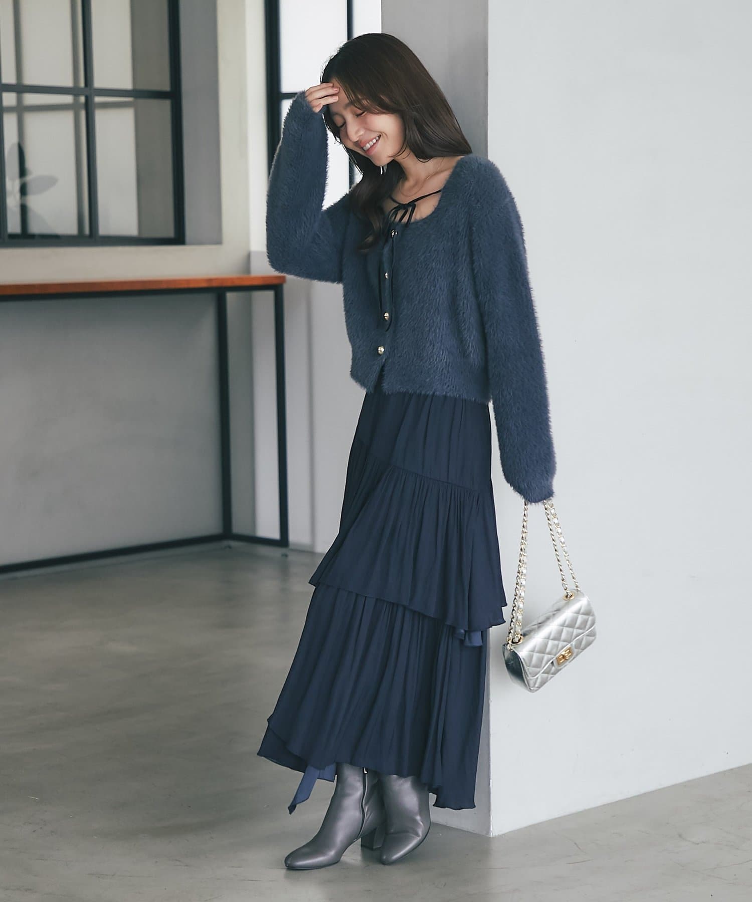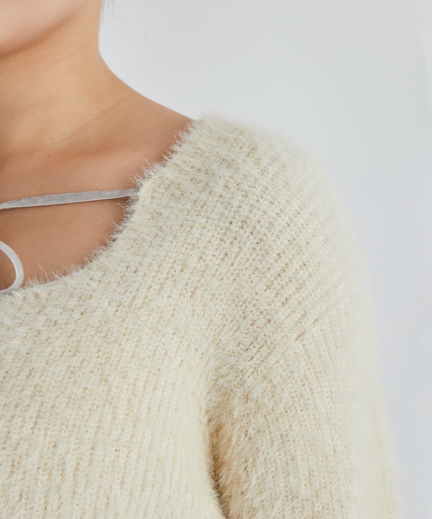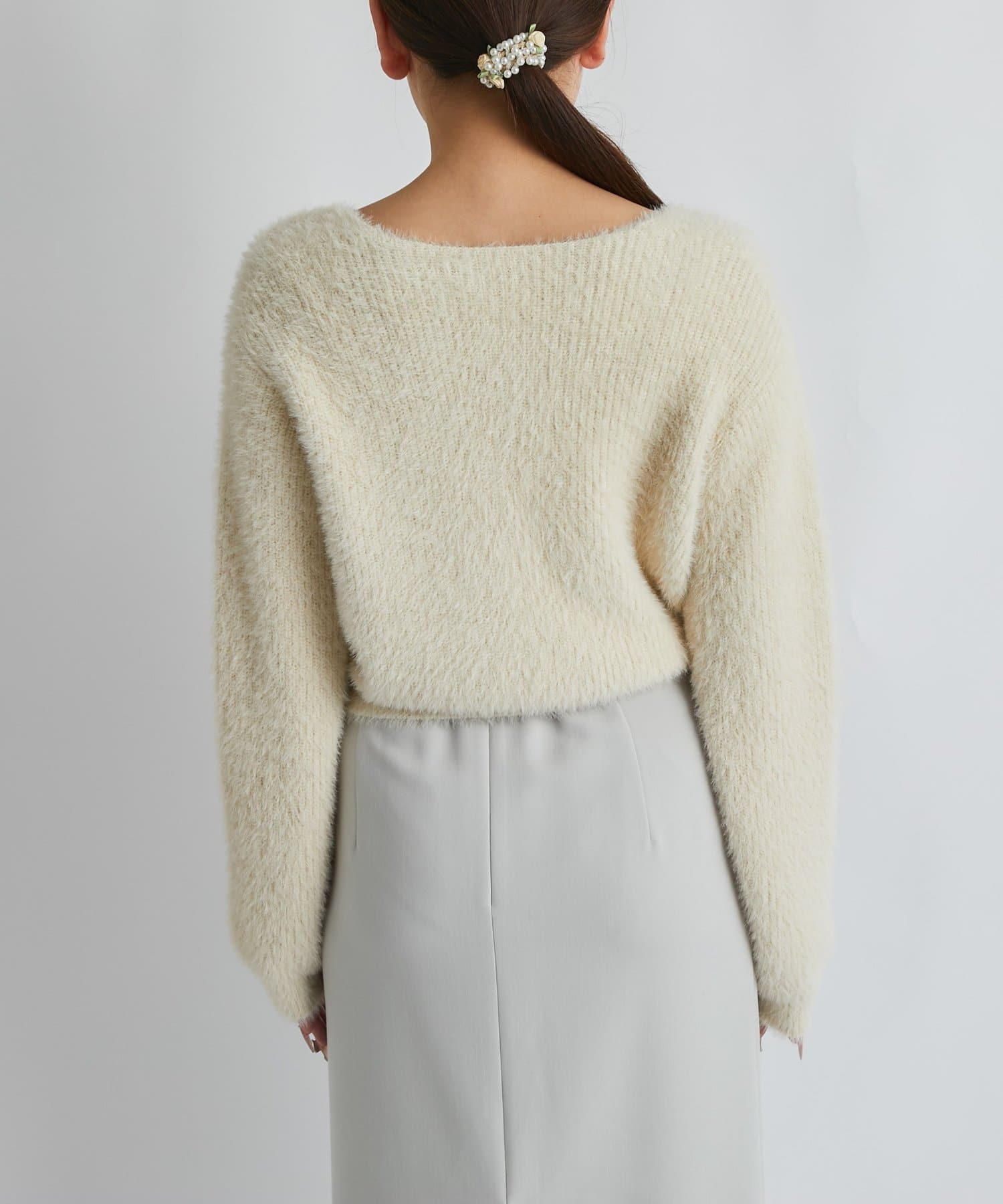 【最強モテニット】フェザーヤーン片畦リボンカーディガン