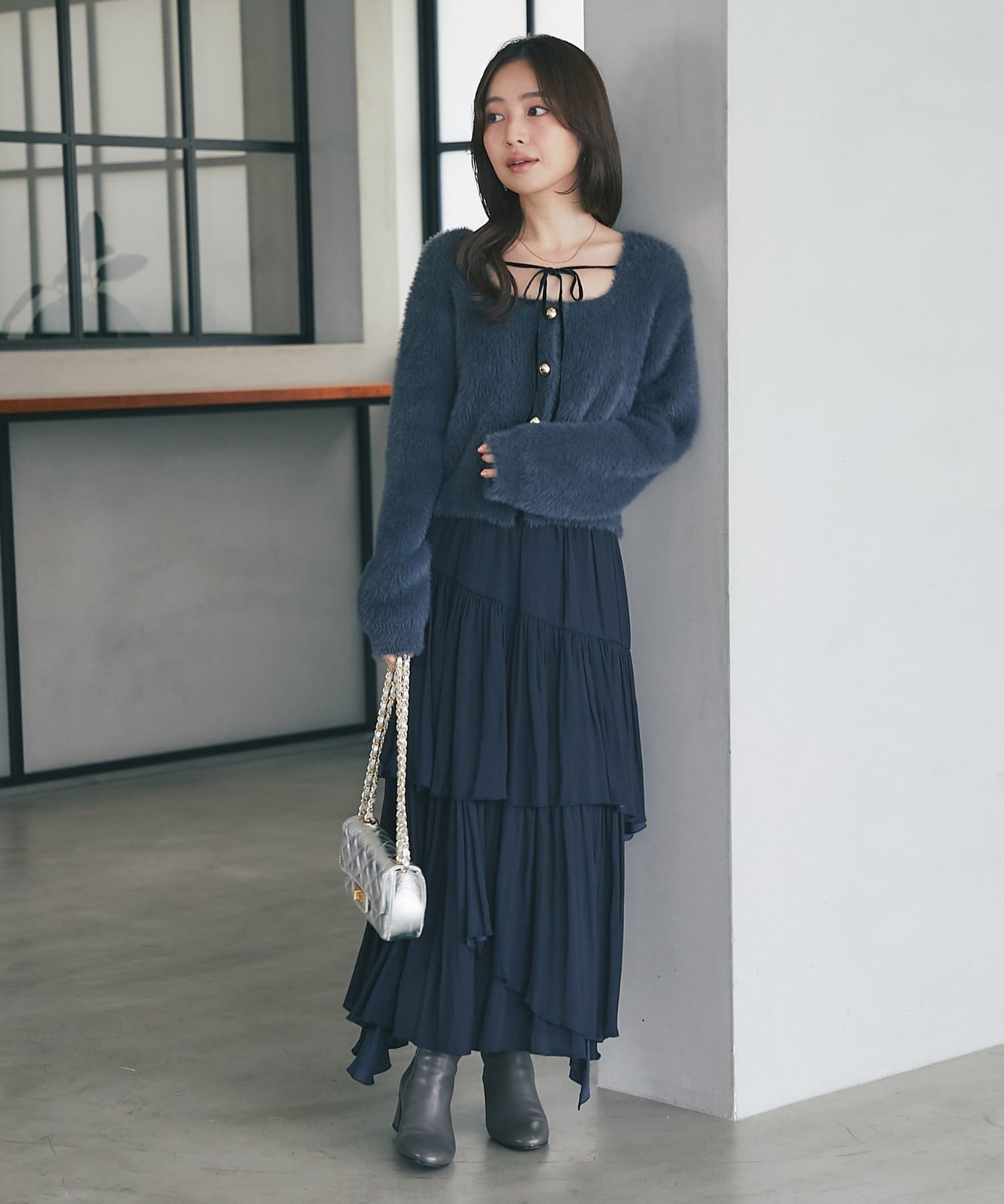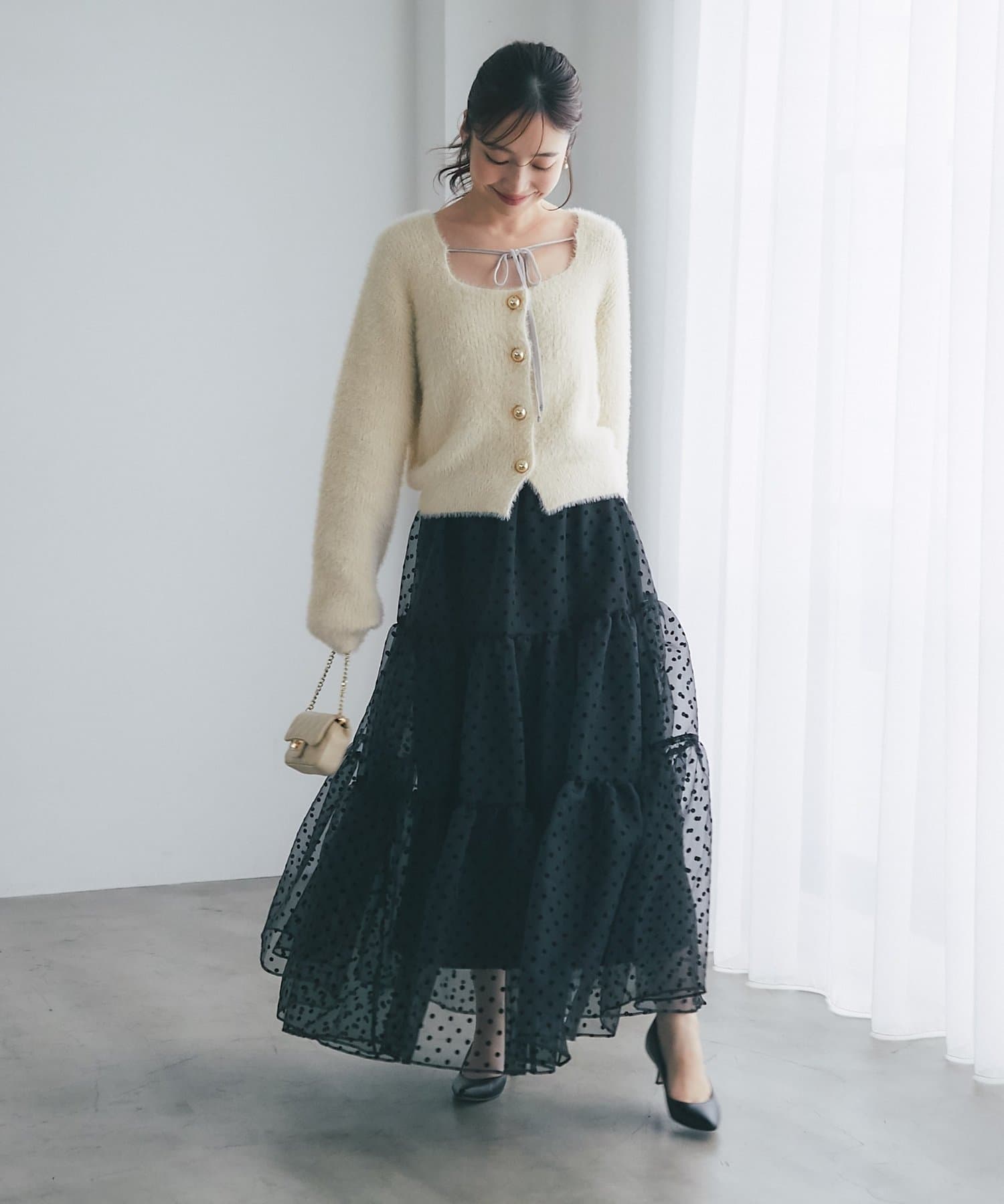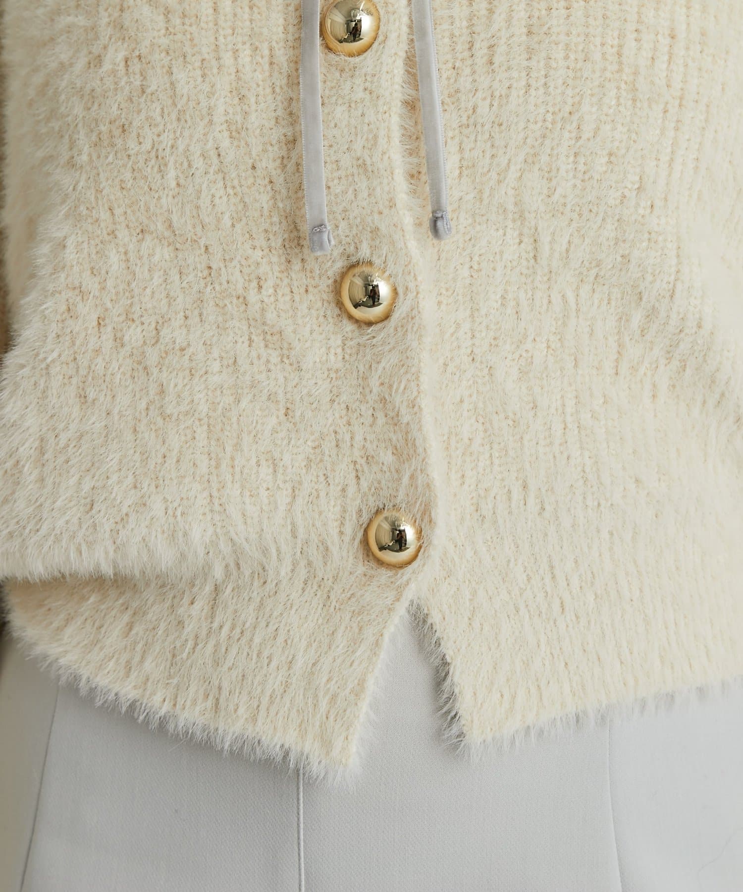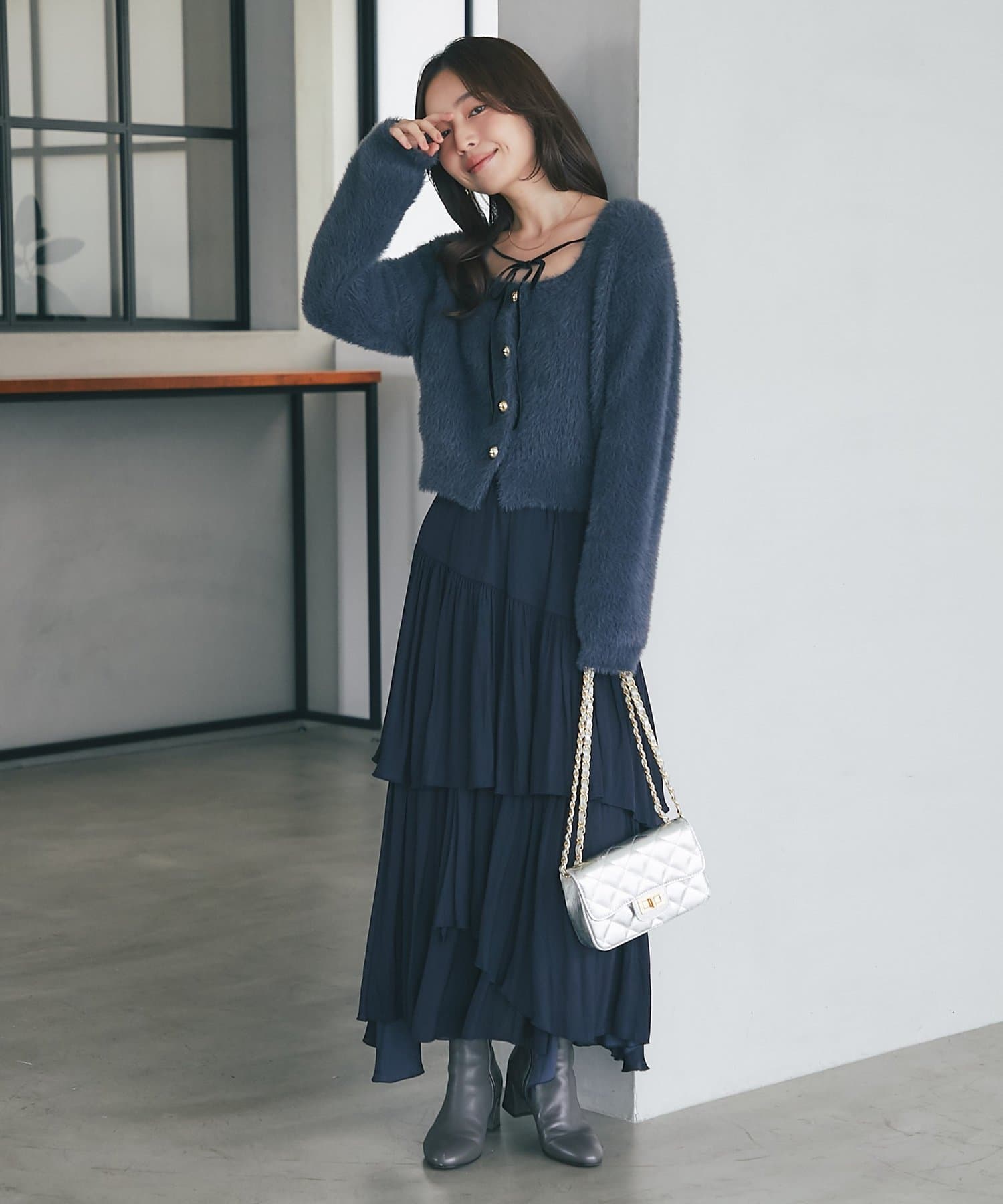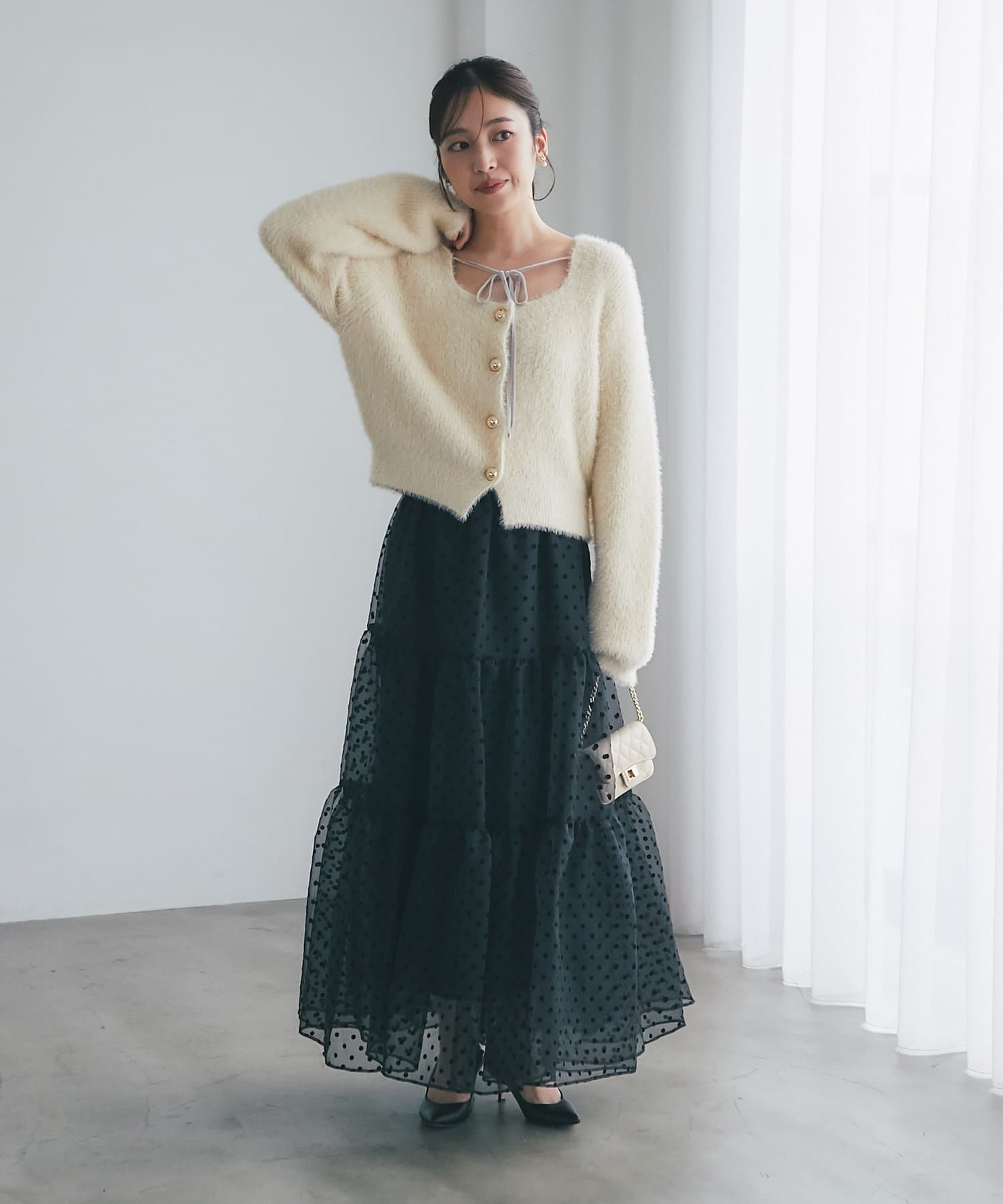【最強モテニット】フェザーヤーン片畦リボンカーディガン