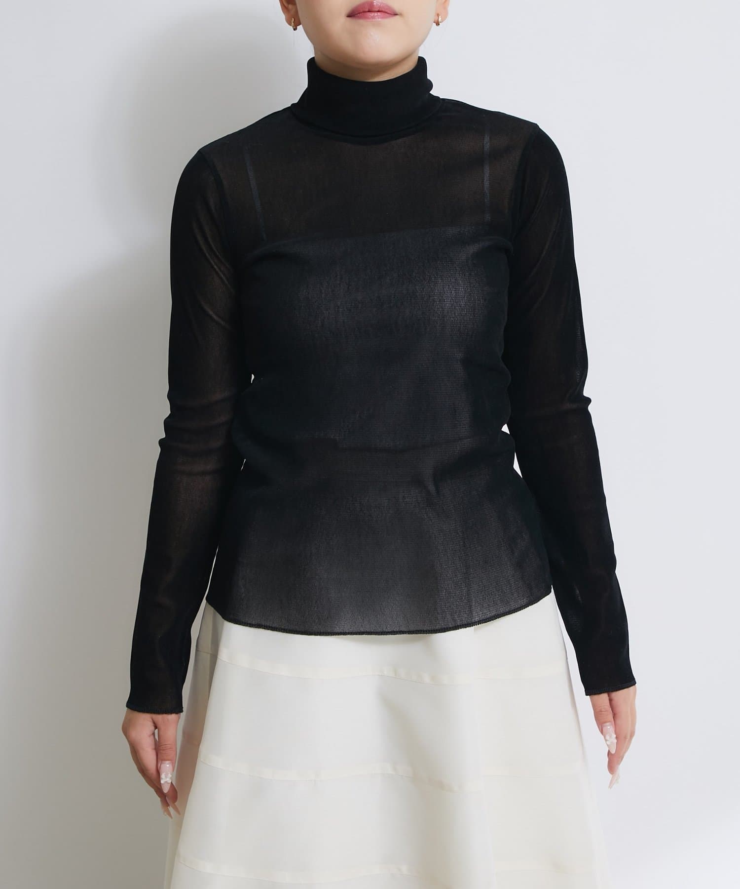 程よい光沢が大人の印象を作るタートルネックカットソー