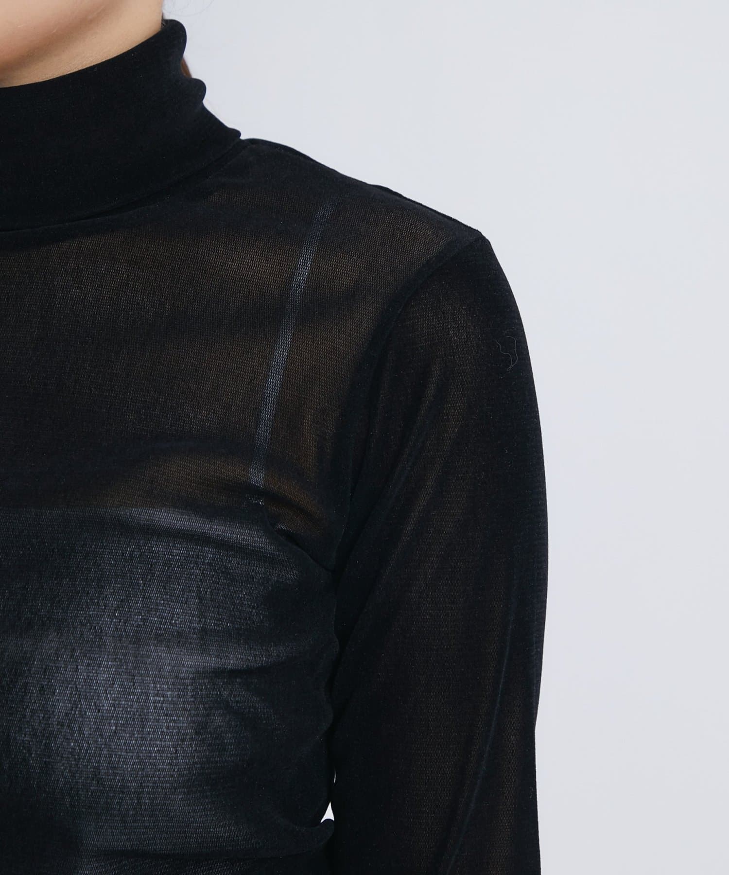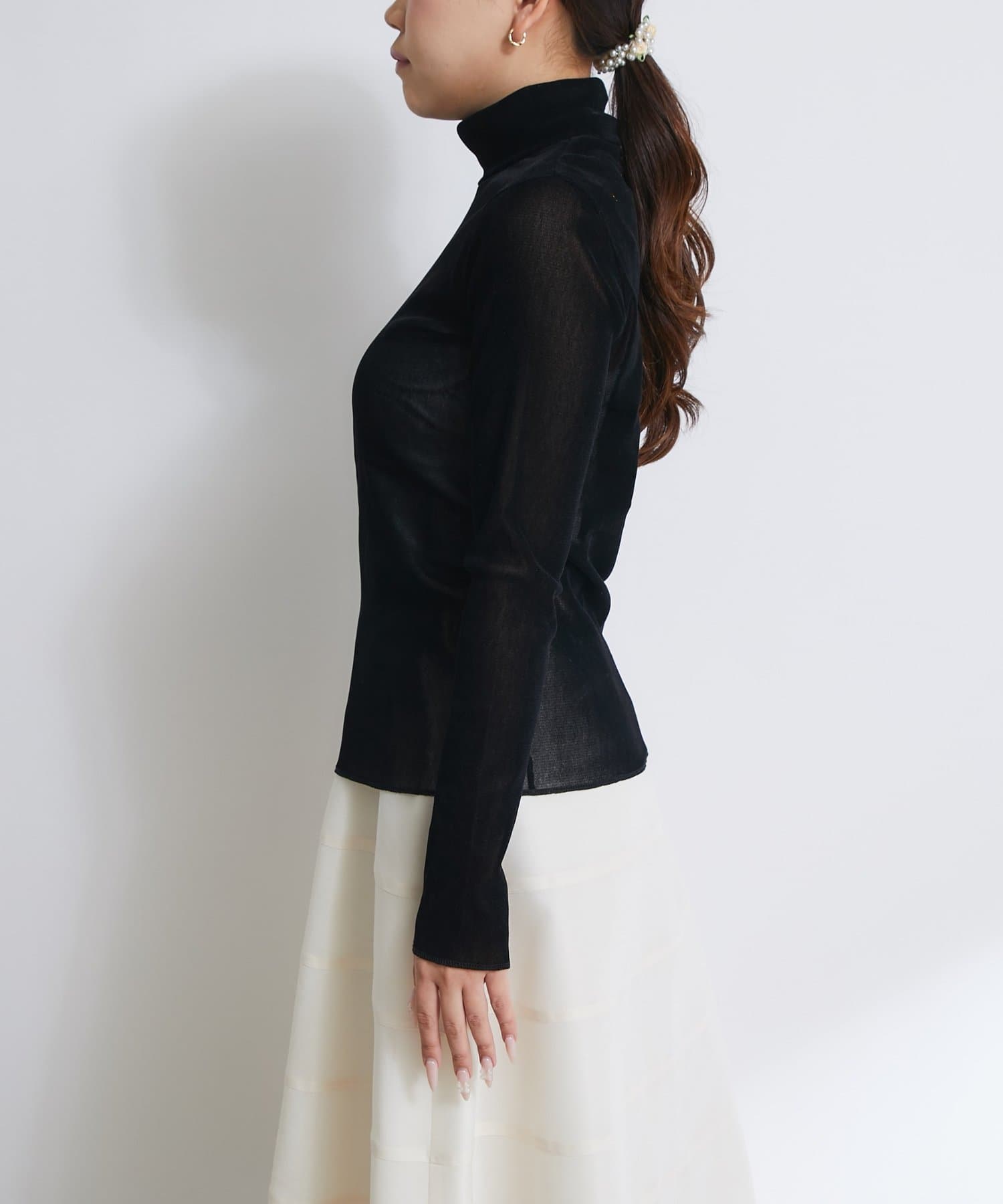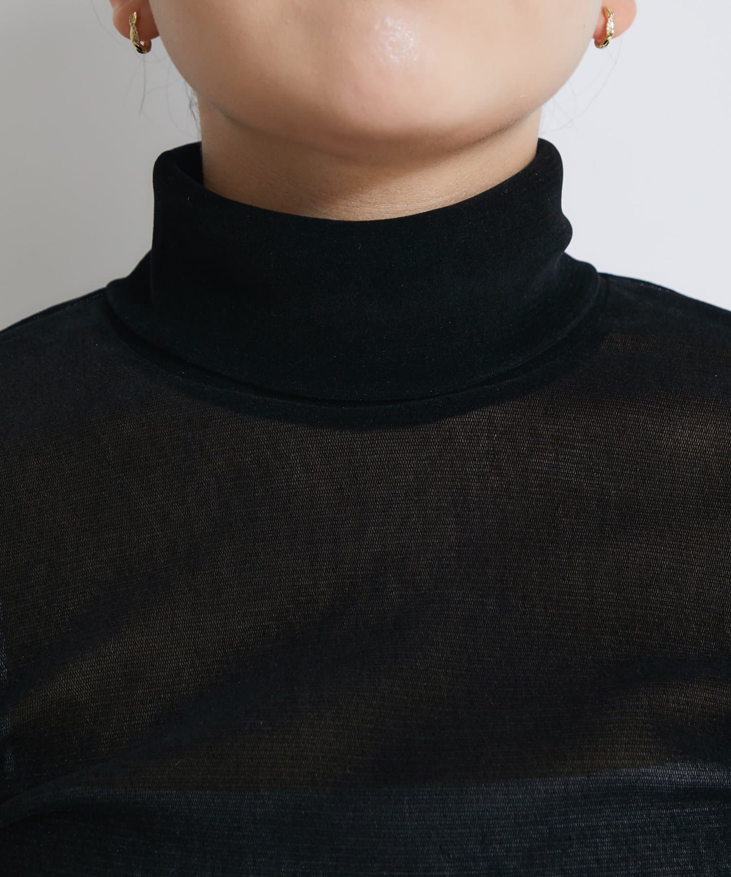 【着回し力・女っぽタートル】フロッキーチュールタートルカットソー