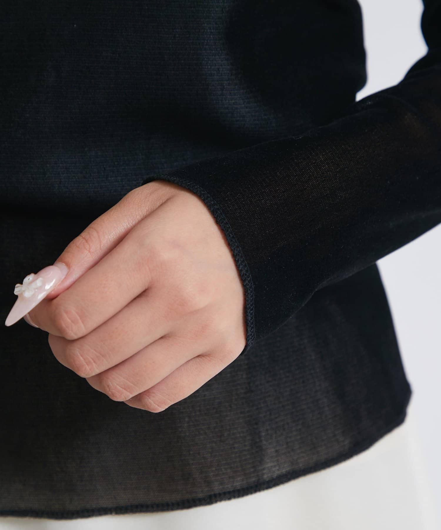 1枚着でもレイヤードアイテムとしても様になるベルベットのような表面感のプルオーバー。