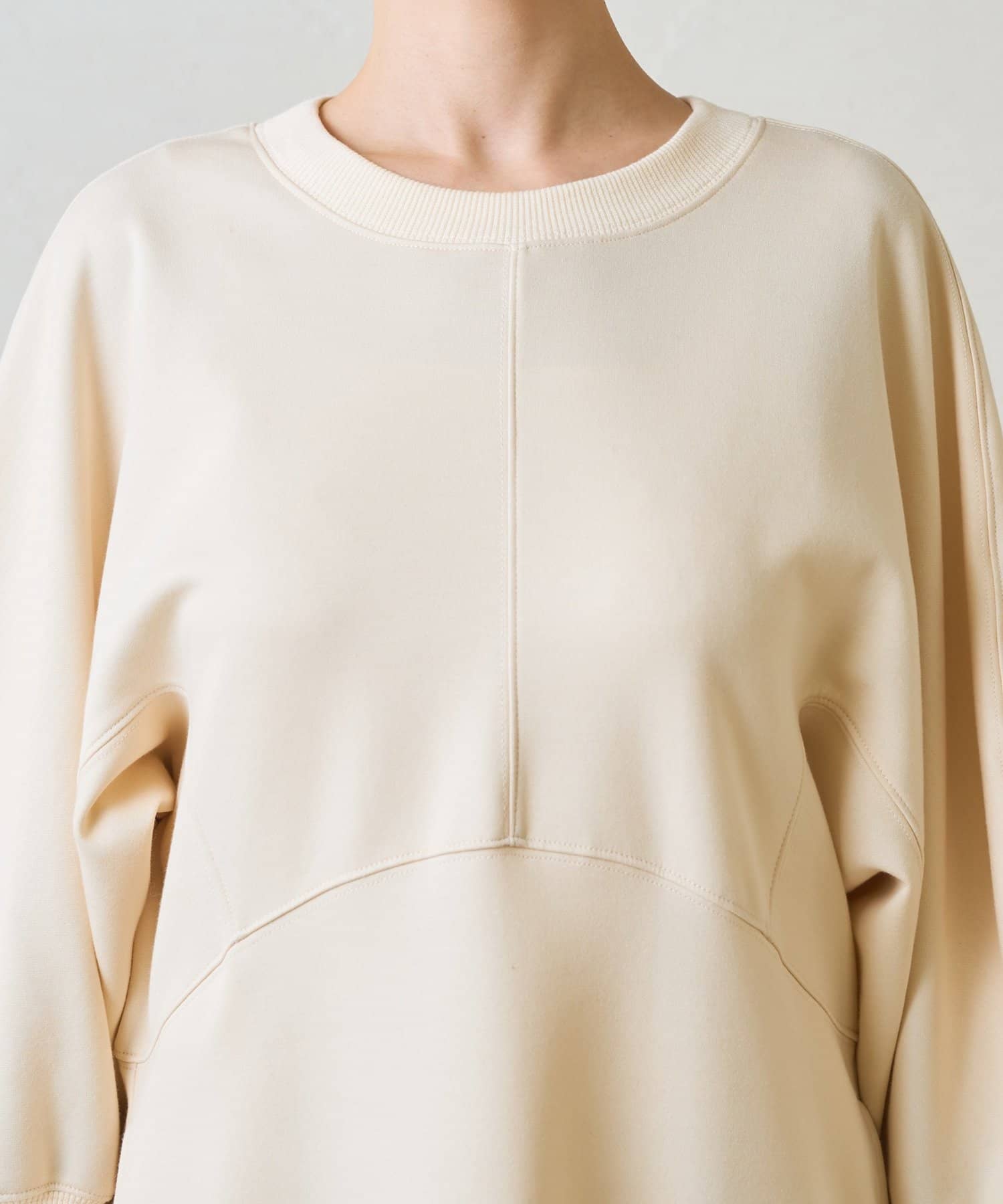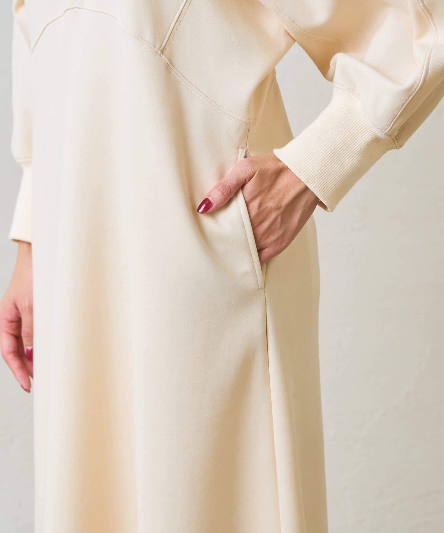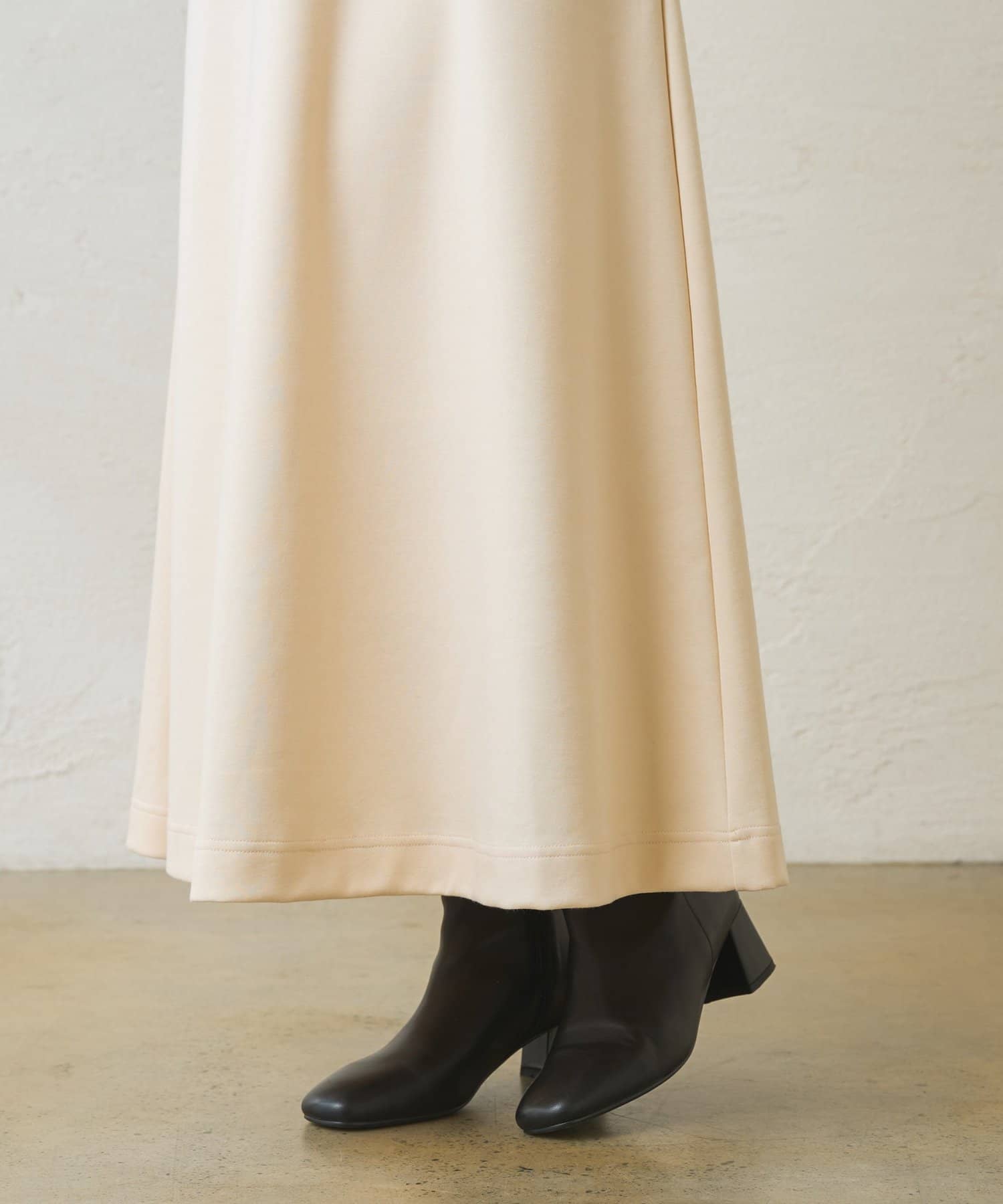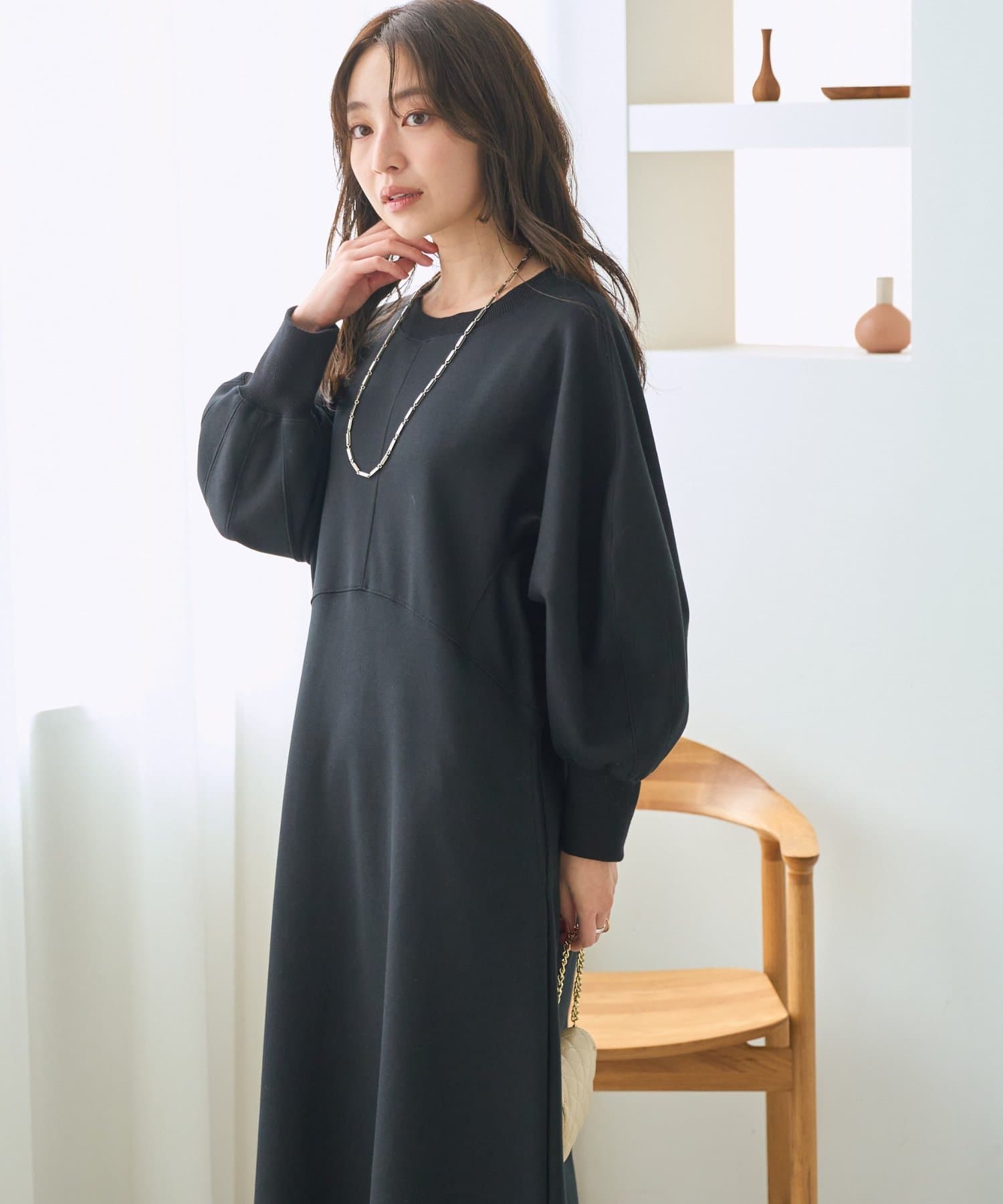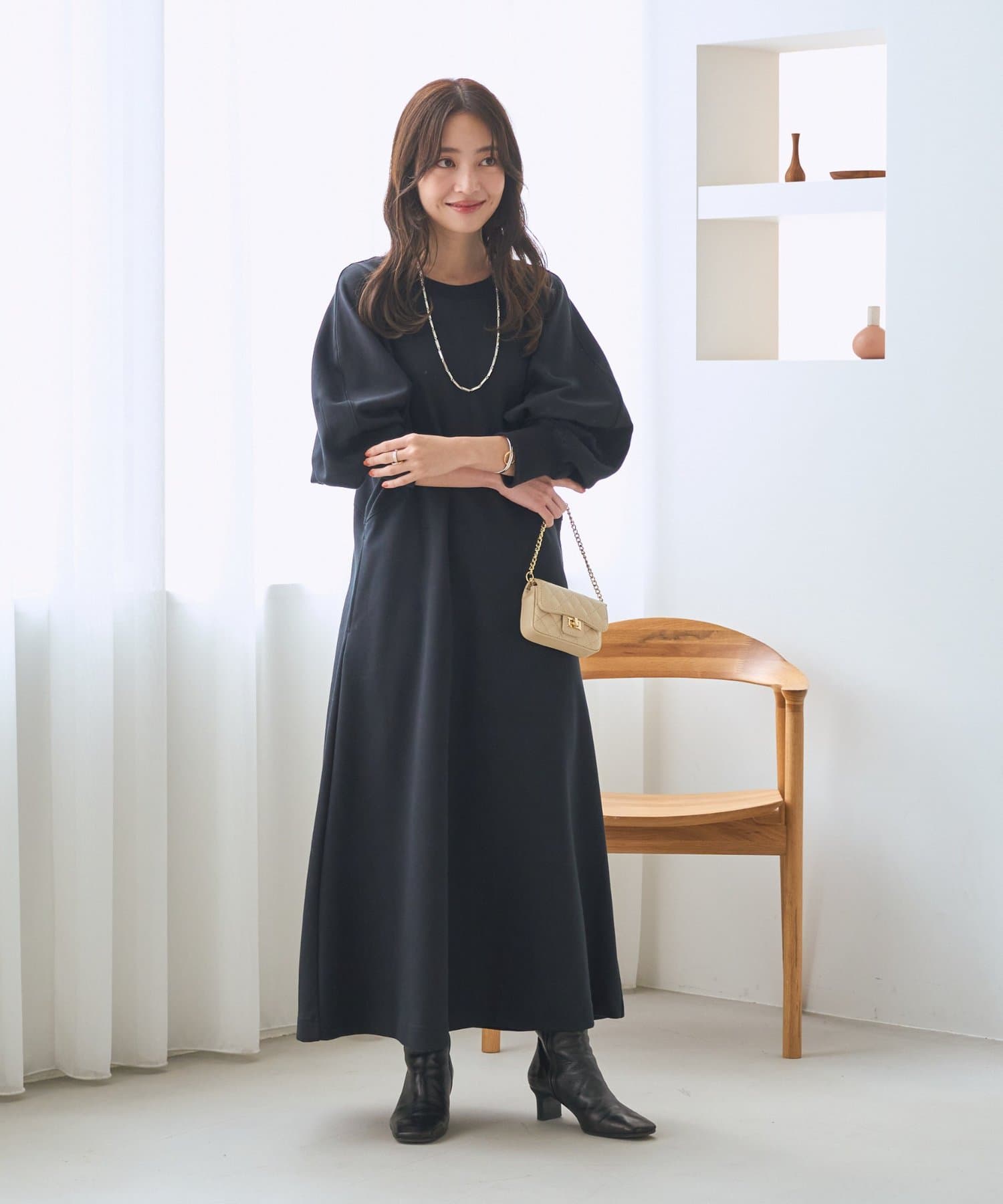 ウエストの切り替えが自然にメリハリをつくり、今っぽいシルエットを演出します。