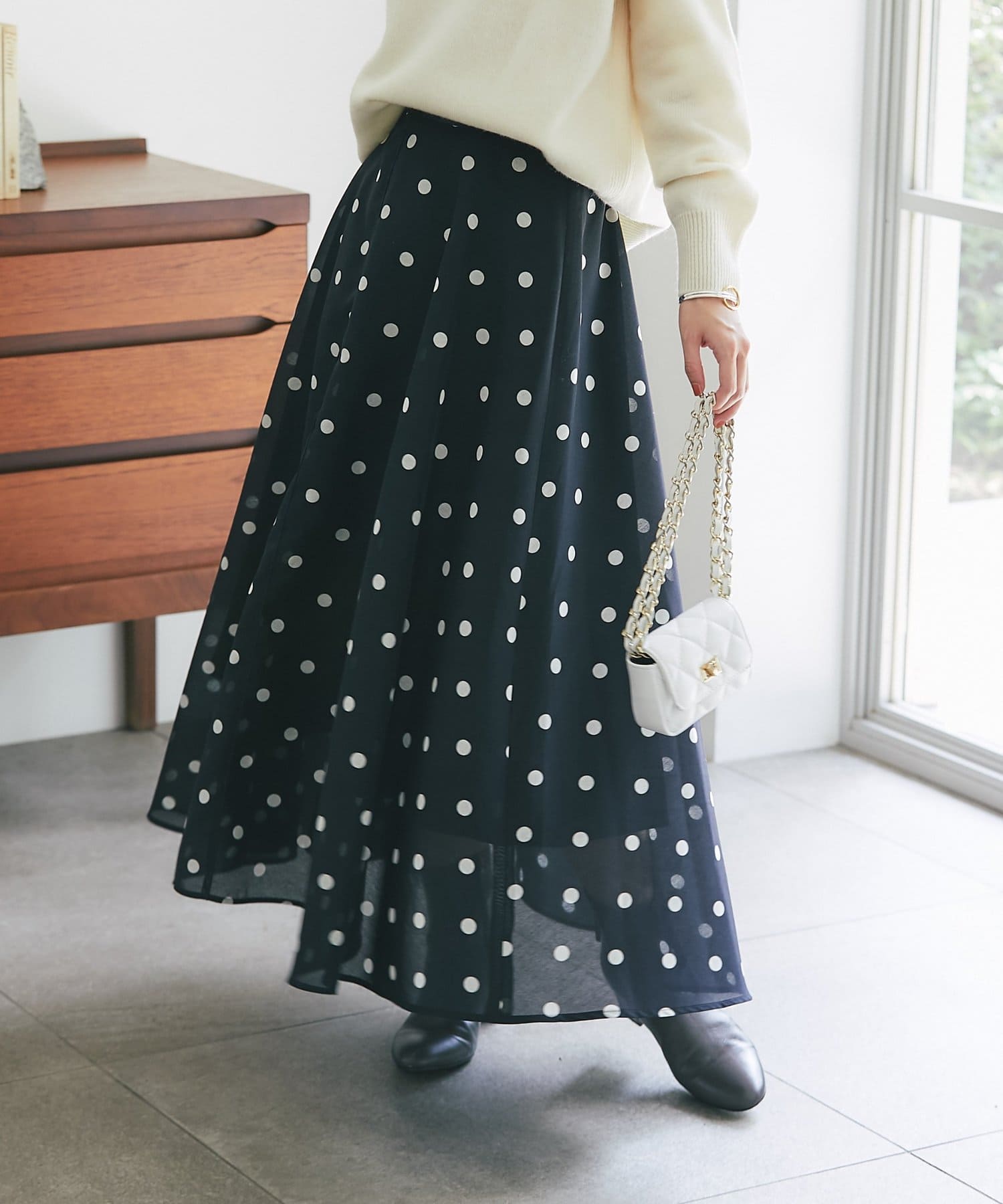 【名品・最強着映え】ドットオーガンサーキュラースカート