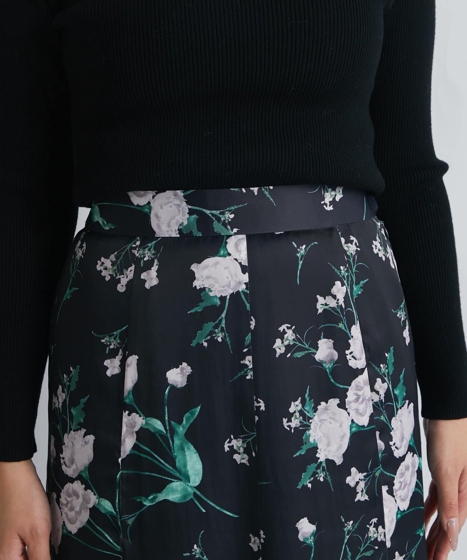 フェミニンに揺れる、大人の花柄のマーメイドロングスカート