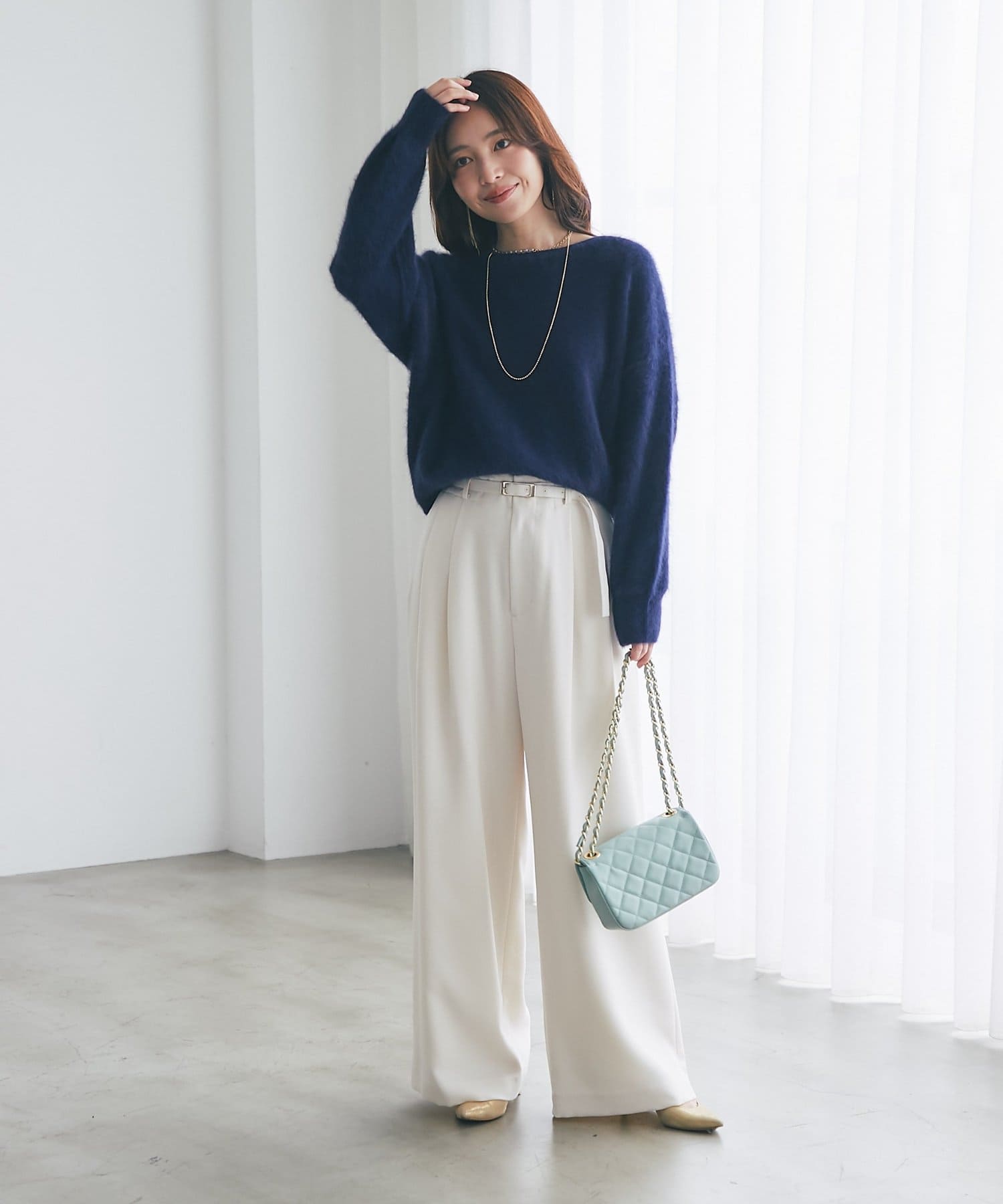 ニットやブラウスと合わせて、フェミニンな印象に。