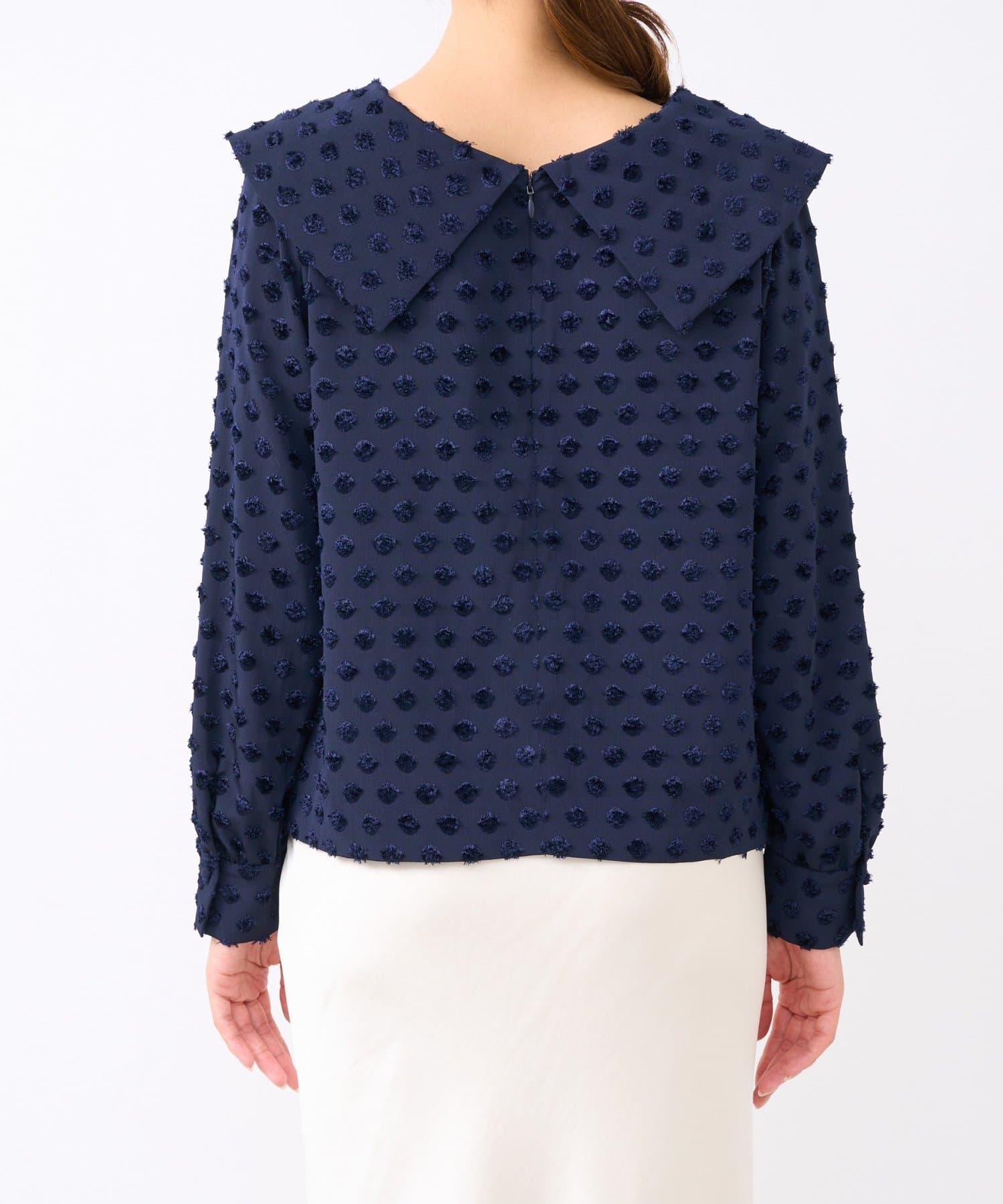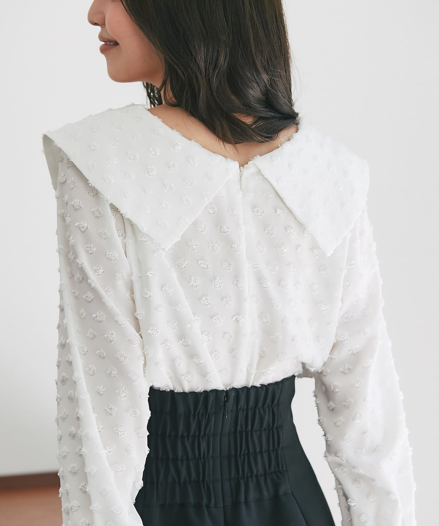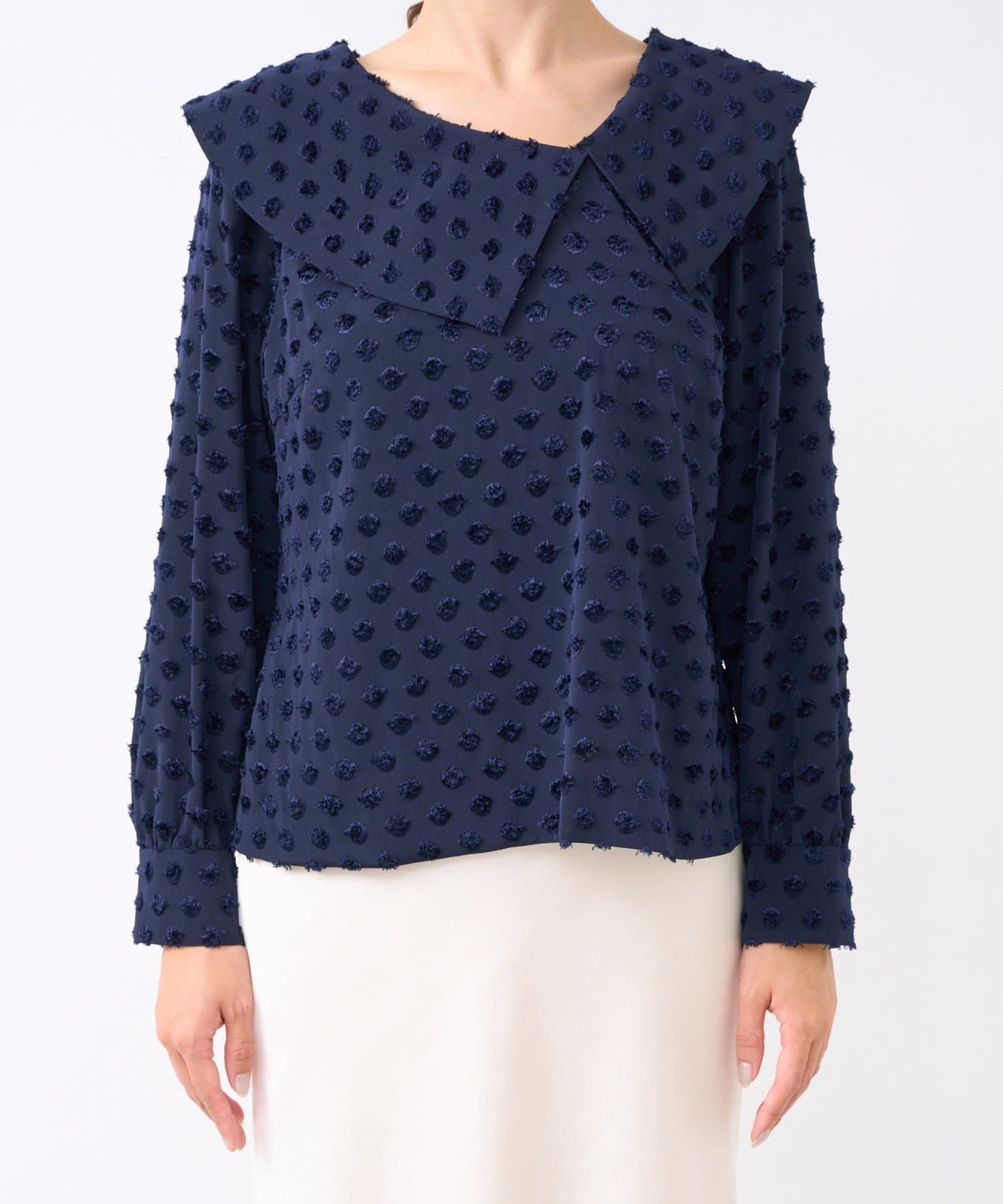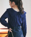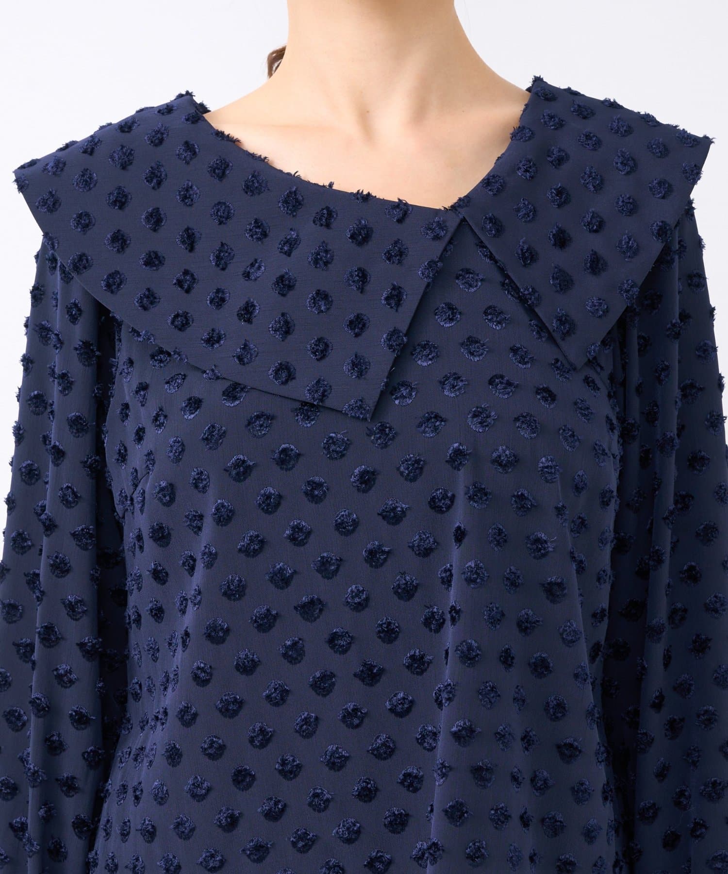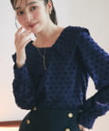 【小顔見え】アシメビッグカラードットジャガードブラウス