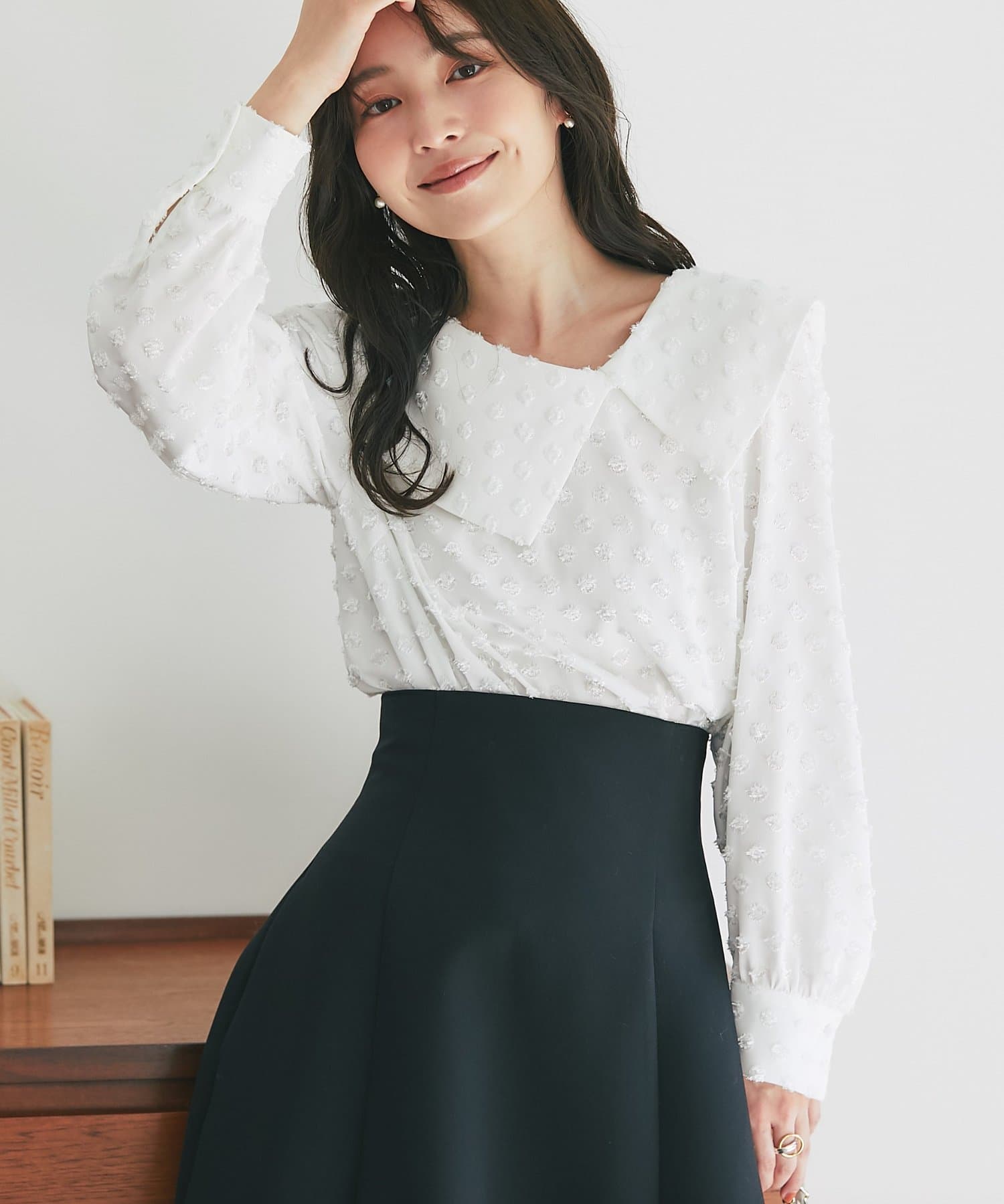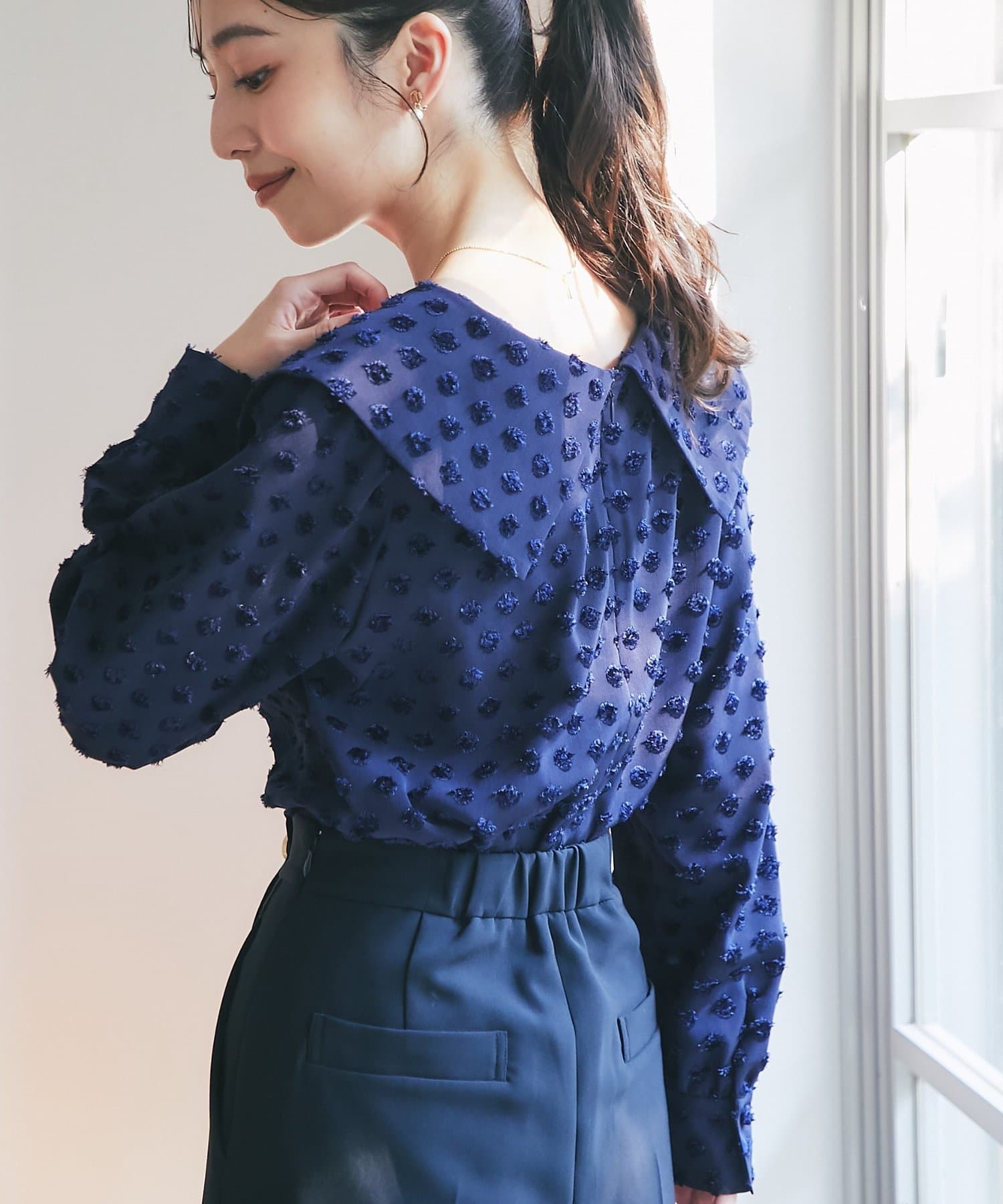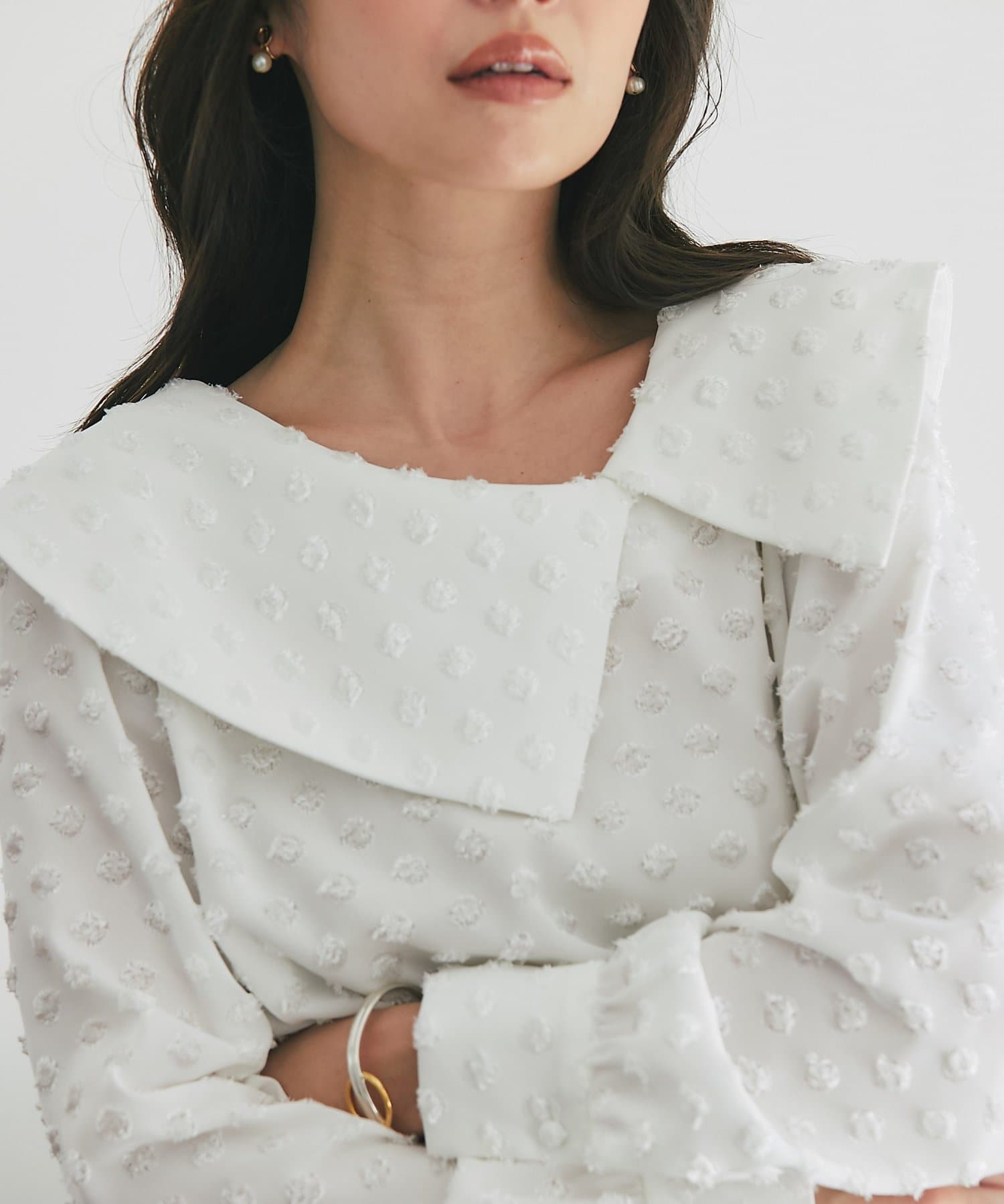 【小顔見え】アシメビッグカラードットジャガードブラウス
