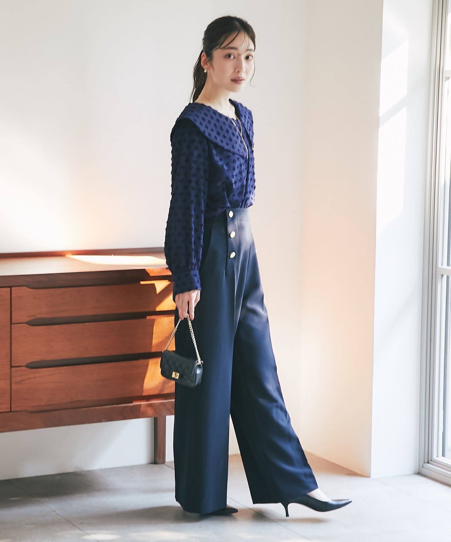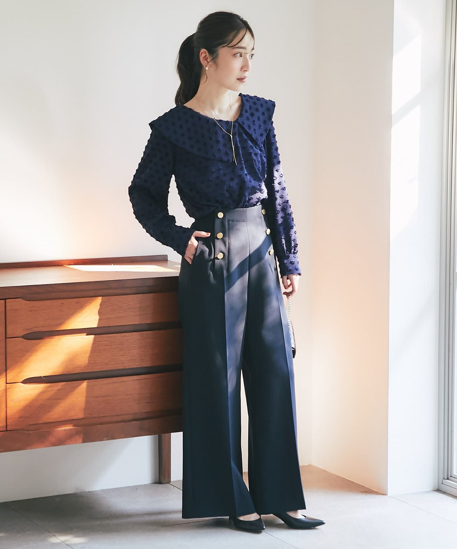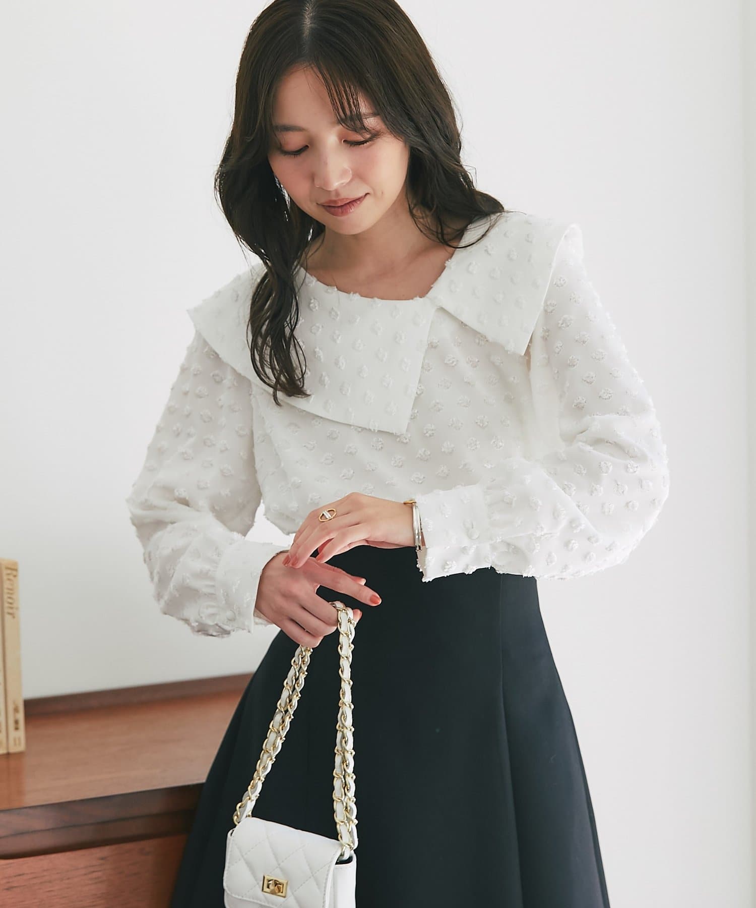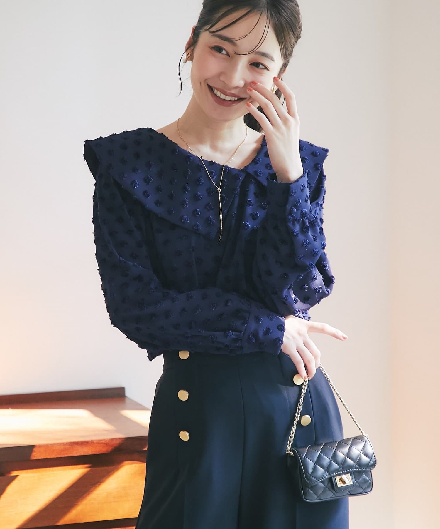 【小顔見え】アシメビッグカラードットジャガードブラウス