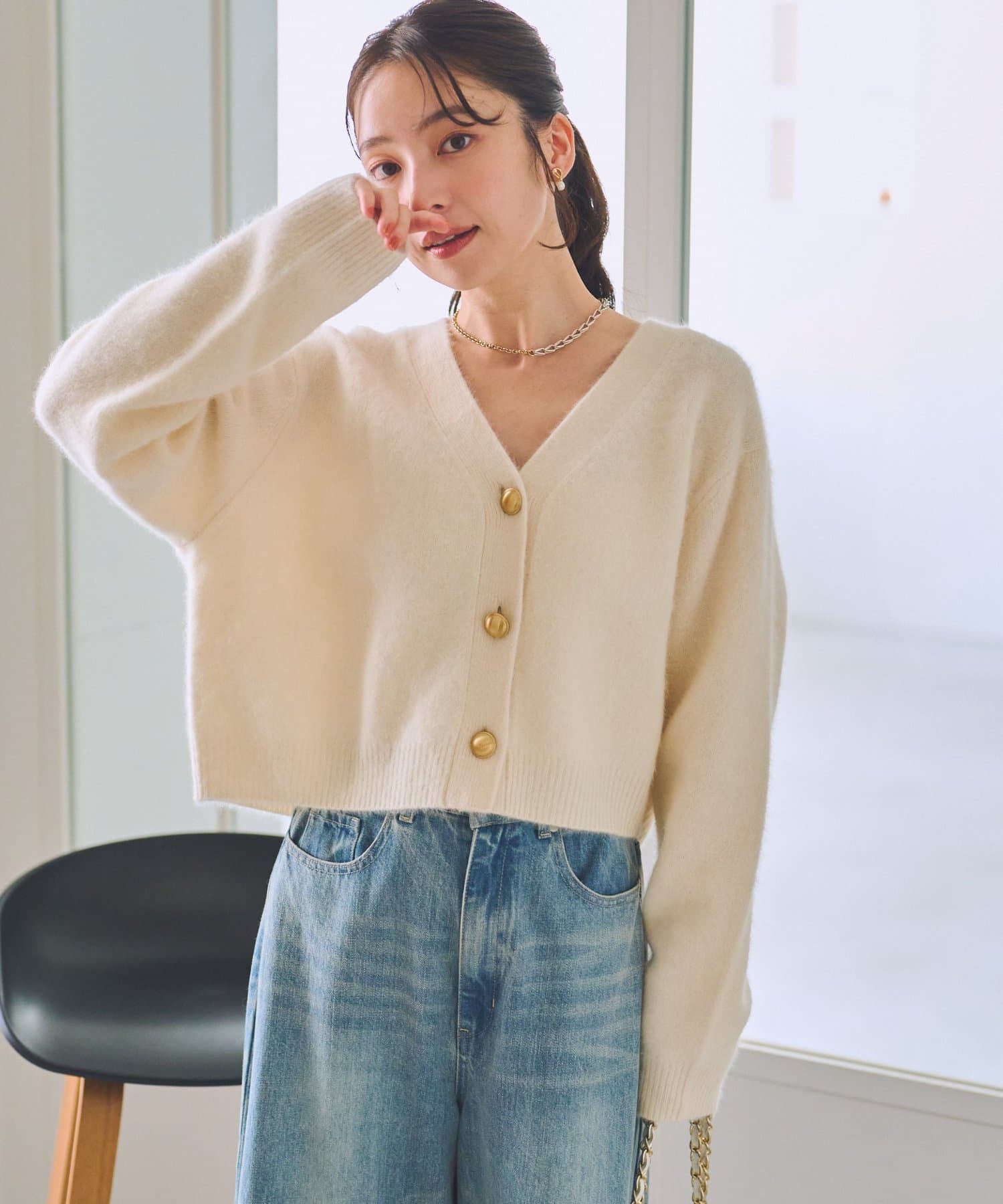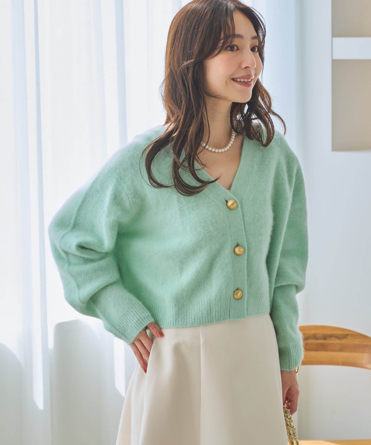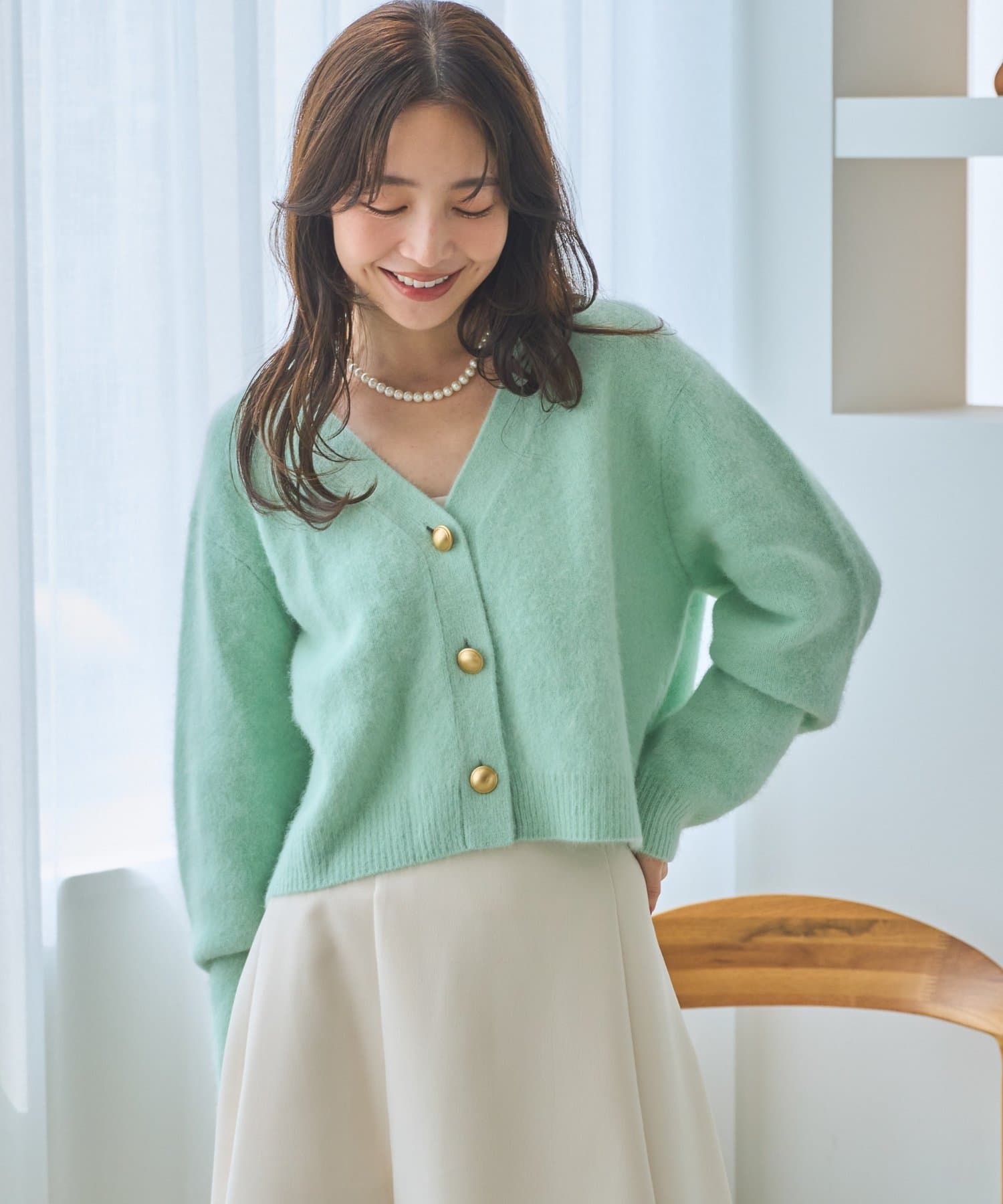 【上質・ふわふわ】ヘアリーヤーンメタルボタンカーディガン