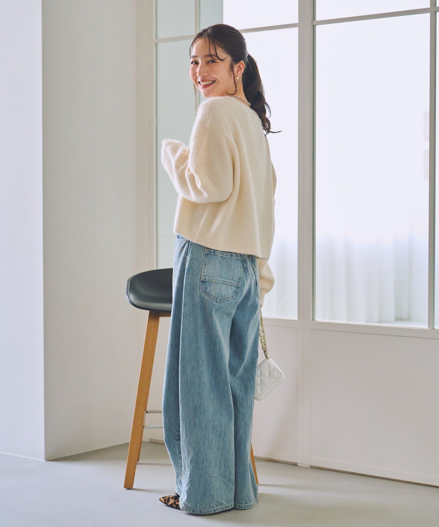 ゆったりとしたサイズ感ながらクロップド丈で、すっきりとした印象に。