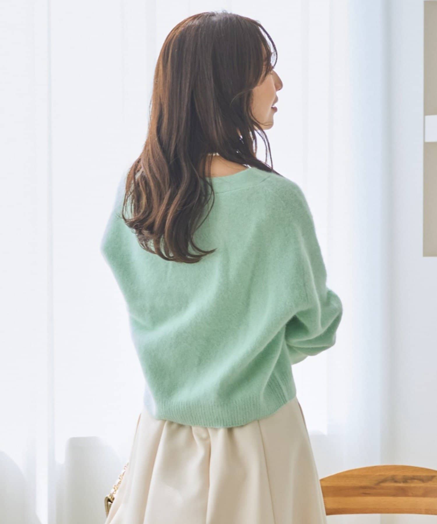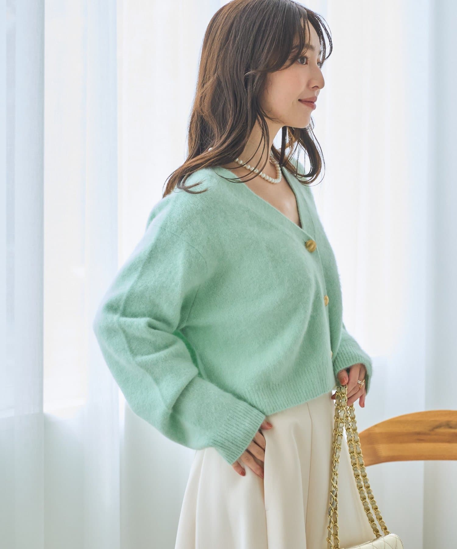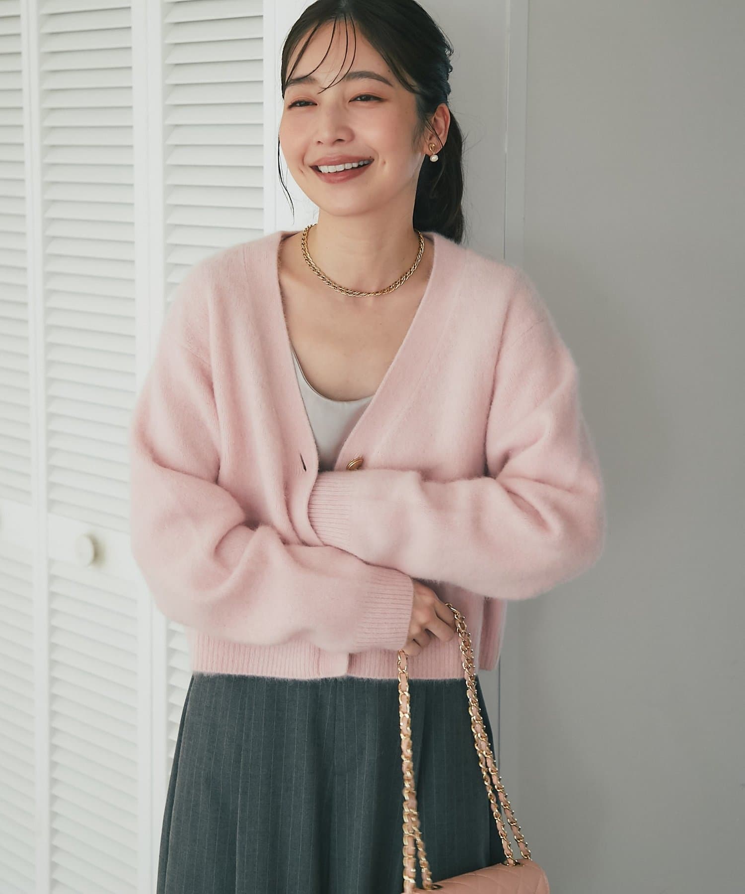 ふんわりとした優しい風合いが魅力のVネックニットカーディガン。