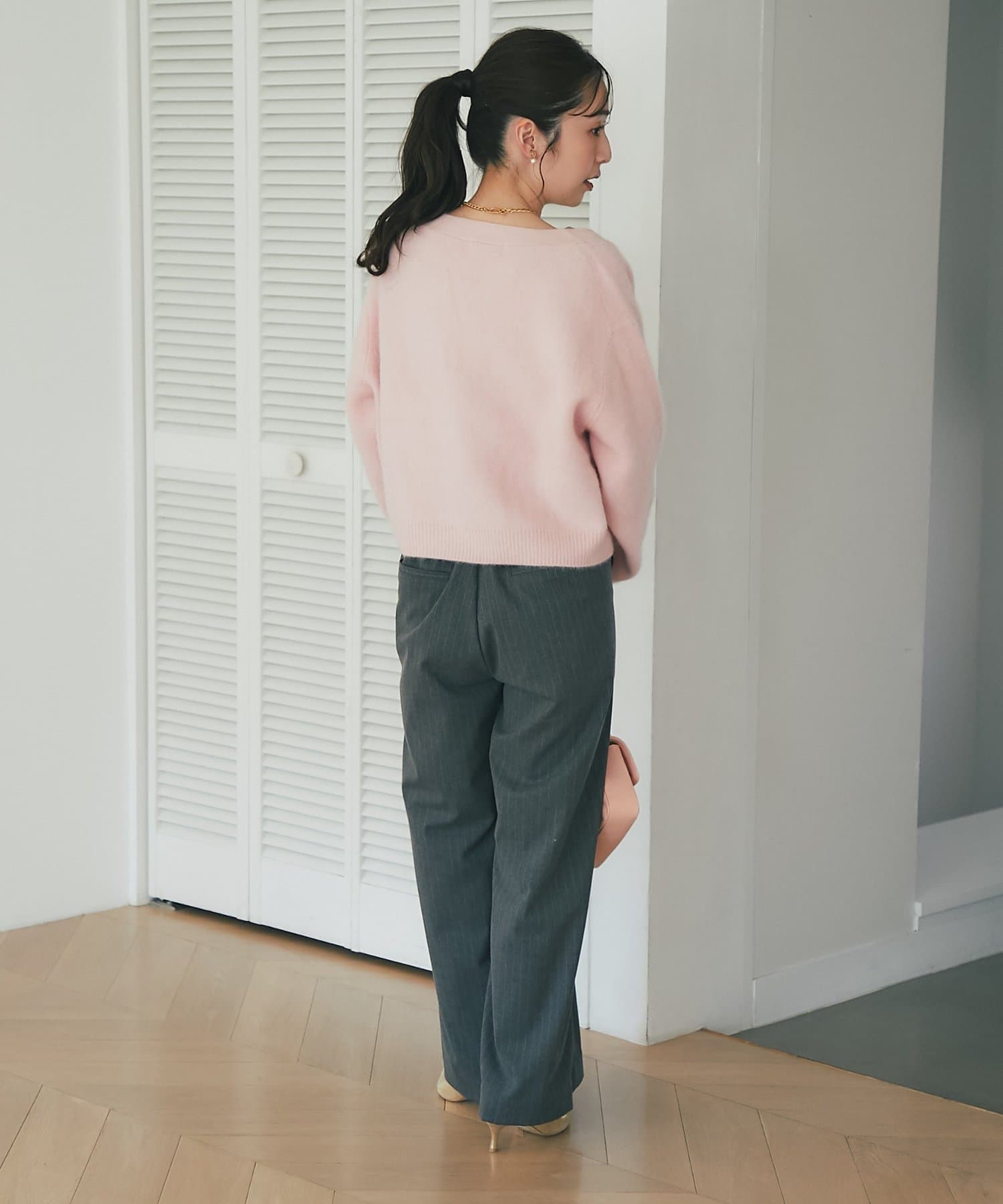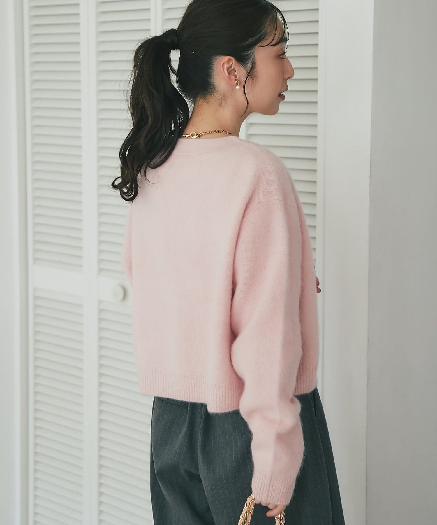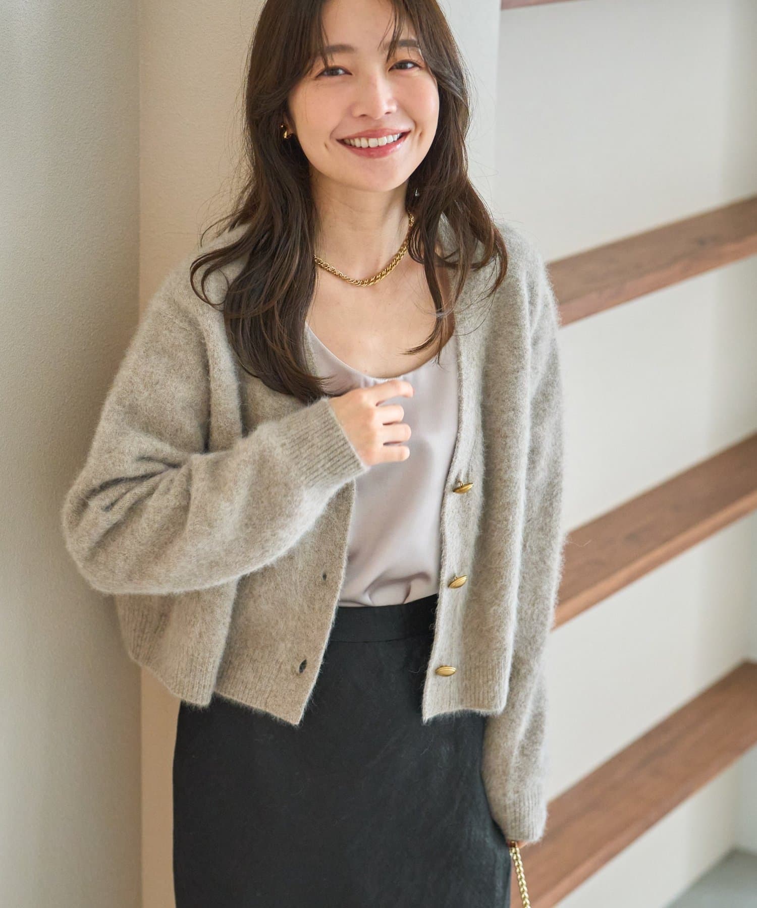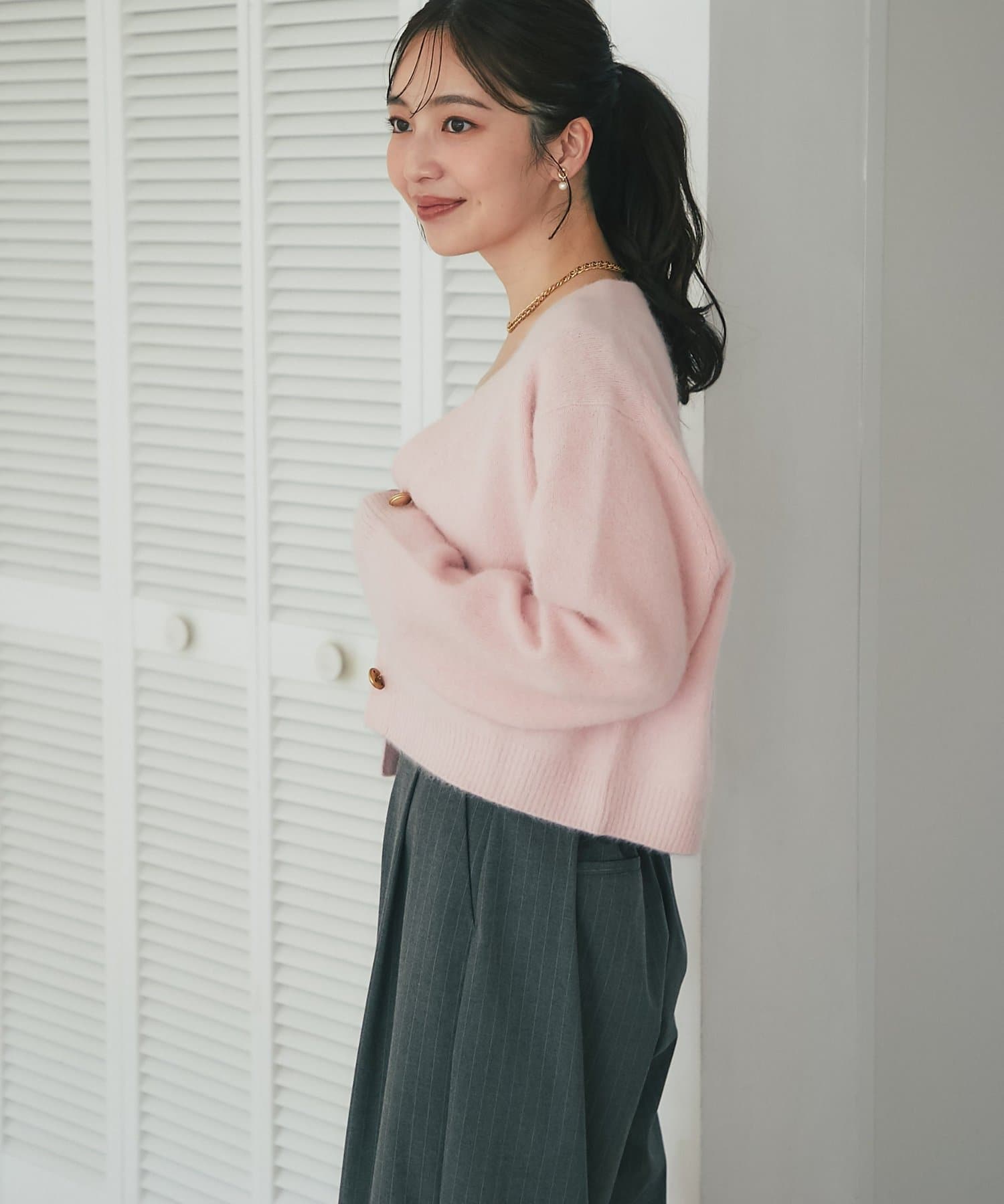 ふんわりとした優しい風合いが魅力のVネックニットカーディガン。