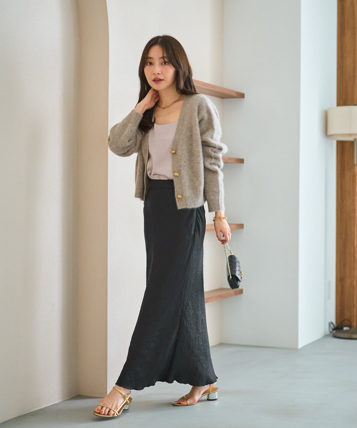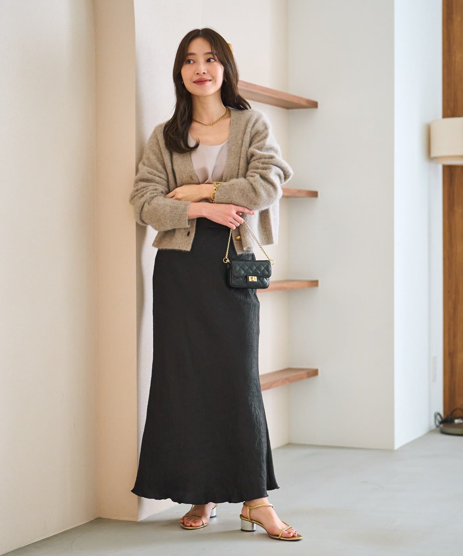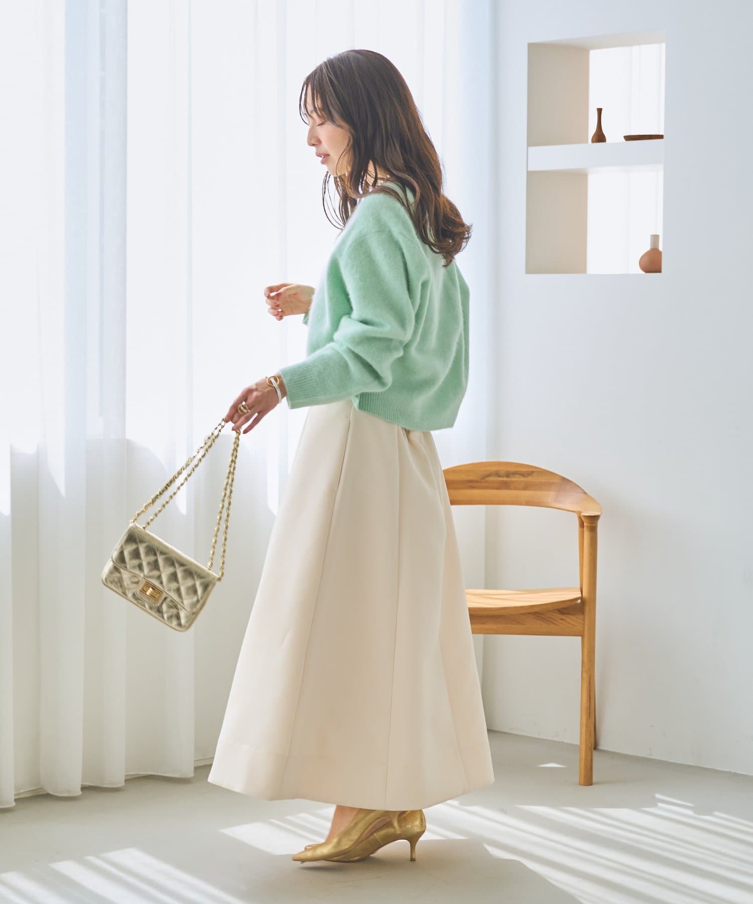 ワンピースの上に羽織れば、上品でフェミニンな印象に。