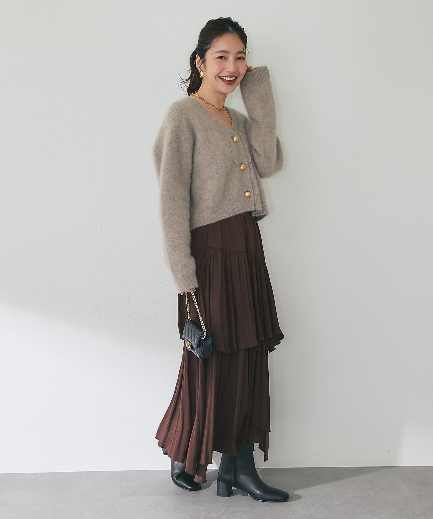 ・短めの丈感でスタイルアップ効果