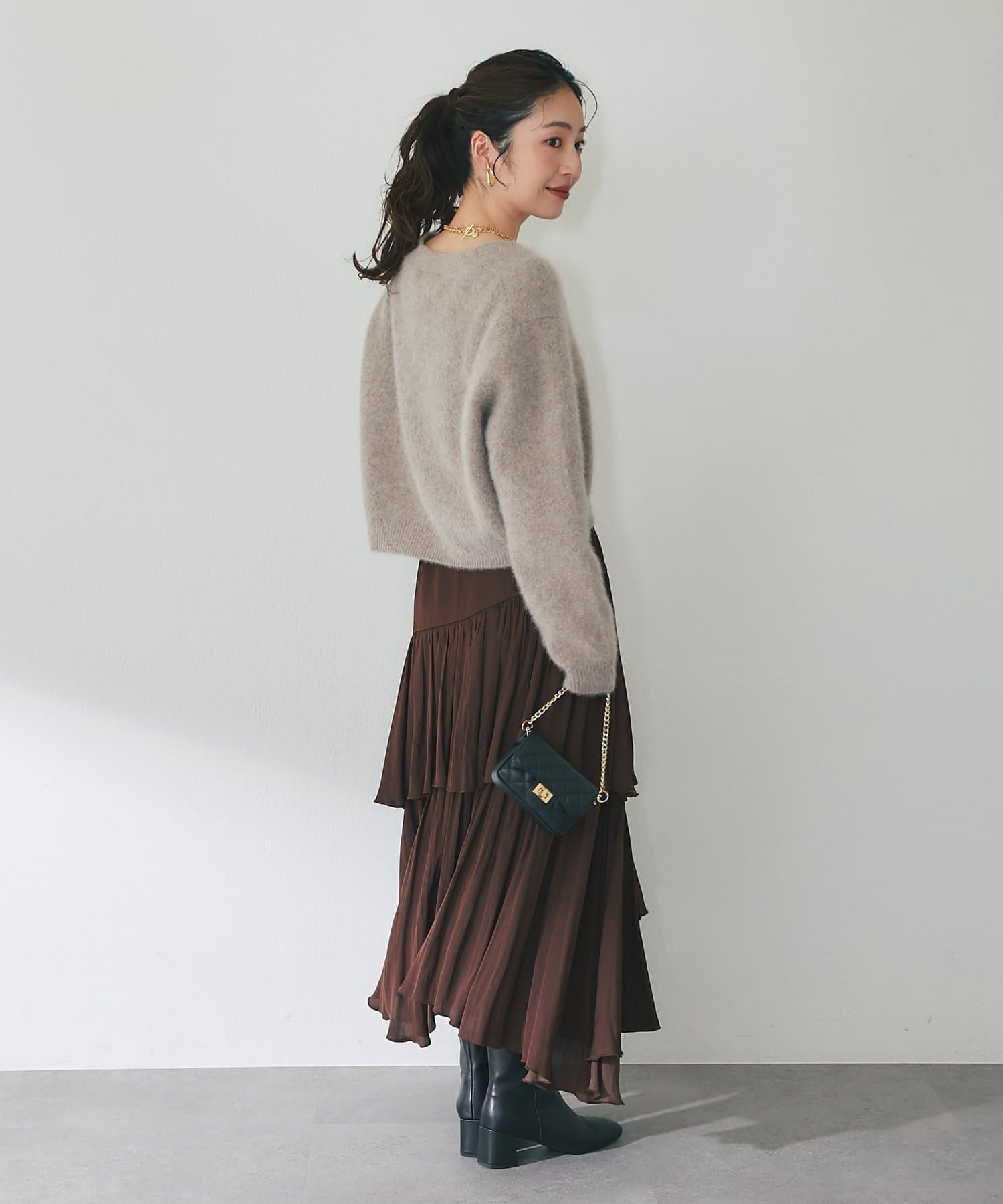ハイウエストのボトムと相性良くバランスよく着ていただけます。