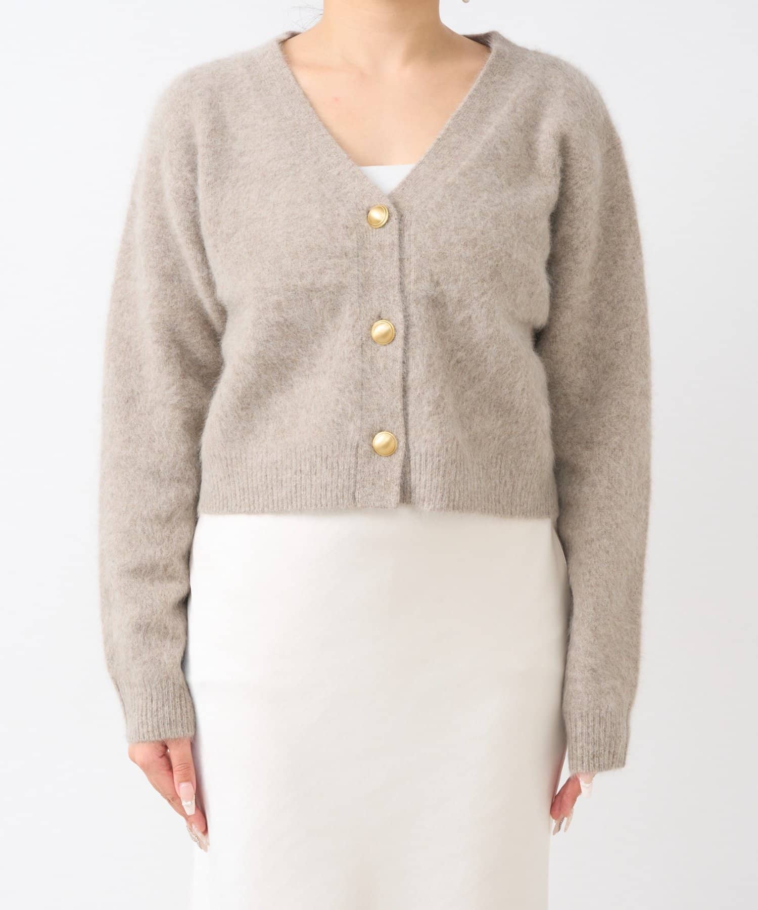 【上質・ふわふわ】ヘアリーヤーンメタルボタンカーディガン