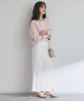 ボトムスはスカートからパンツまで幅ひろく合わせられます。