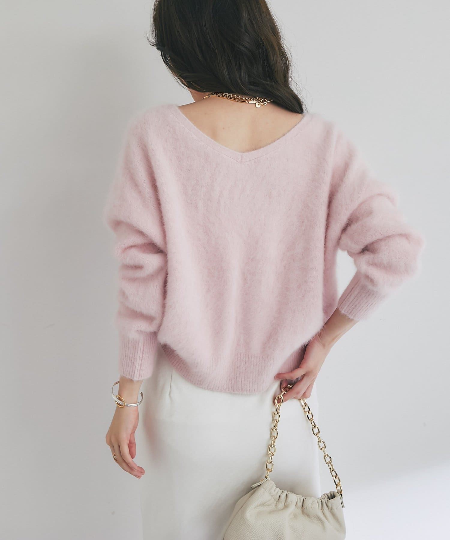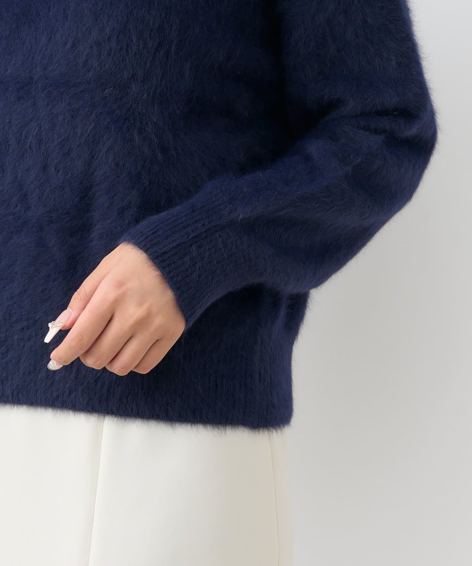 ヘアリーなフォックス混カシミヤを使用した、女性らしさあふれる上質ニット。