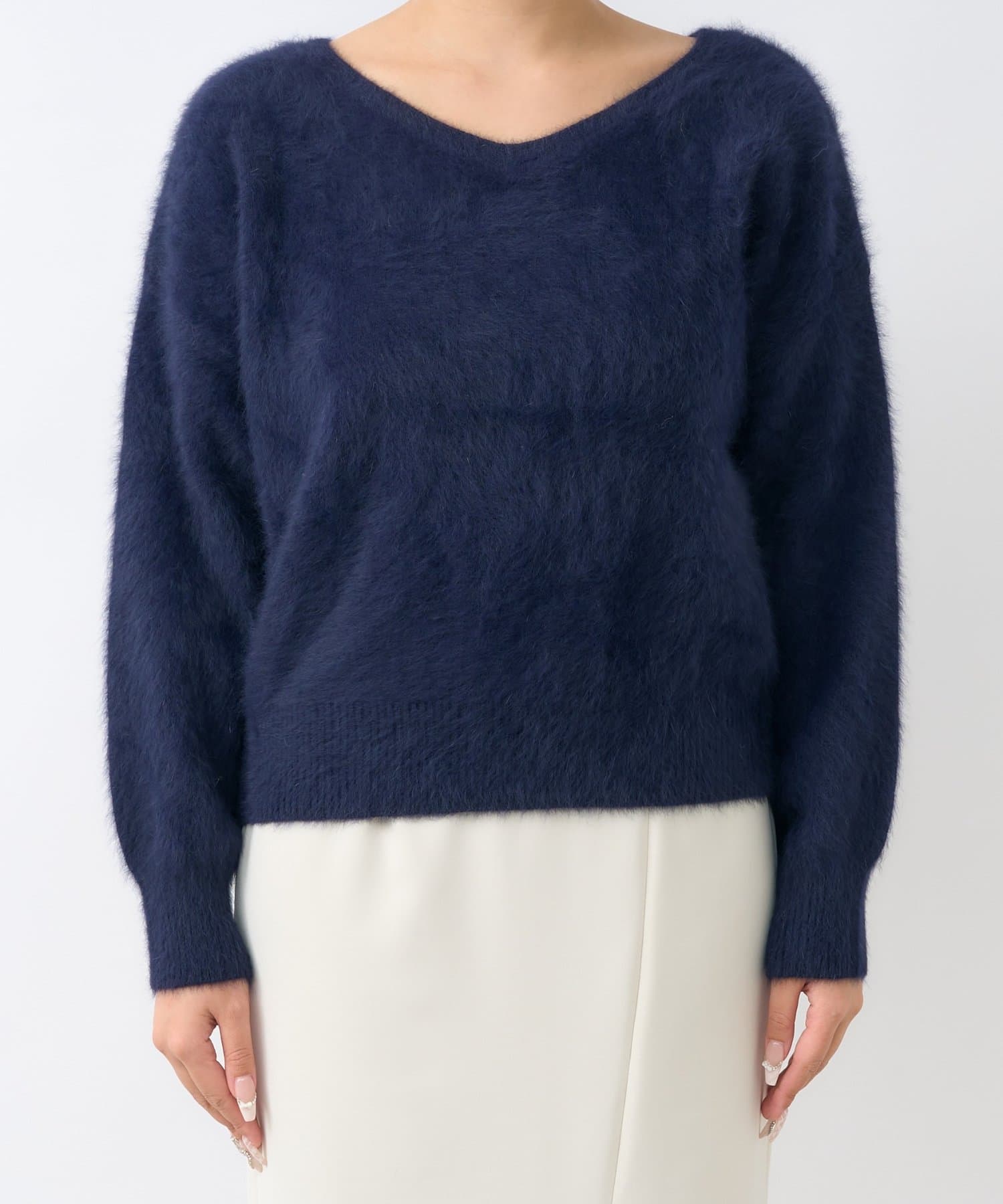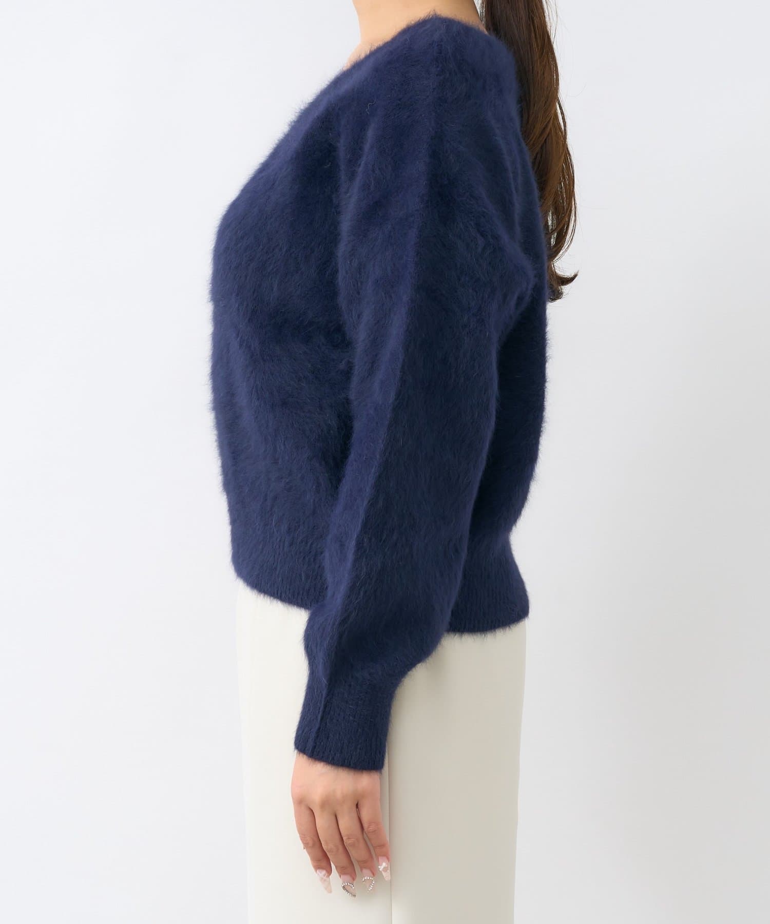 【最強美人見え】ヘアリーウールカシミヤ混前後2WAYニット