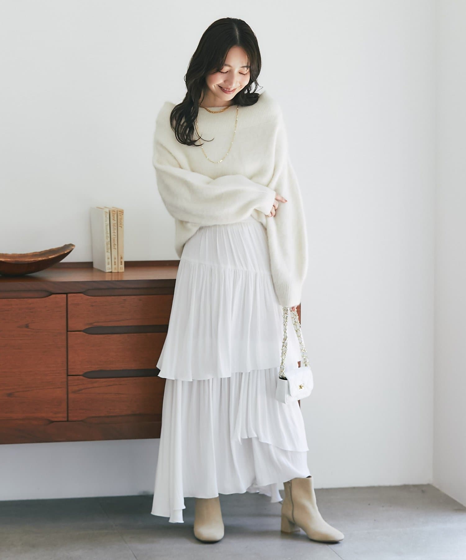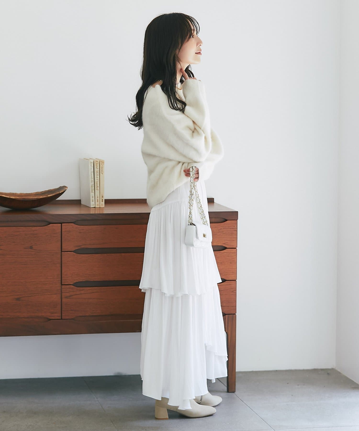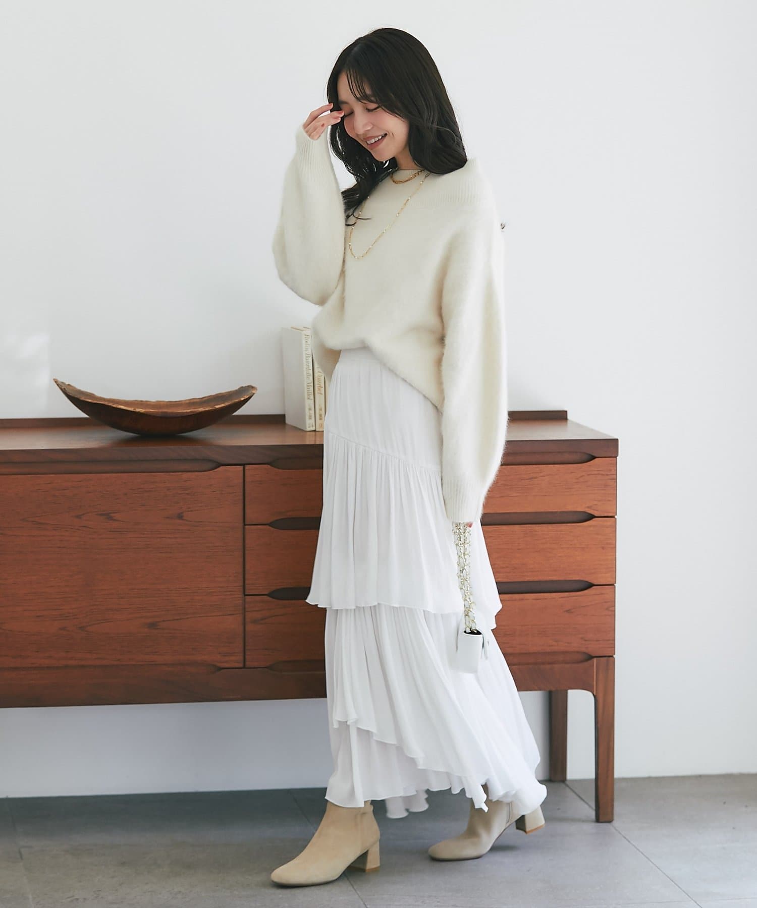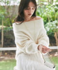 ふんわりと柔らかな印象を纏うオフショルニット。