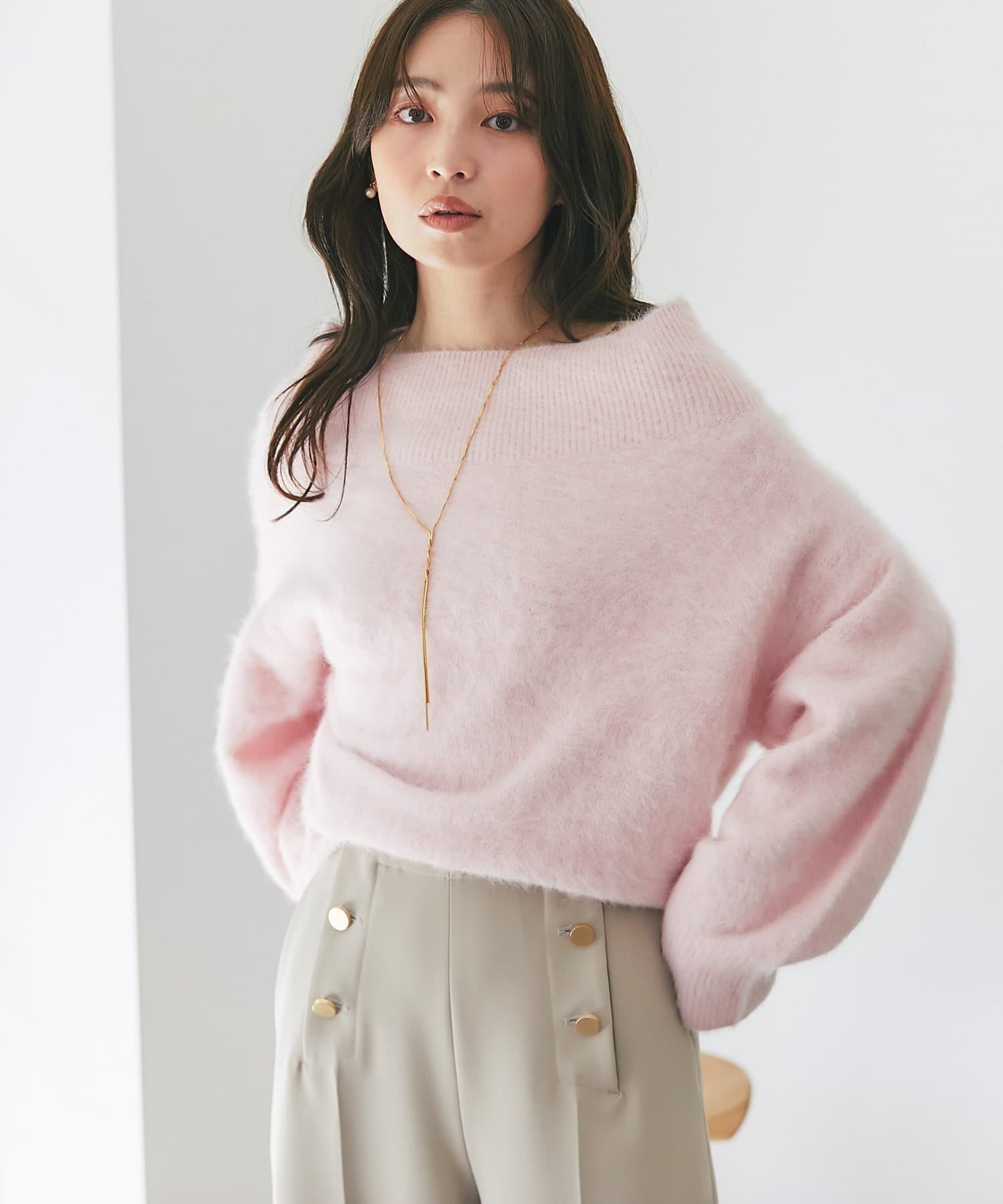・ヘアリーウールカシミヤ混オフショルニット(LBZ1052405A0004)
