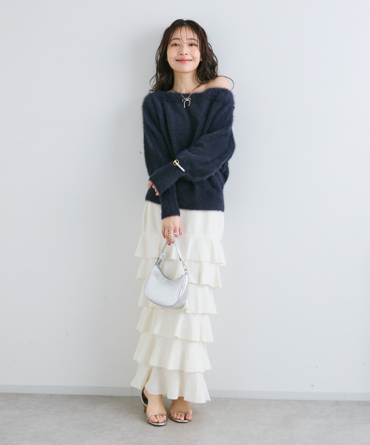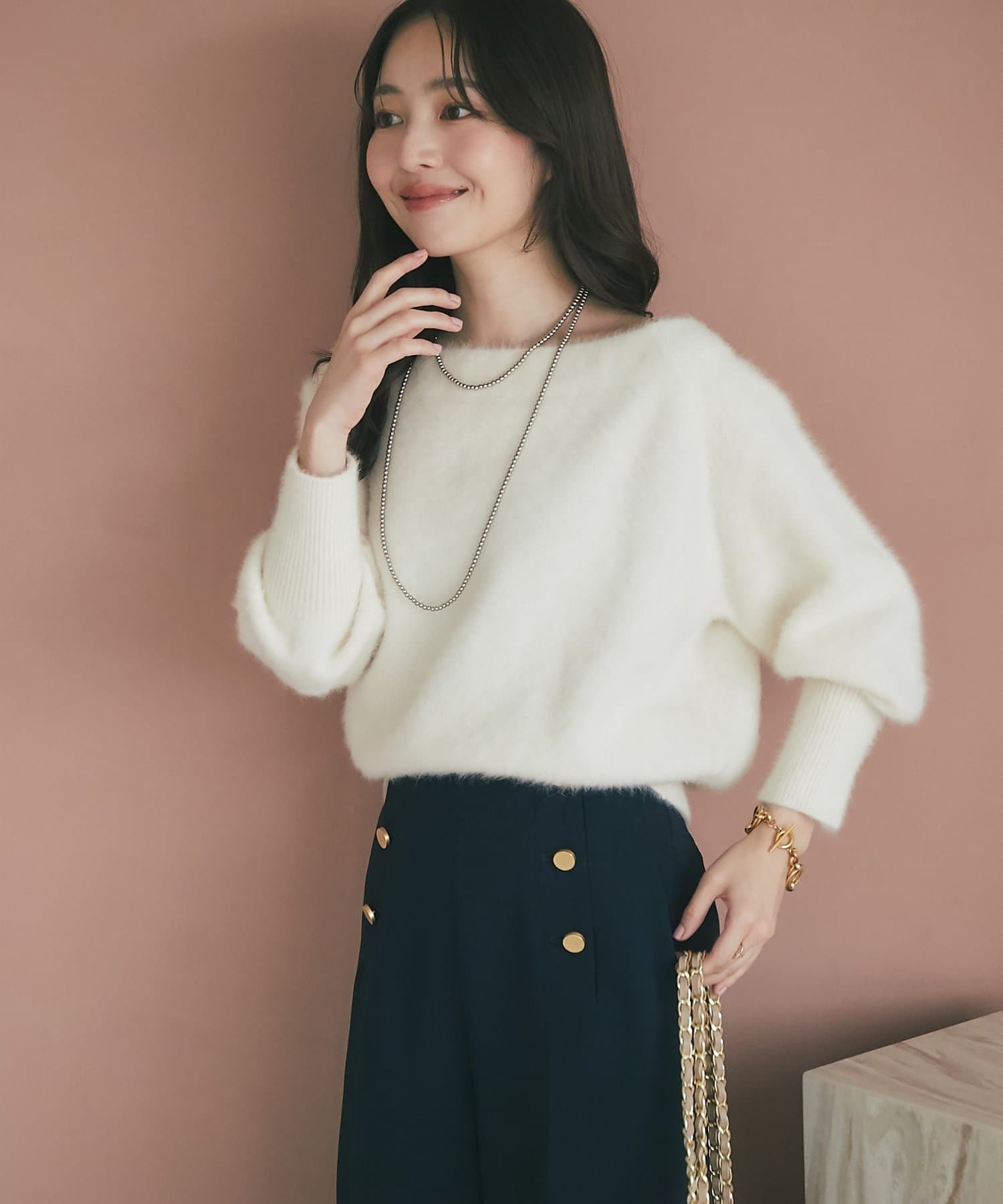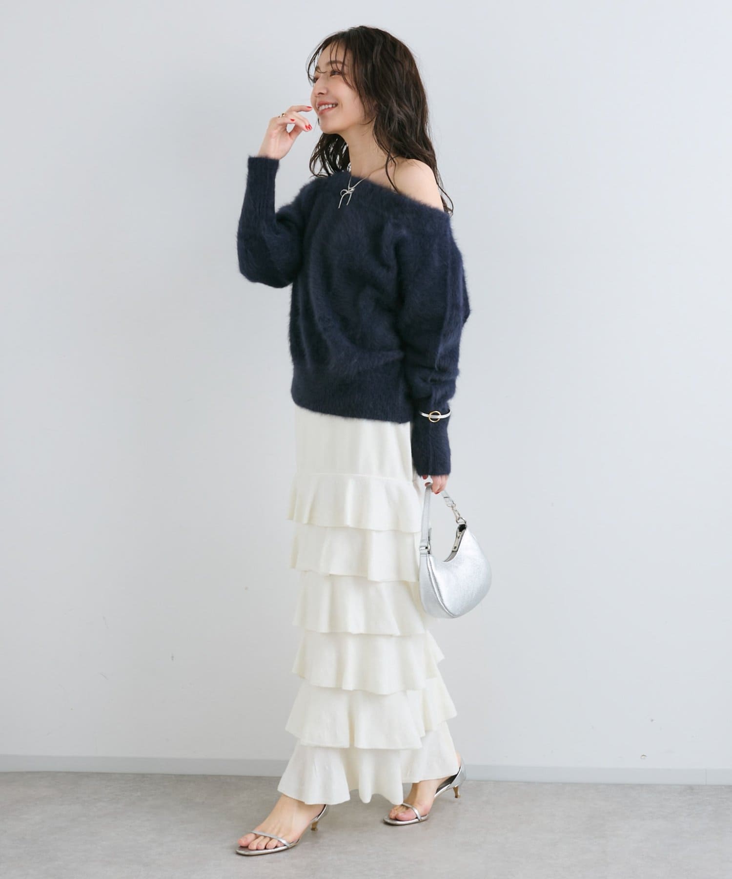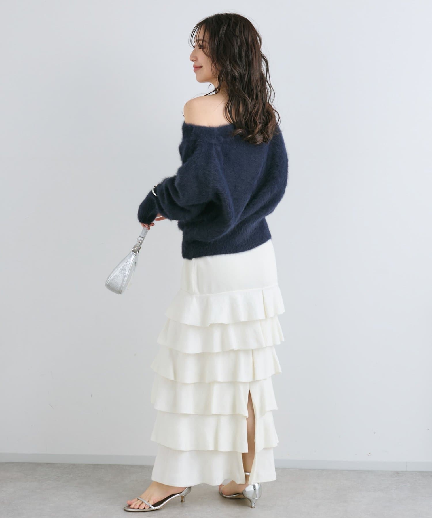 【miki監修・最強モテニット】ヘアリーウールカシミヤ混オフショルニット
