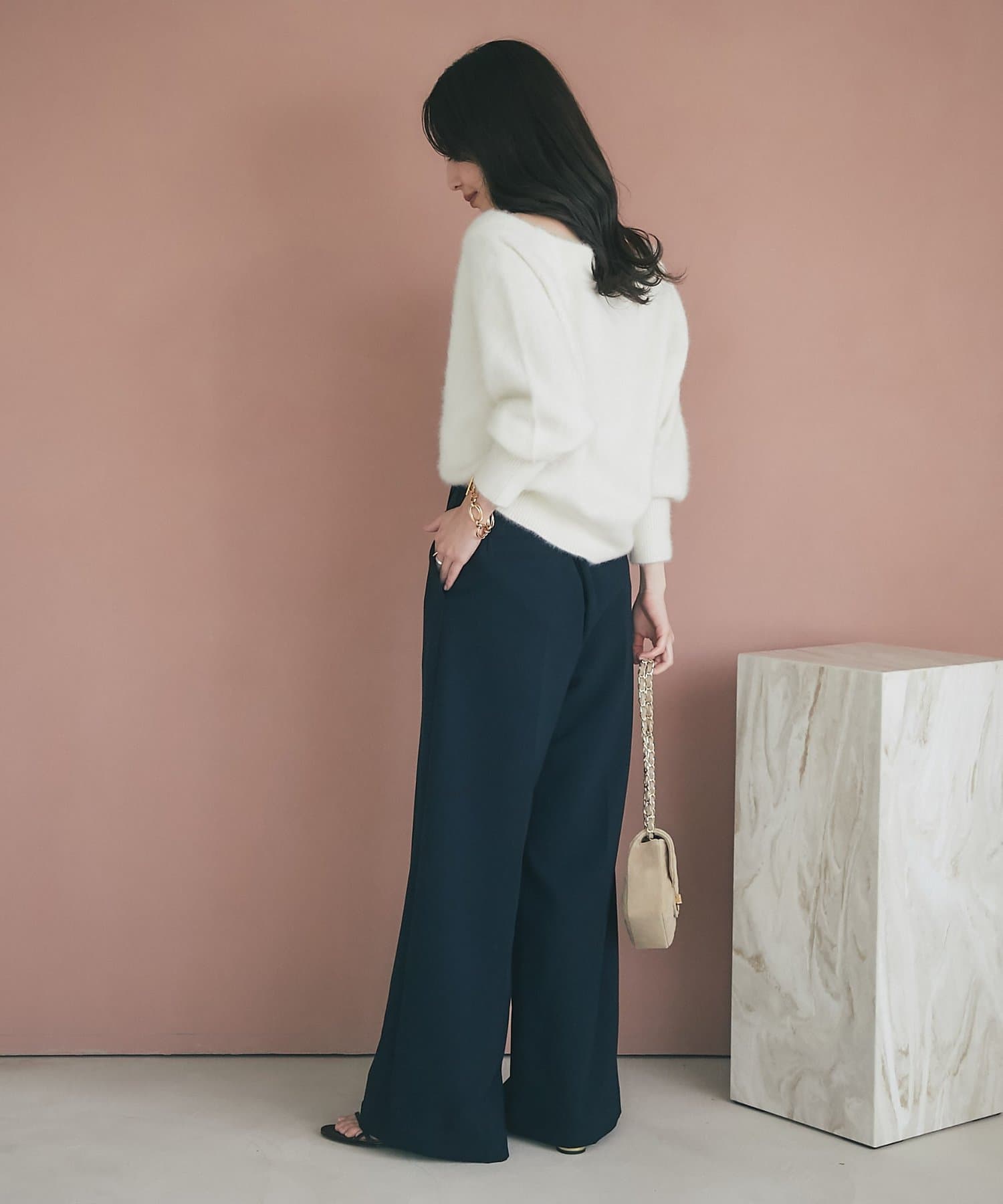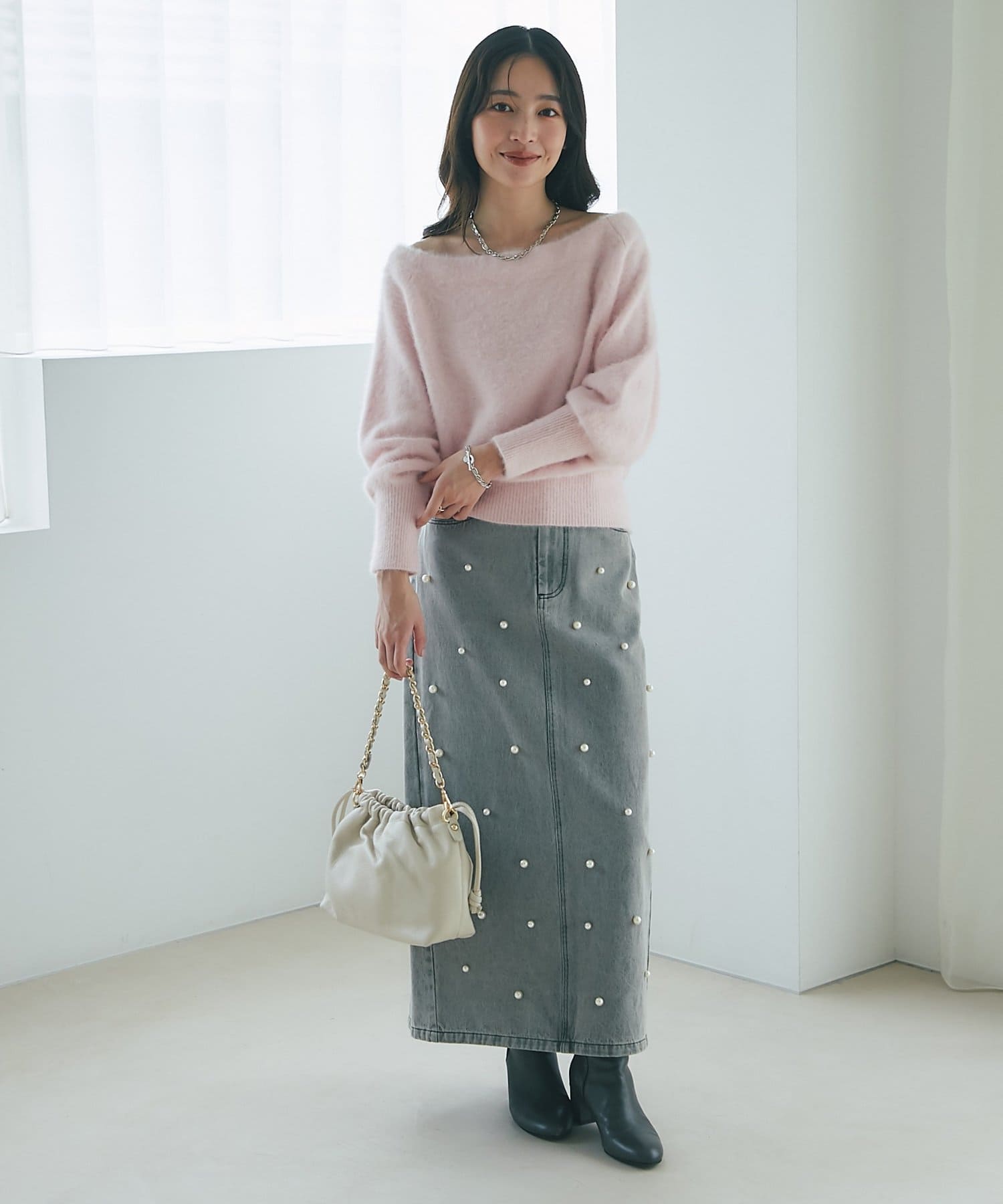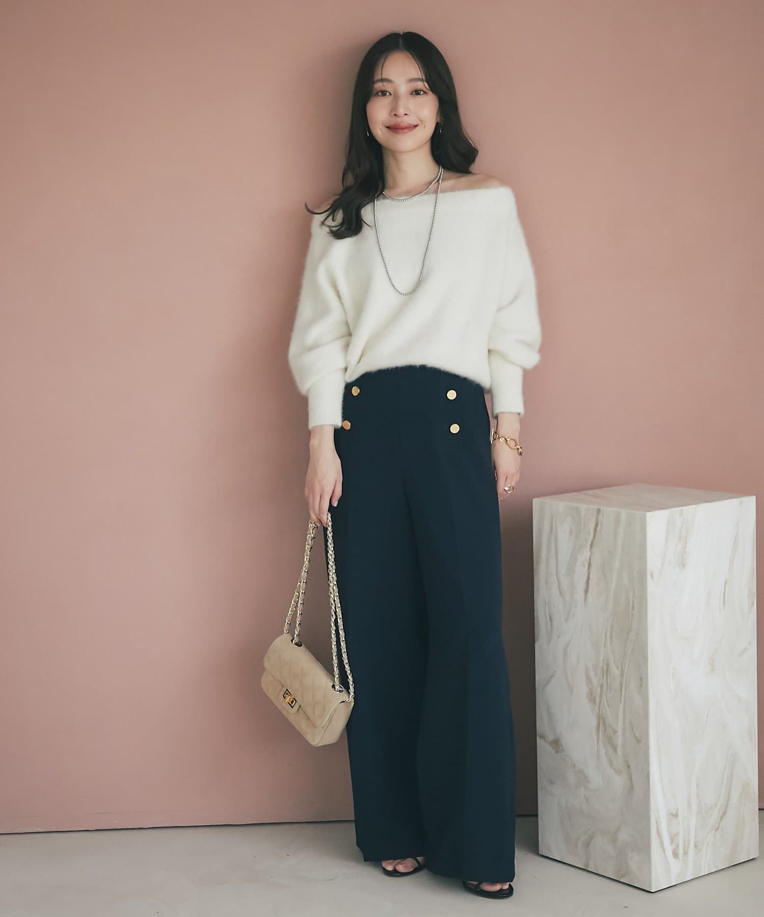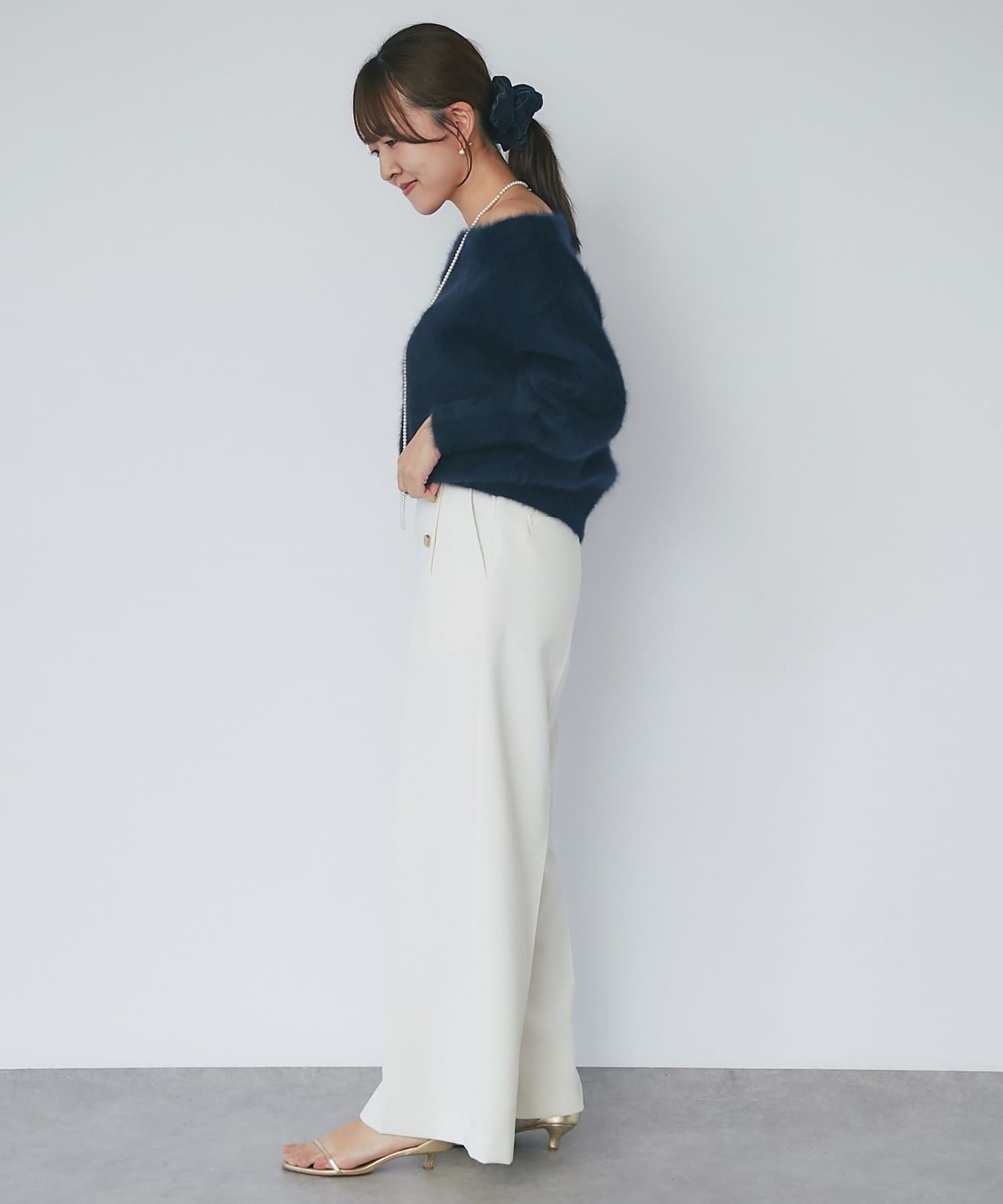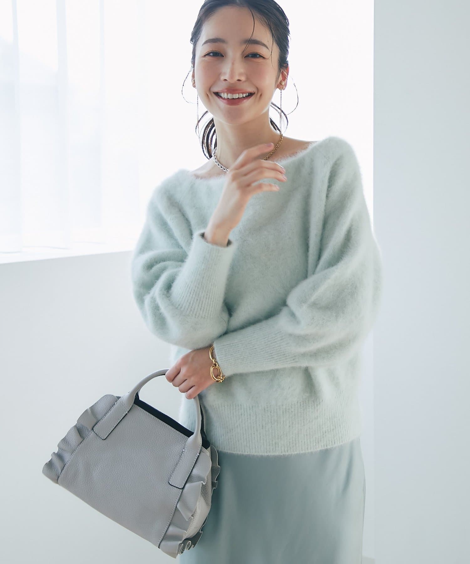 【miki監修・最強モテニット】ヘアリーウールカシミヤ混オフショルニット