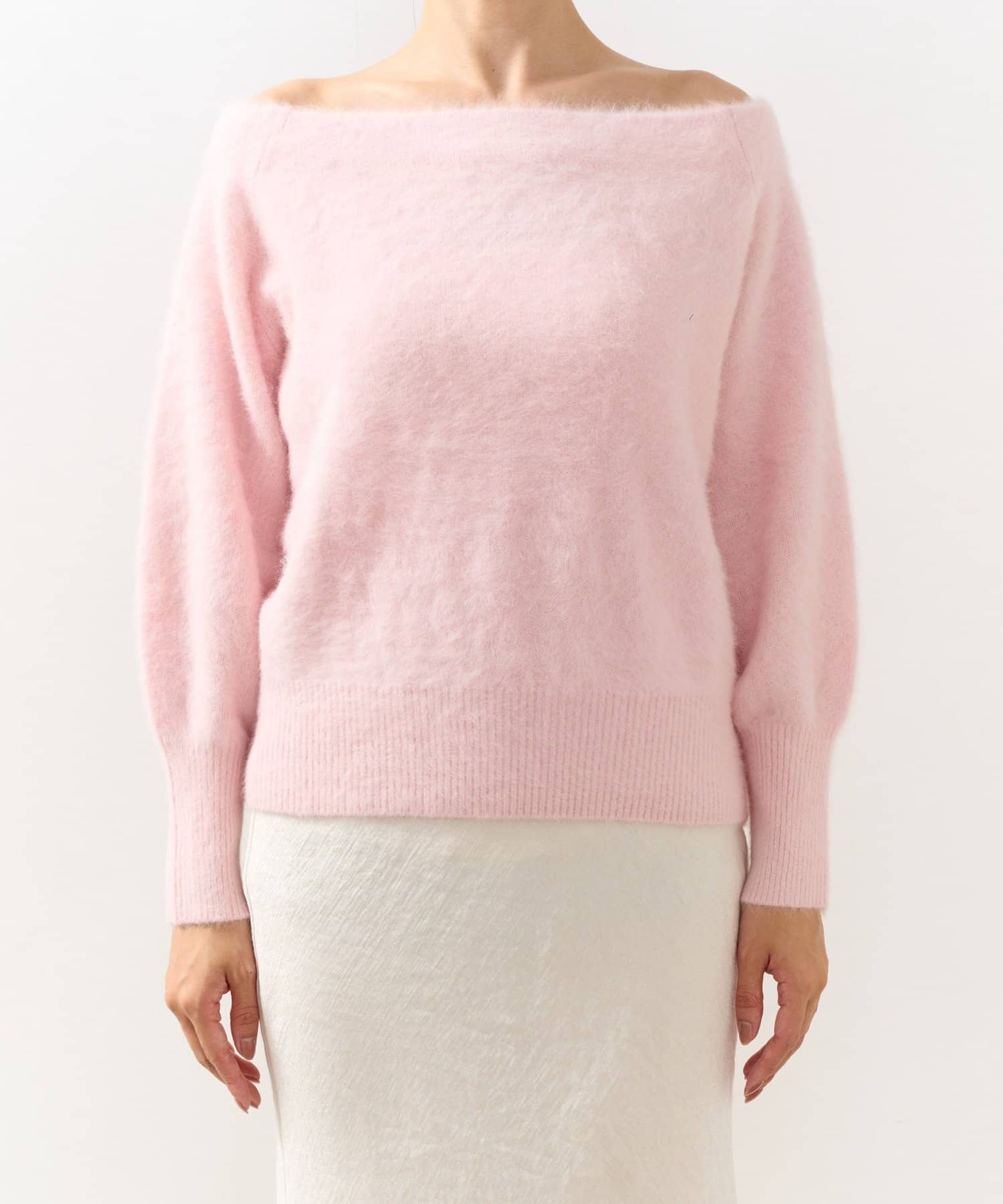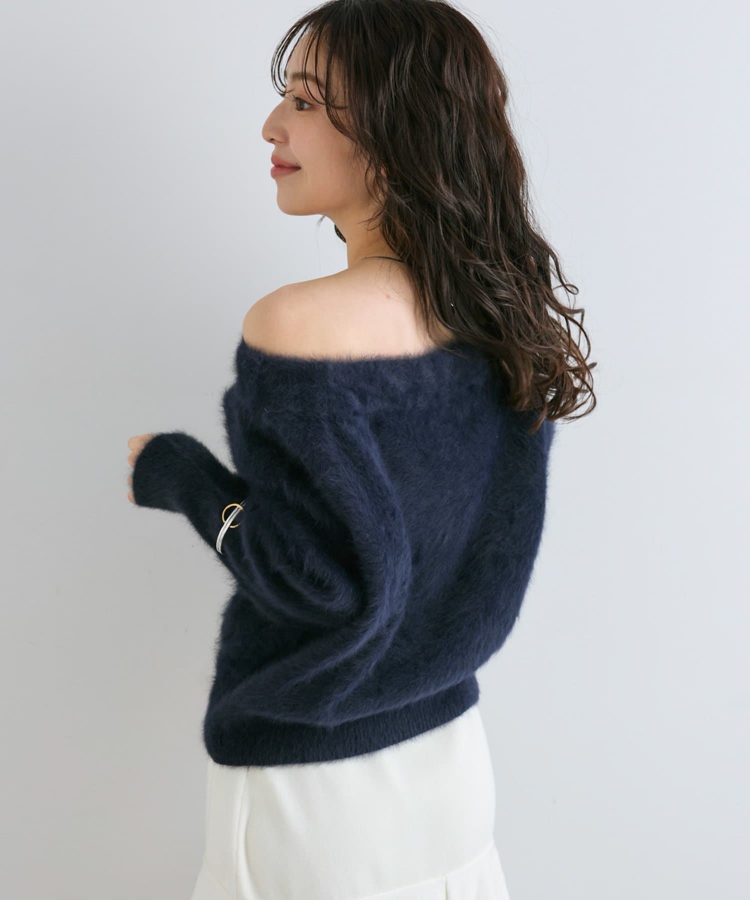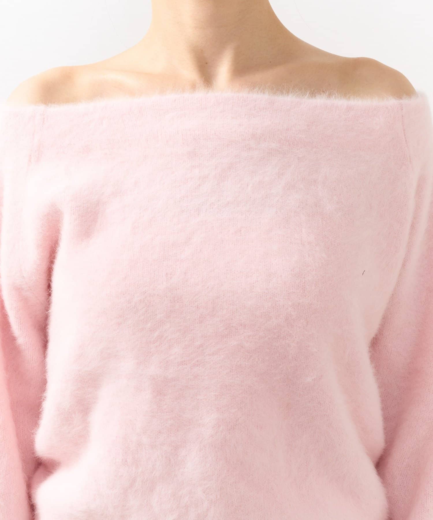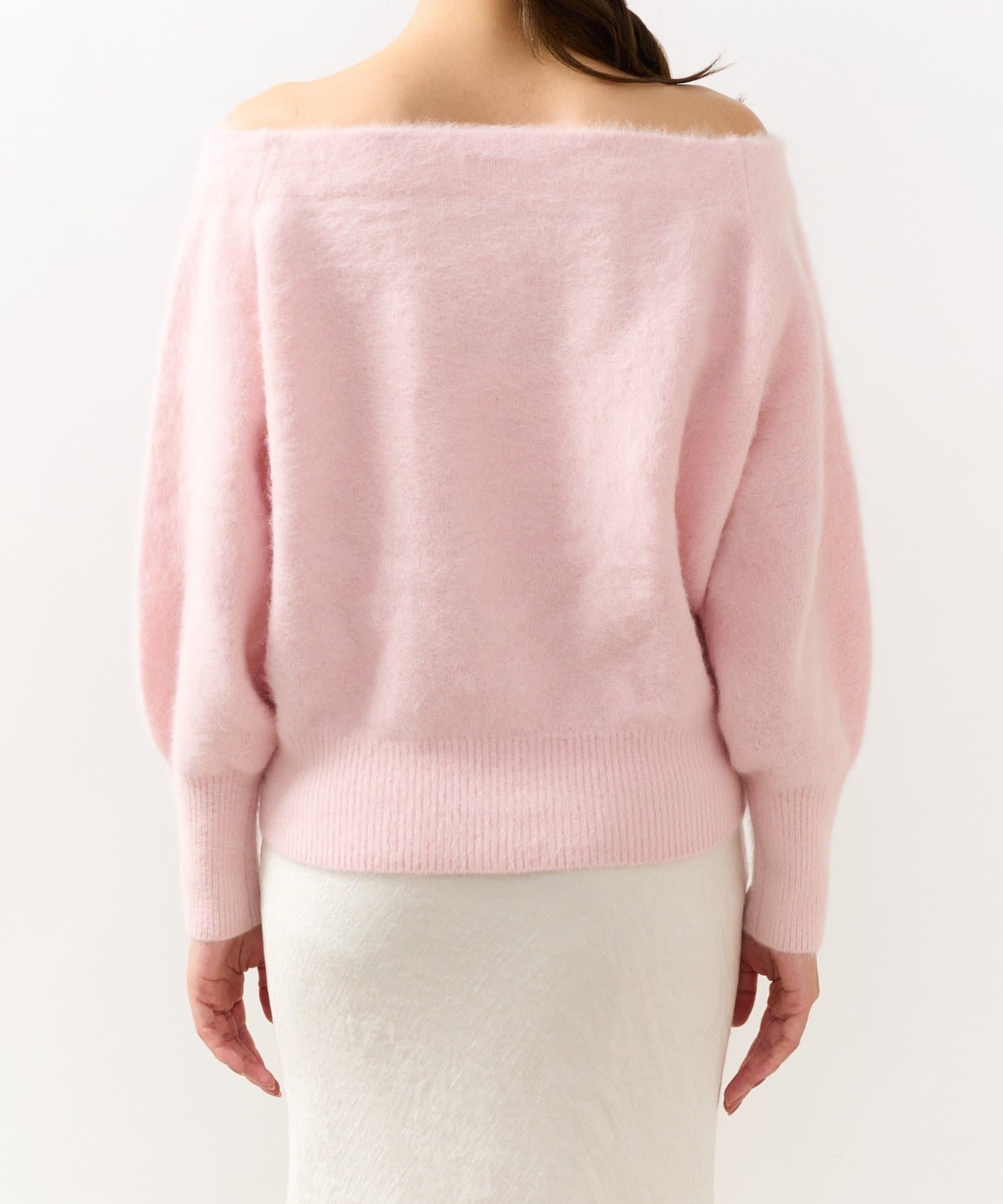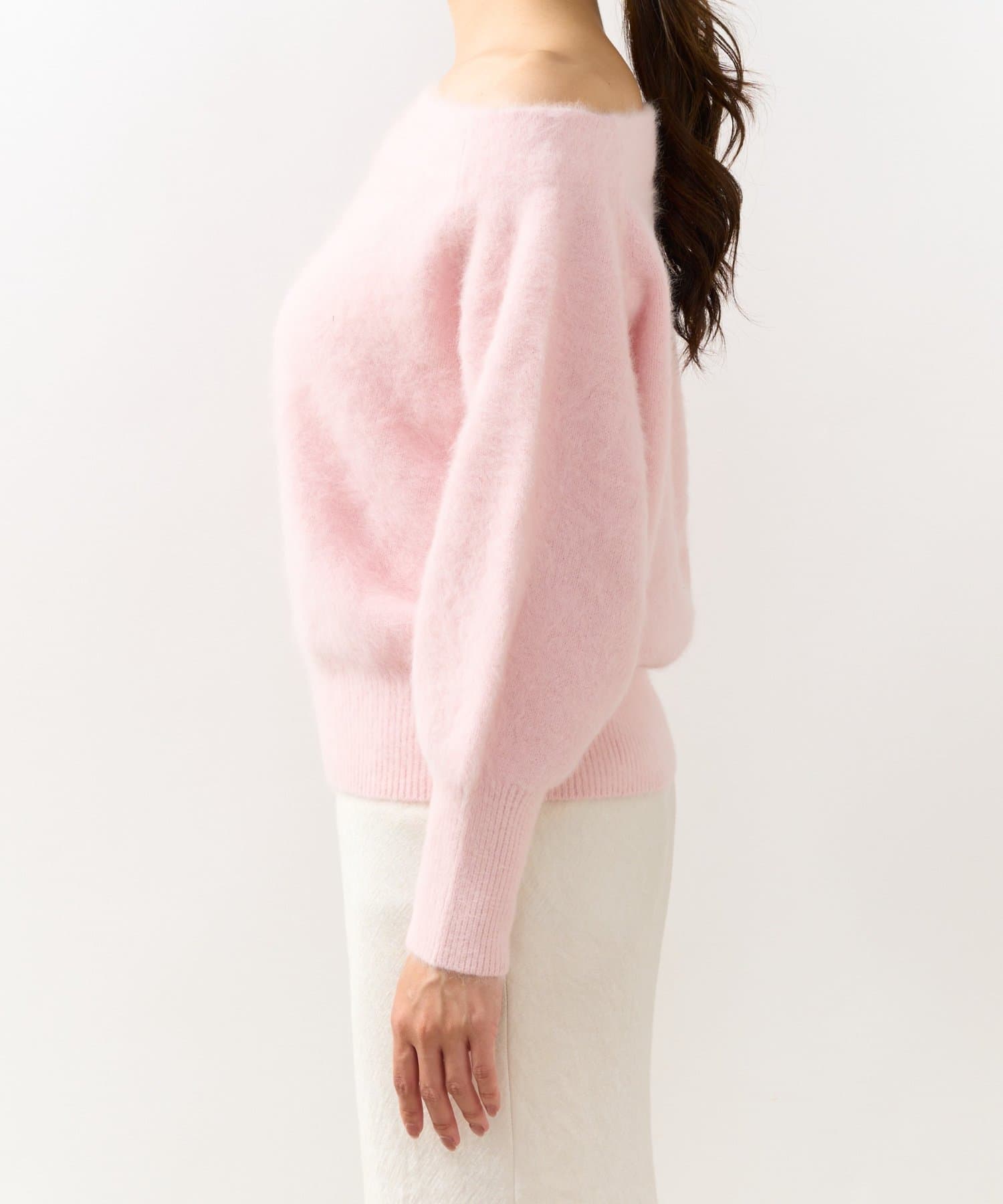 へアリーなフォックス混の女性らしさが詰まったオフショルニット。