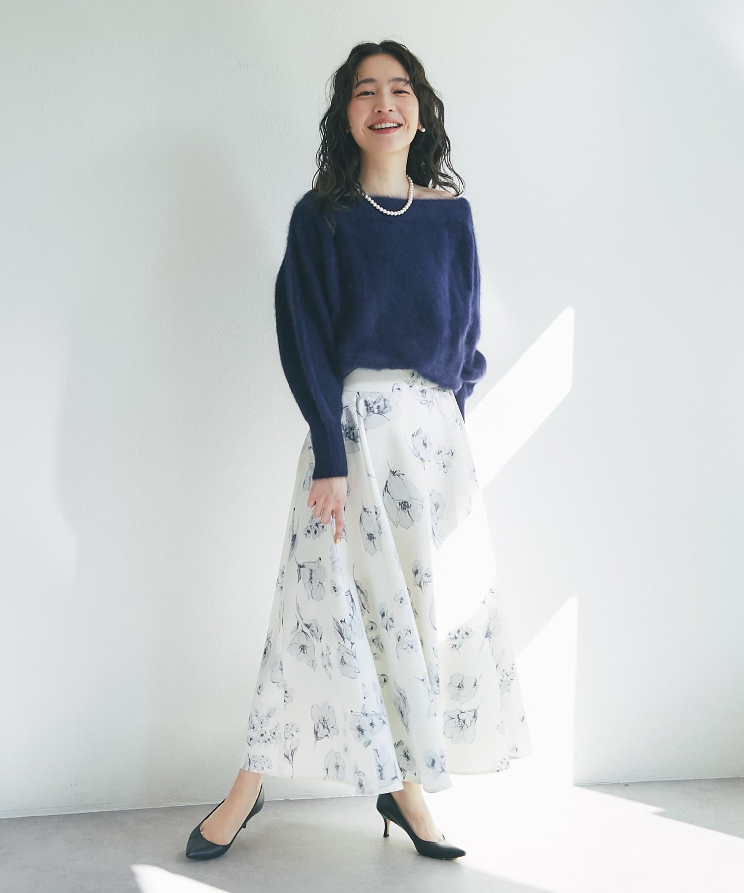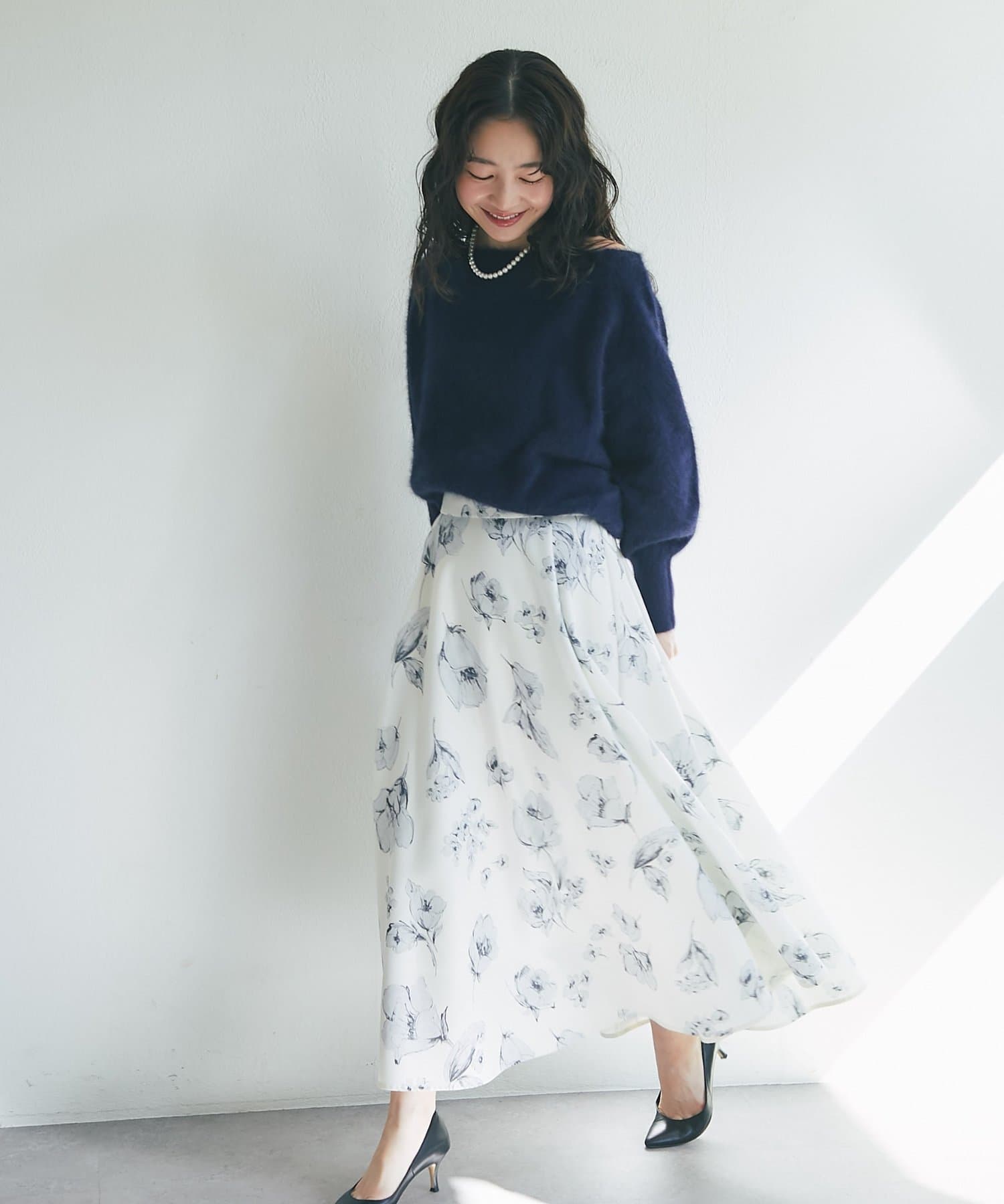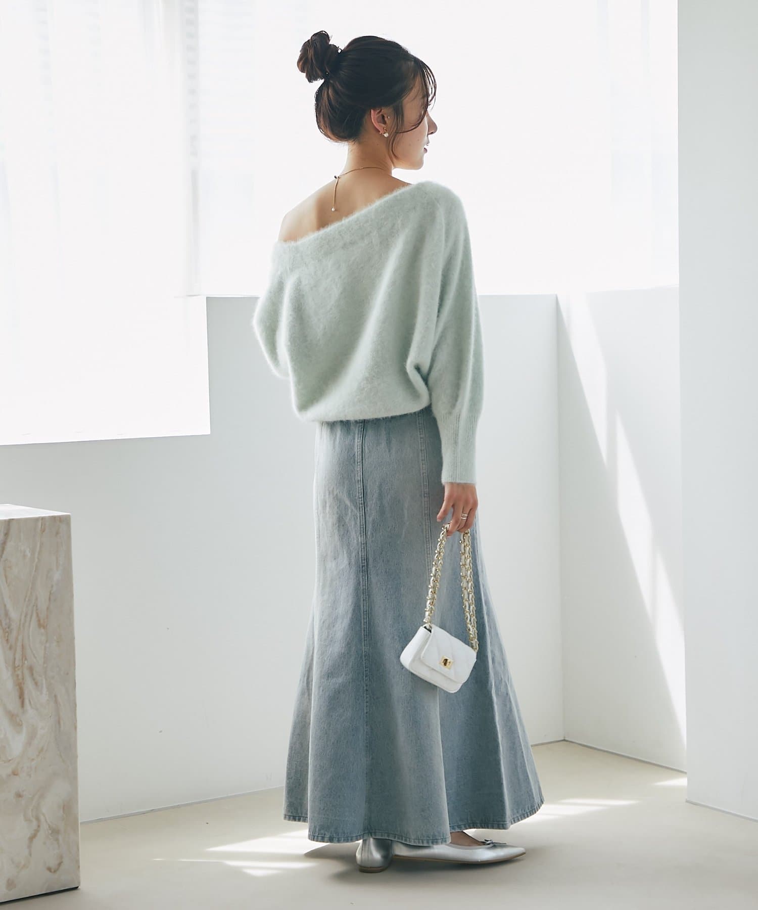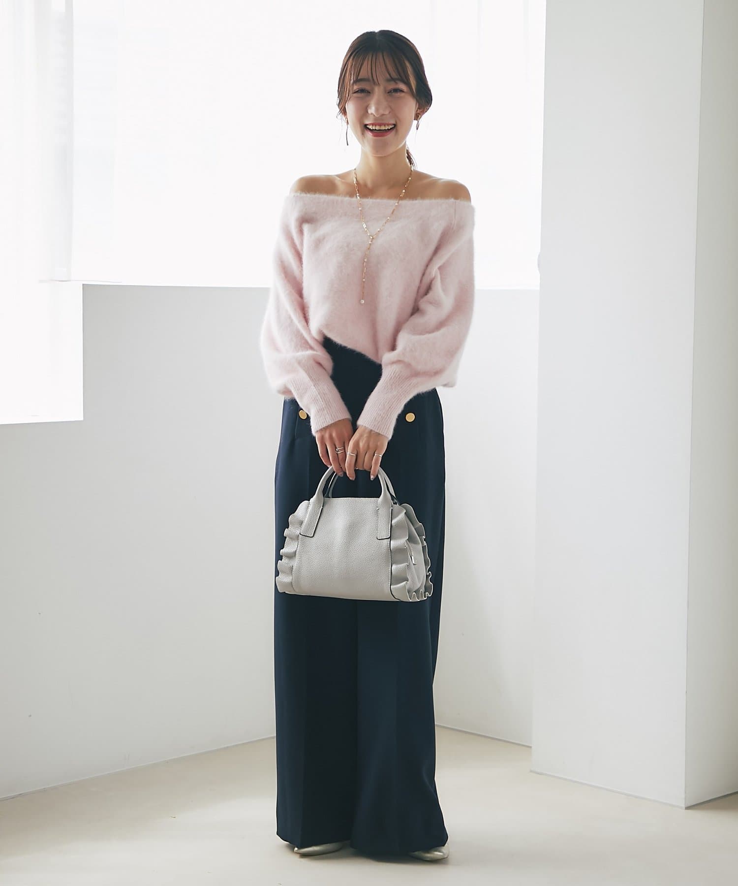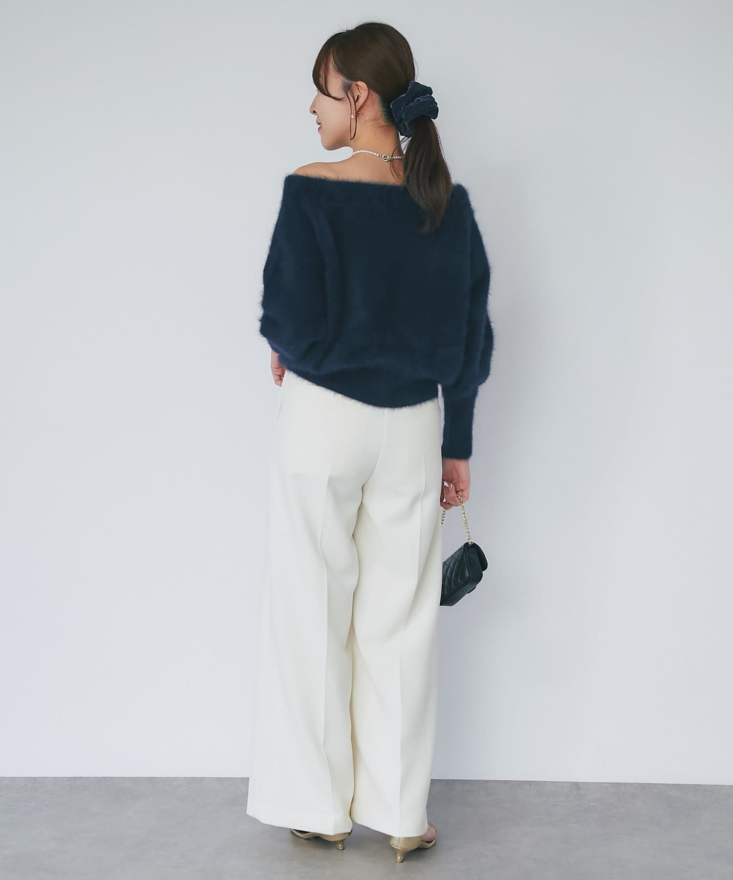 ふわふわ素材で女子力高まるオフショルニット