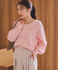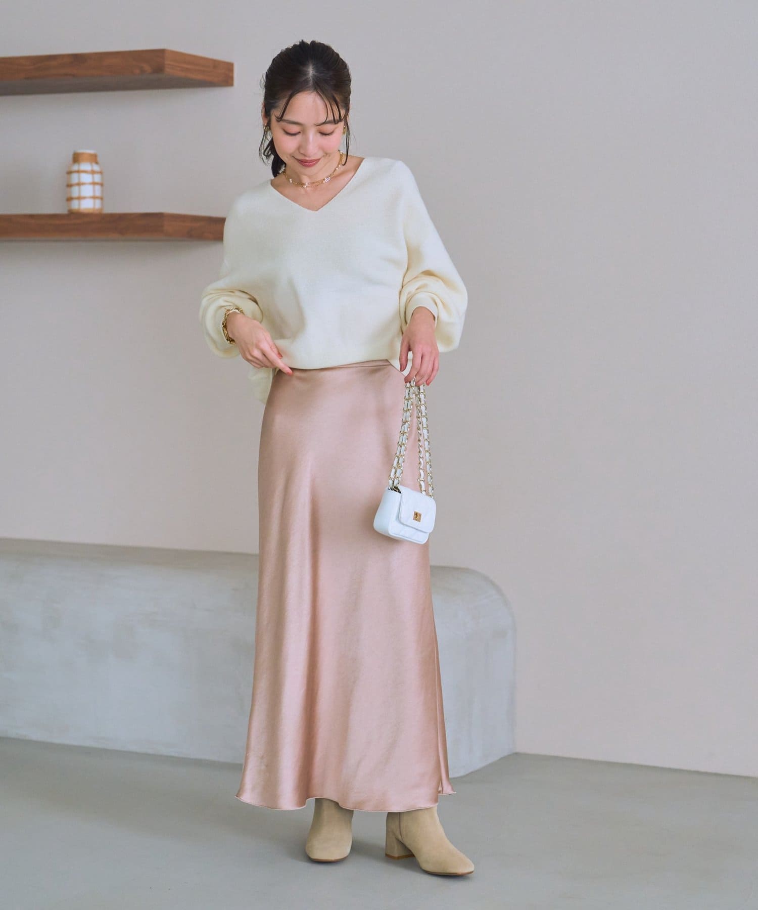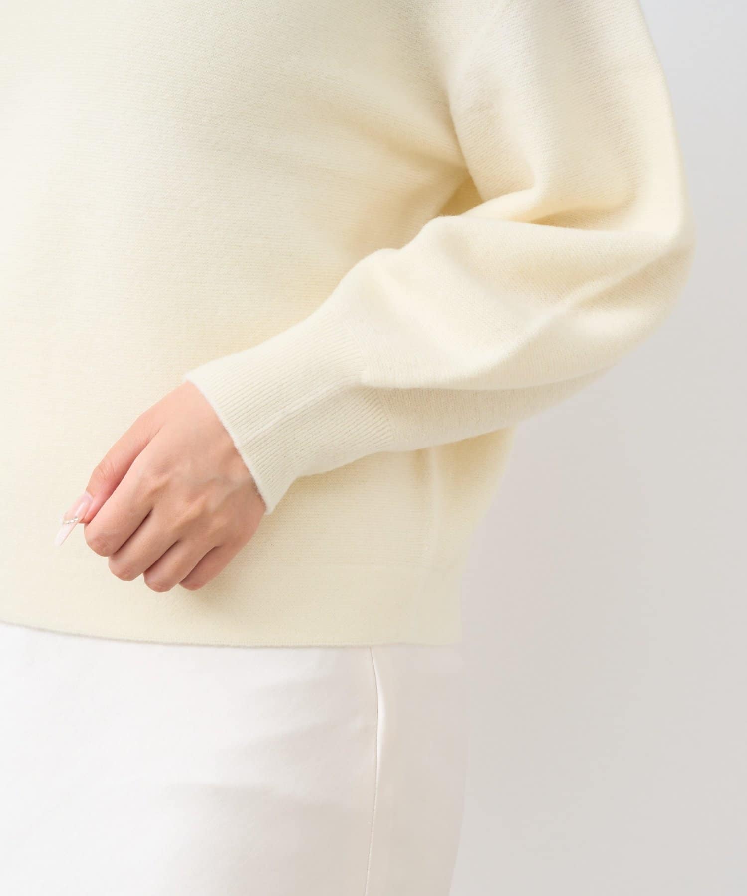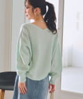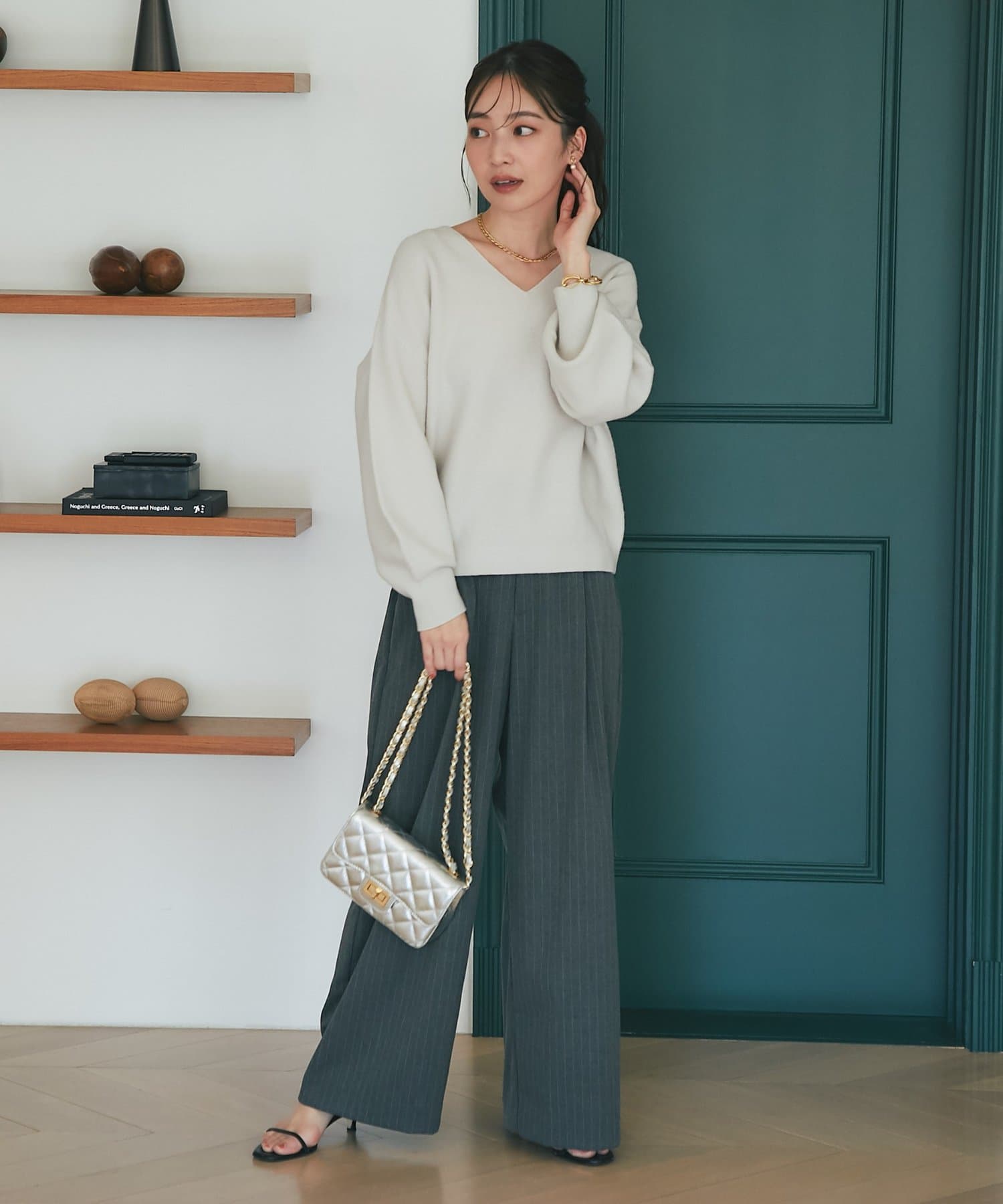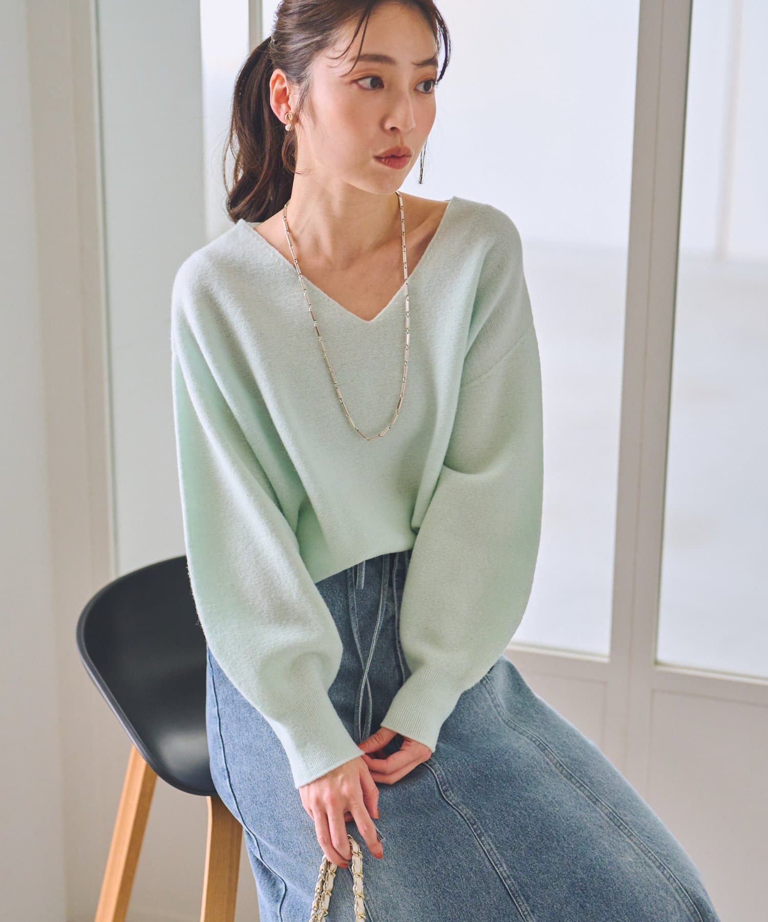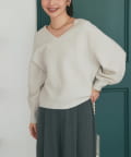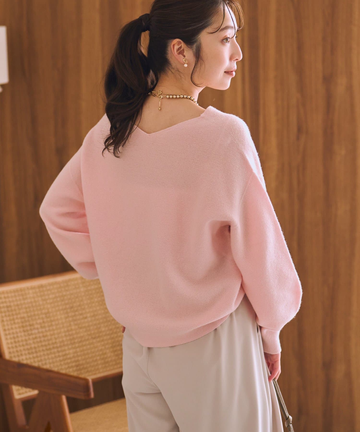 深すぎないVネックが首元をすっきりと見せ、ボリュームスリーブが程よいアクセントに。