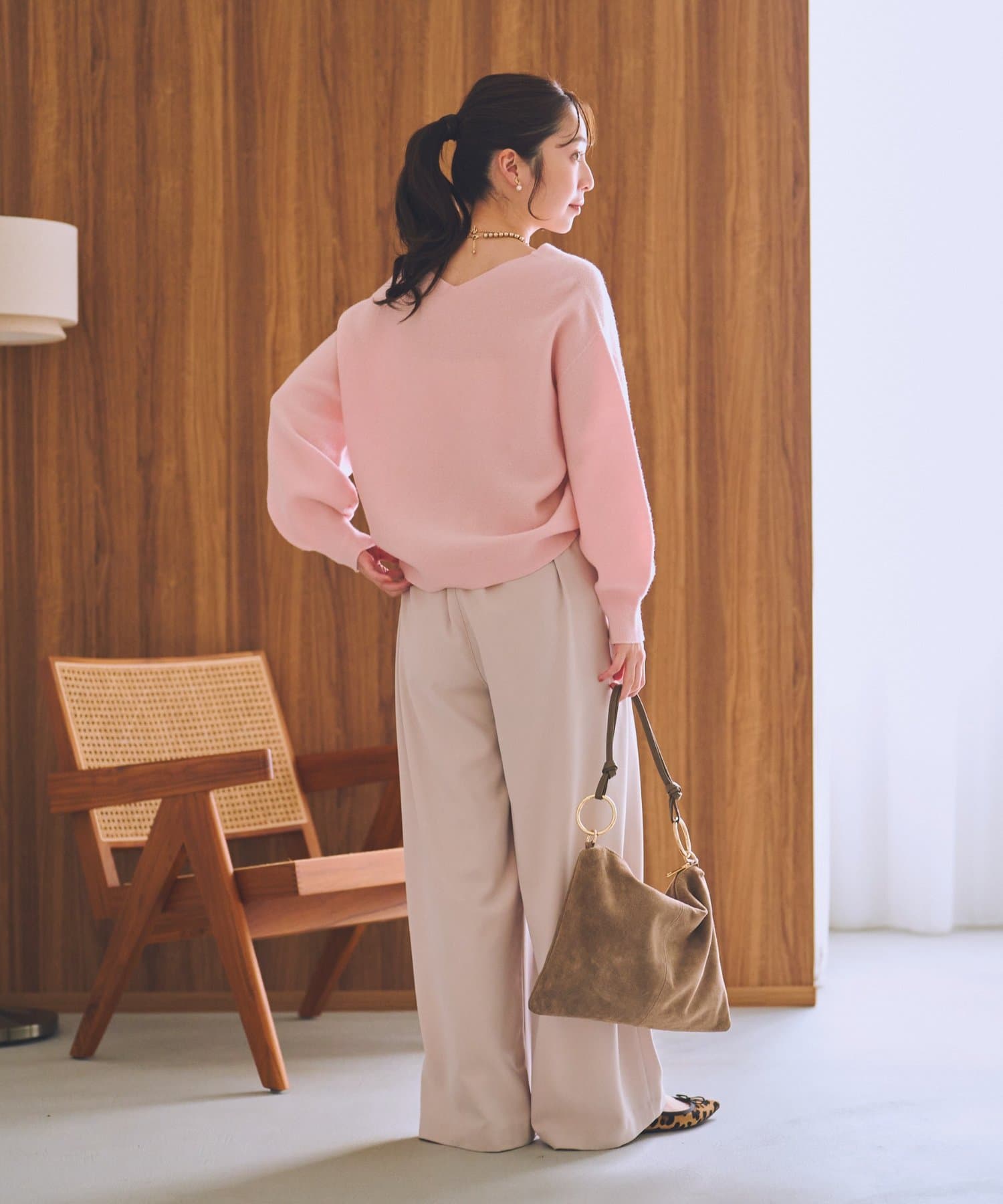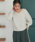 La boutique BonBon(ラブティックボンボン) 【デコルテ美人見え】ウール100%強縮Vネックニット