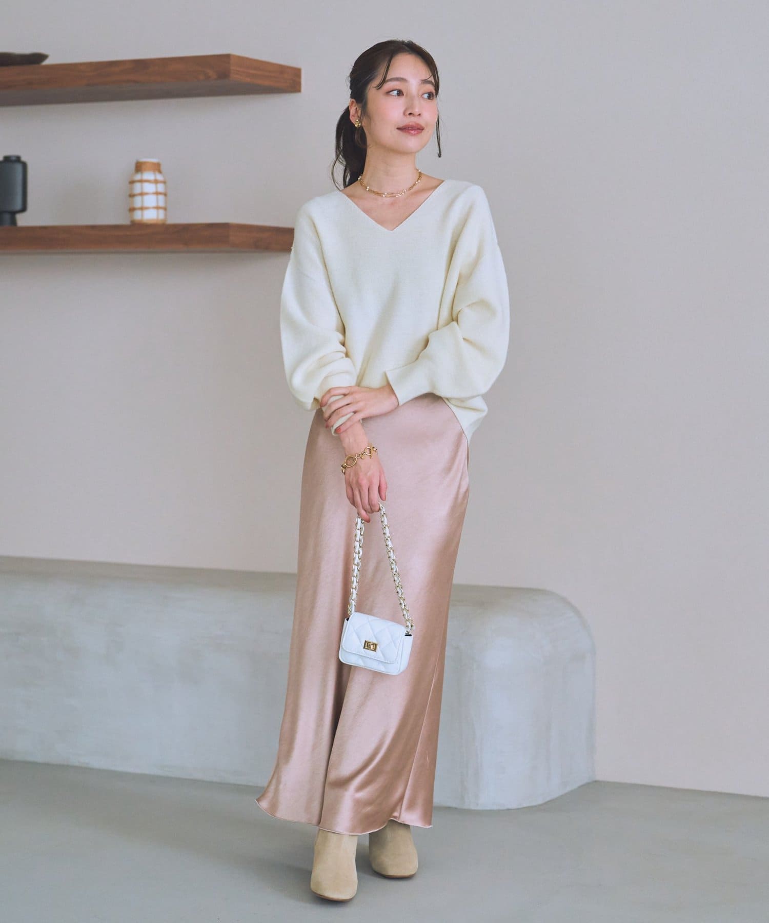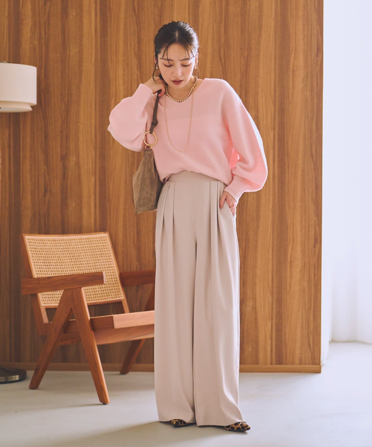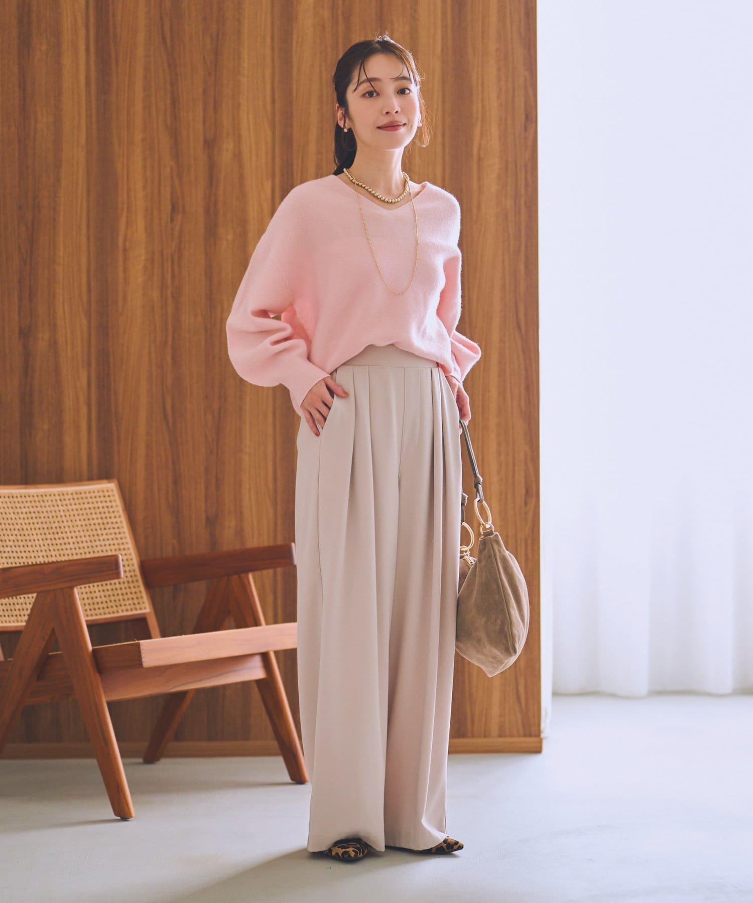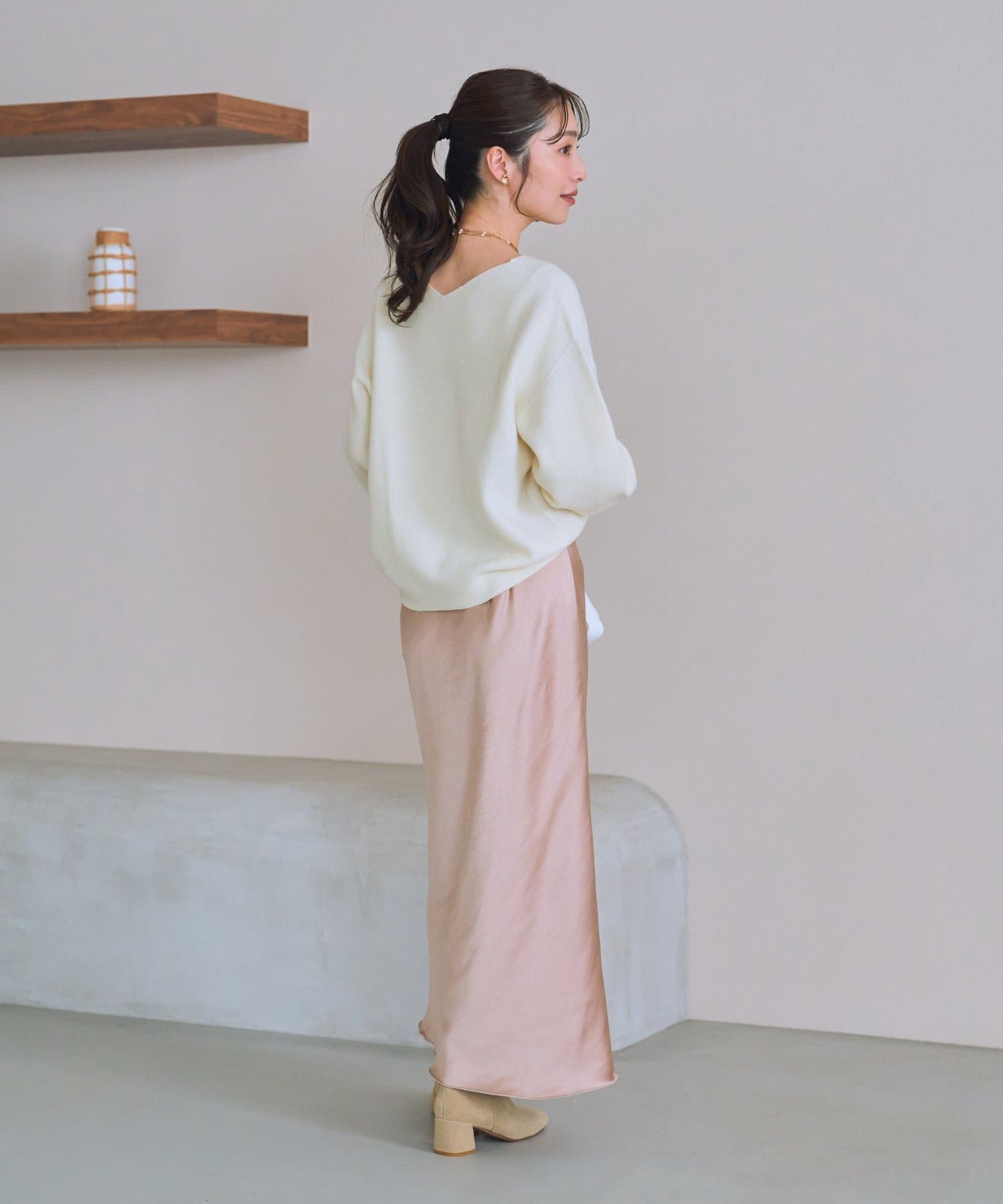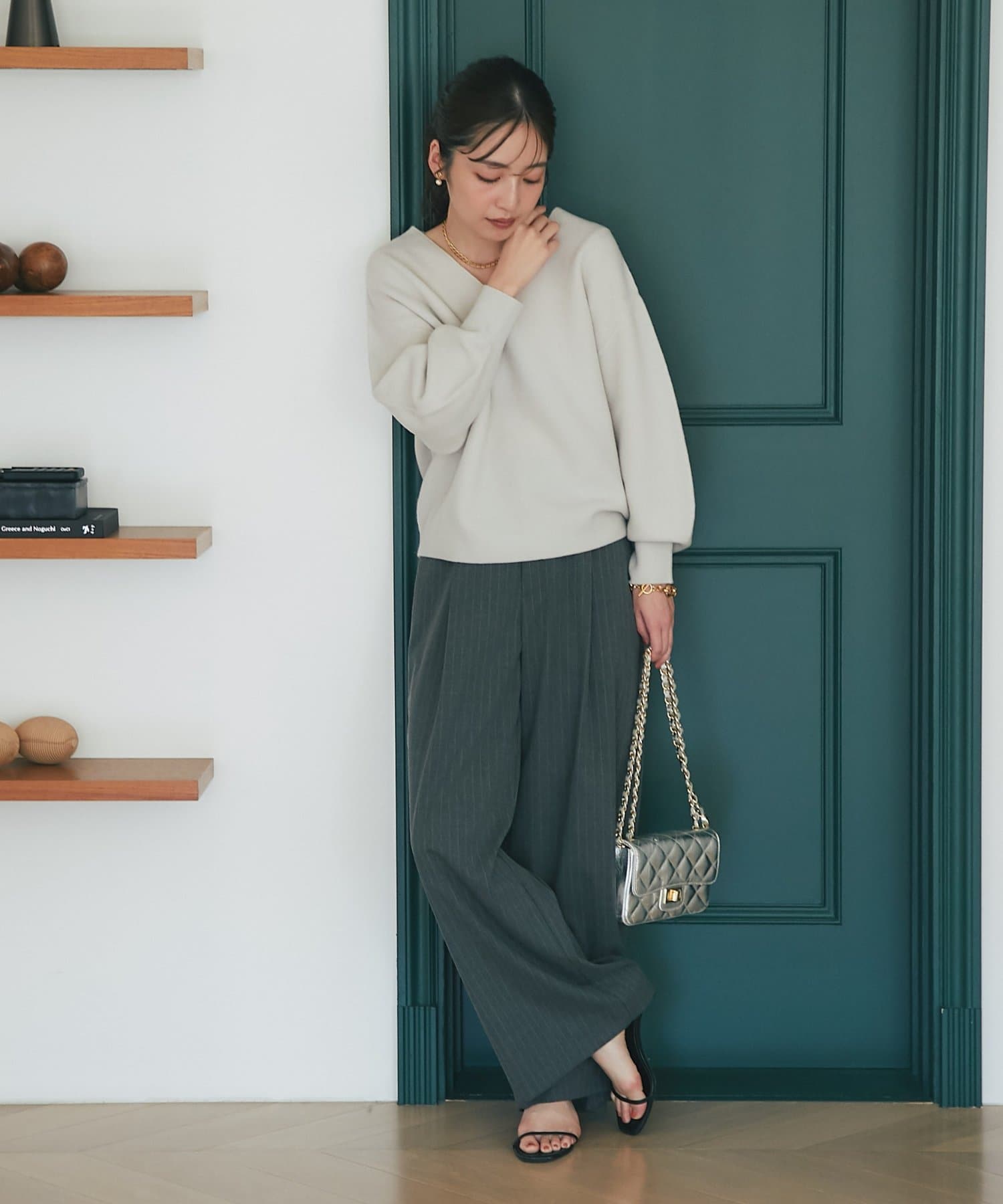 程よくゆったりめの着心地でデコルテを美しく見せつつ、ボトムにインせずともバランスよく着こなせます。