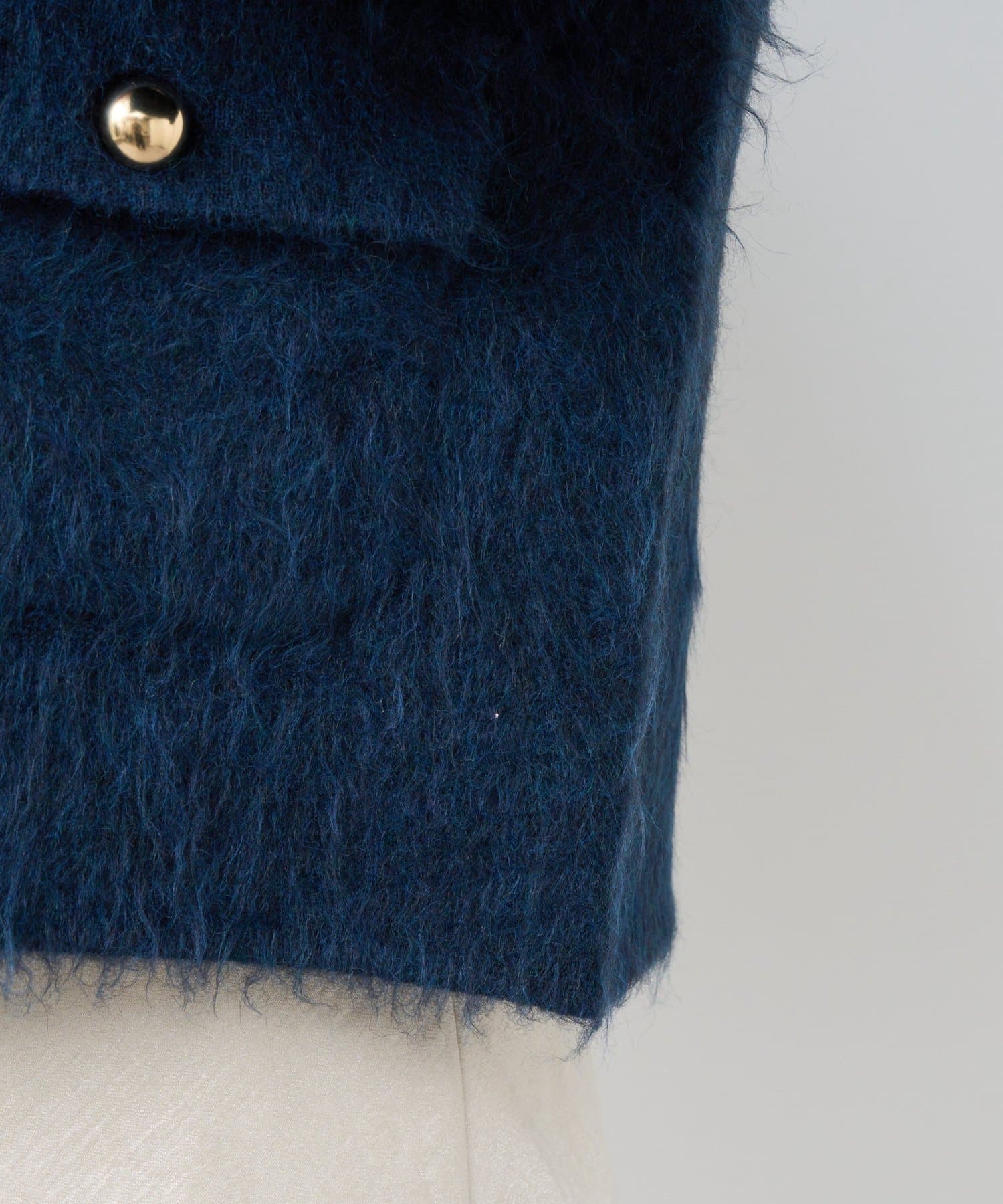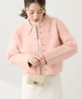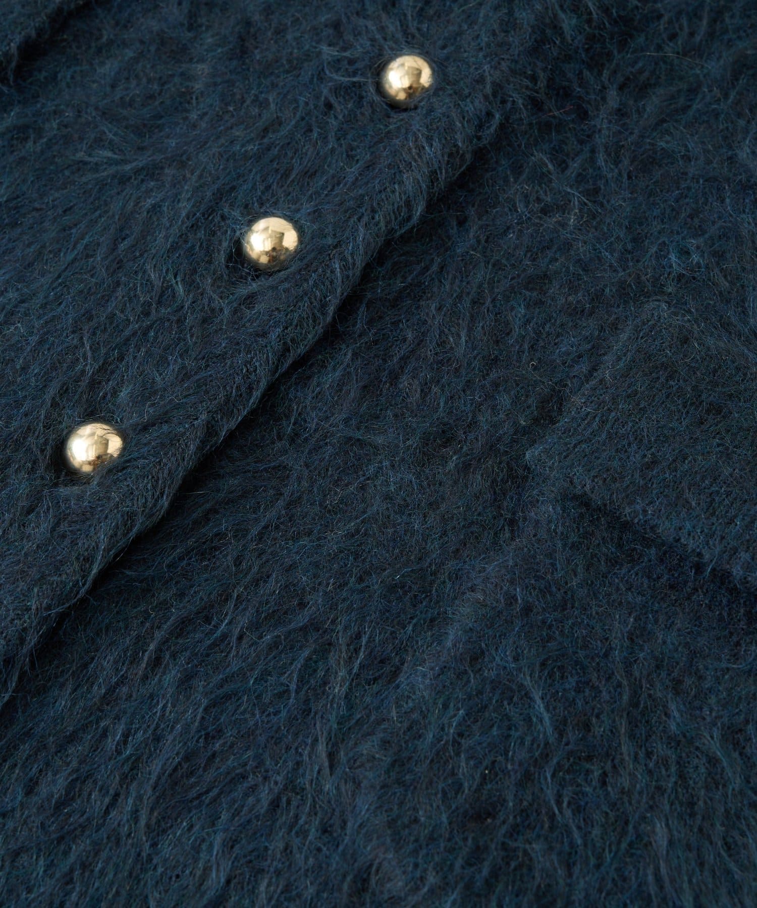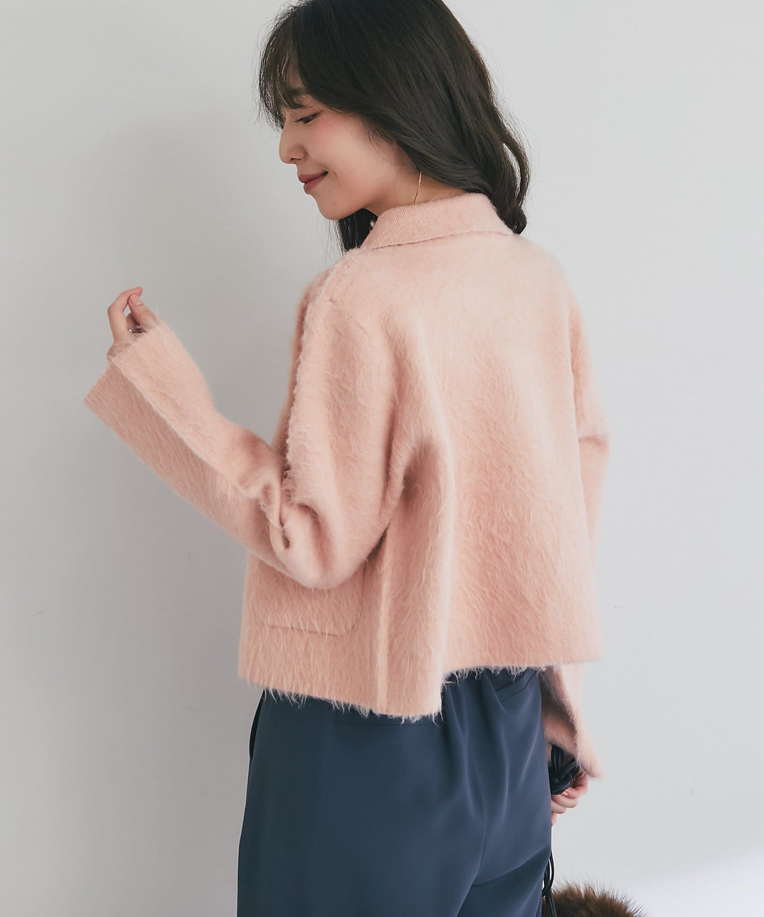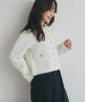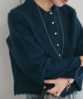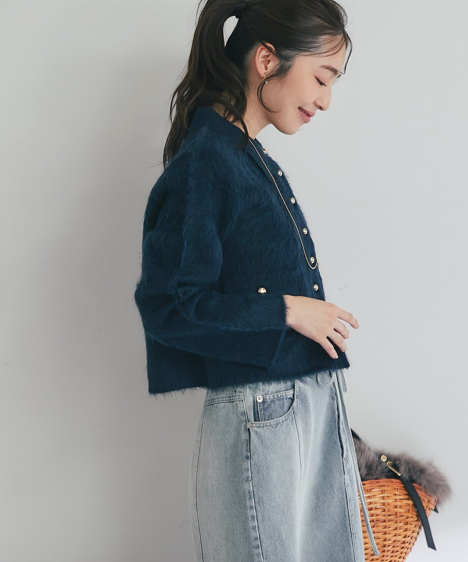 高級感のある素材とゴールド釦が上品な印象の、襟付きニットカーディガン。