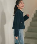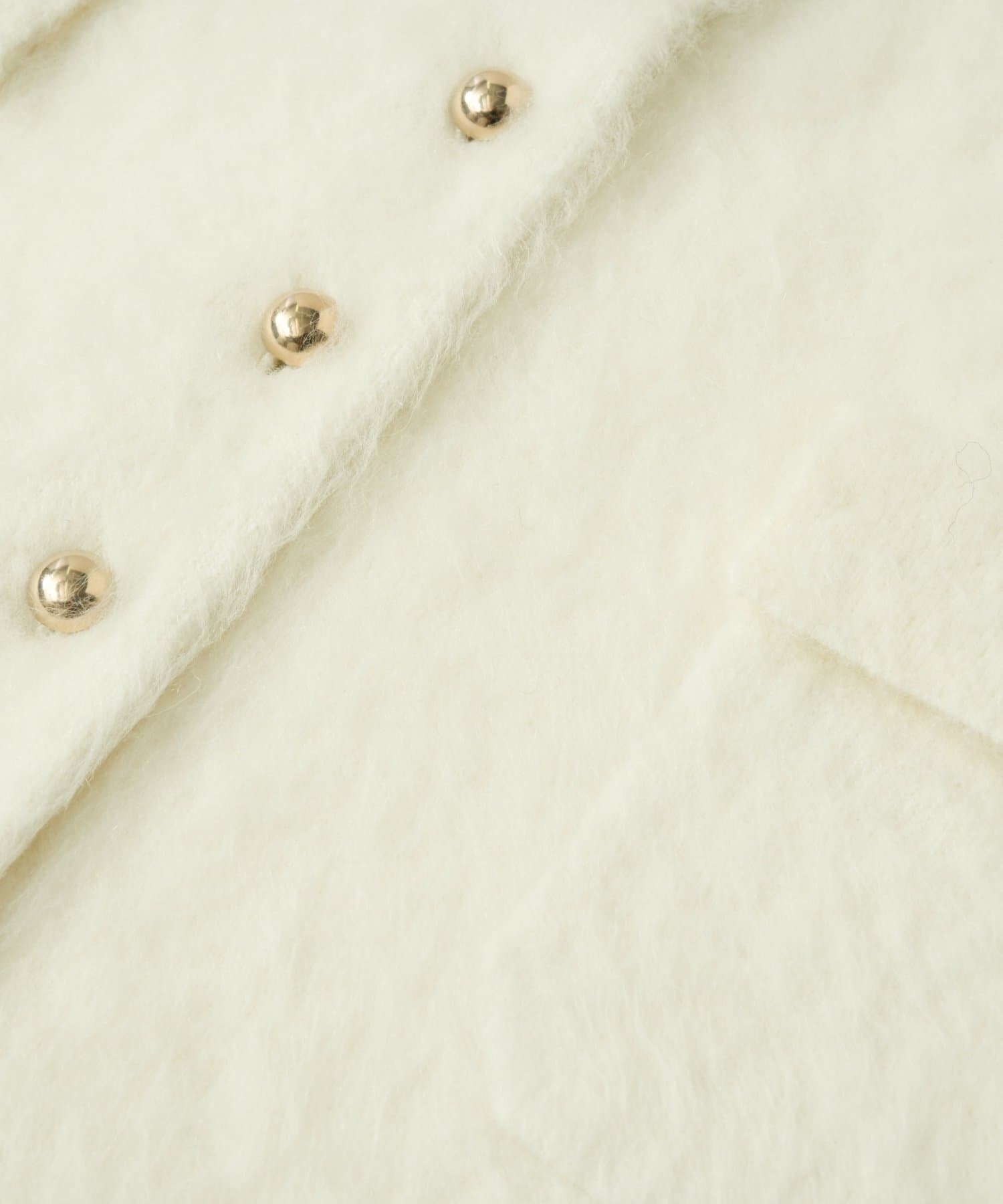 少し大きめの襟とフロントのゴールドボタンがアクセントになり