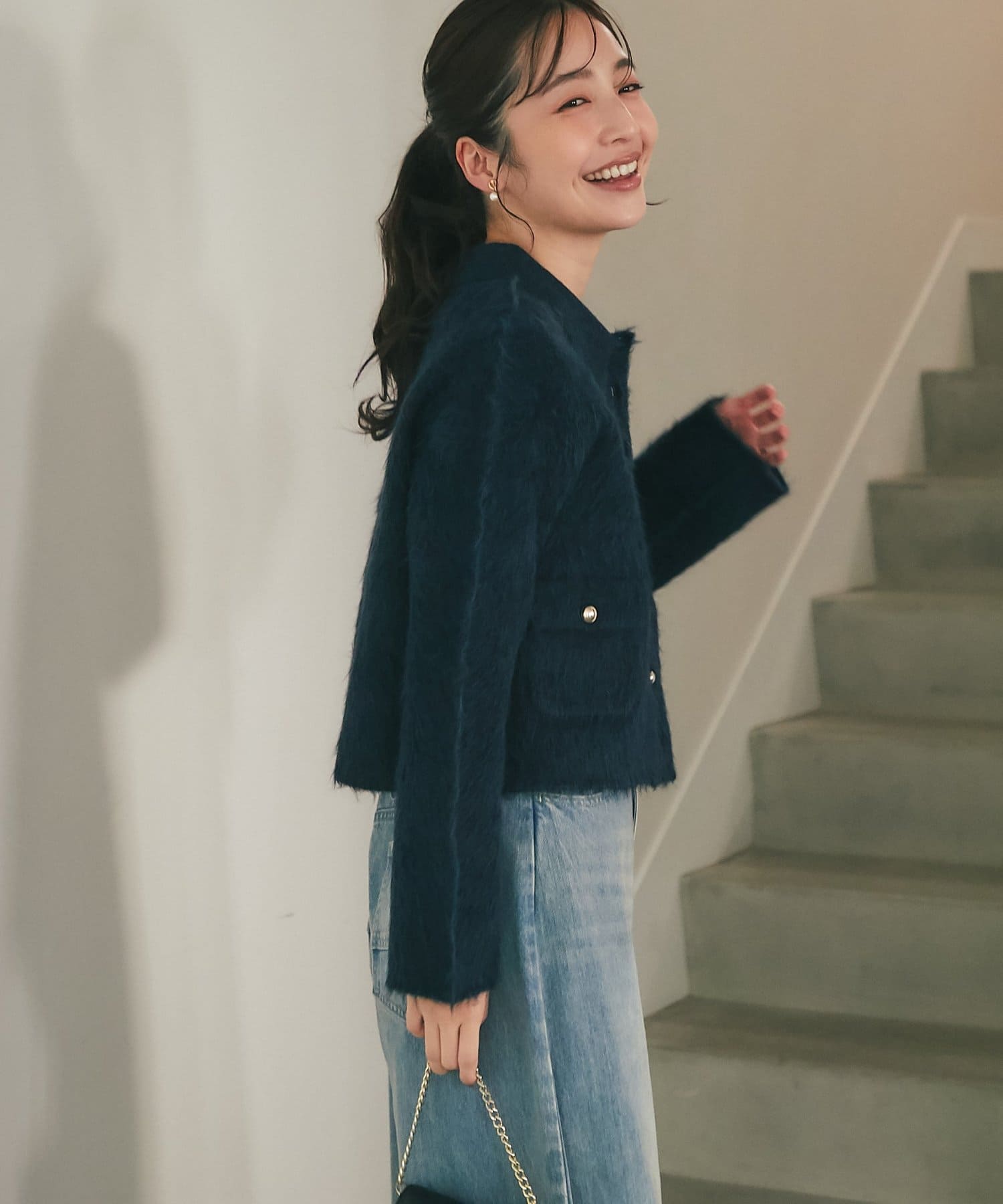 短め丈でスカートやワイドパンツとも合わせやすく、スタイルアップも叶える一枚です。