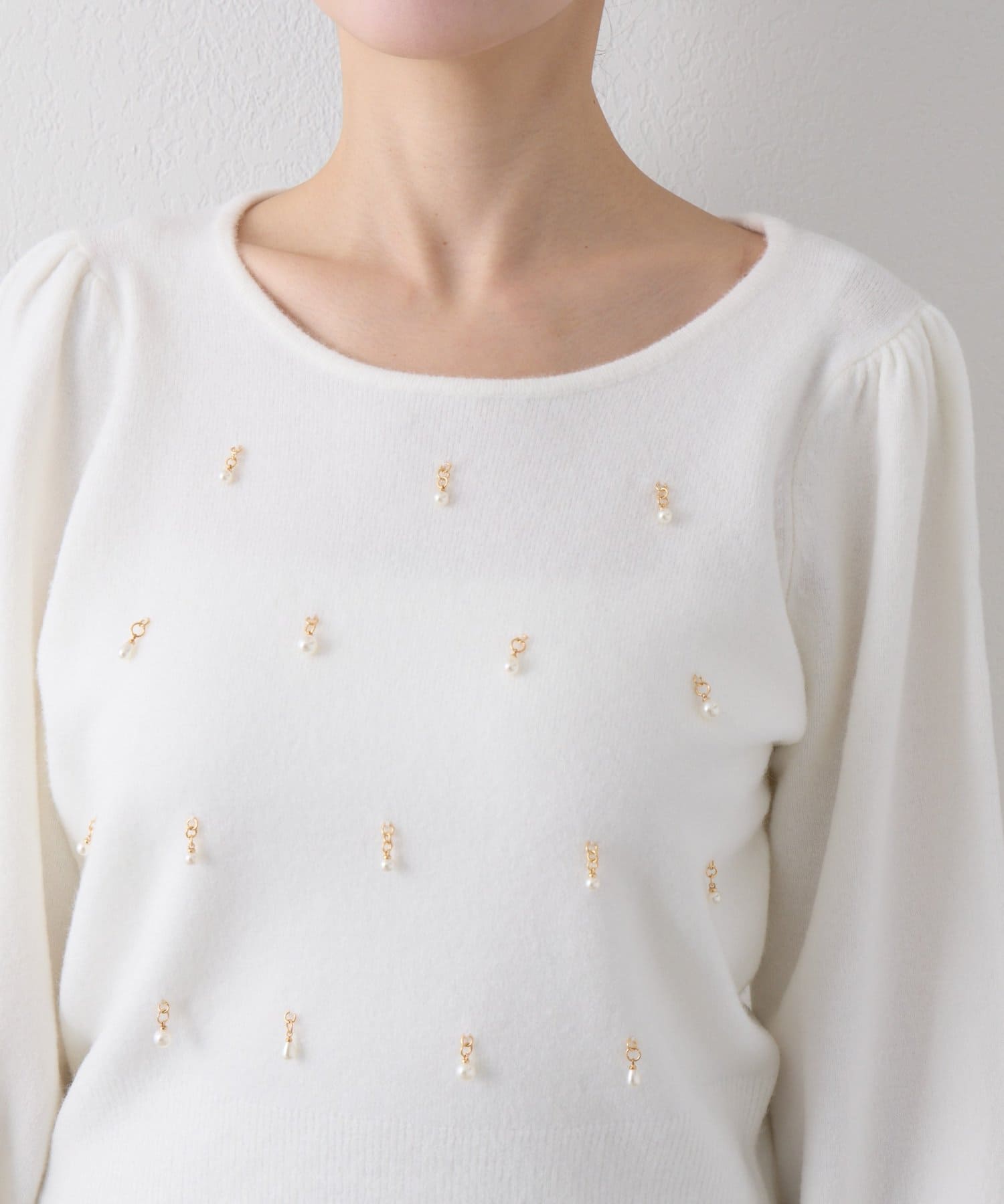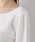 【お上品ニット】雫パールパフスリーブニット