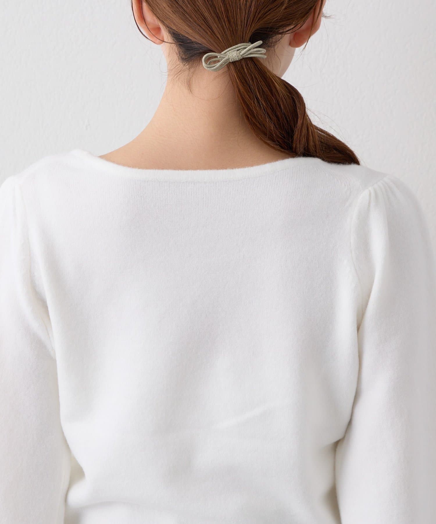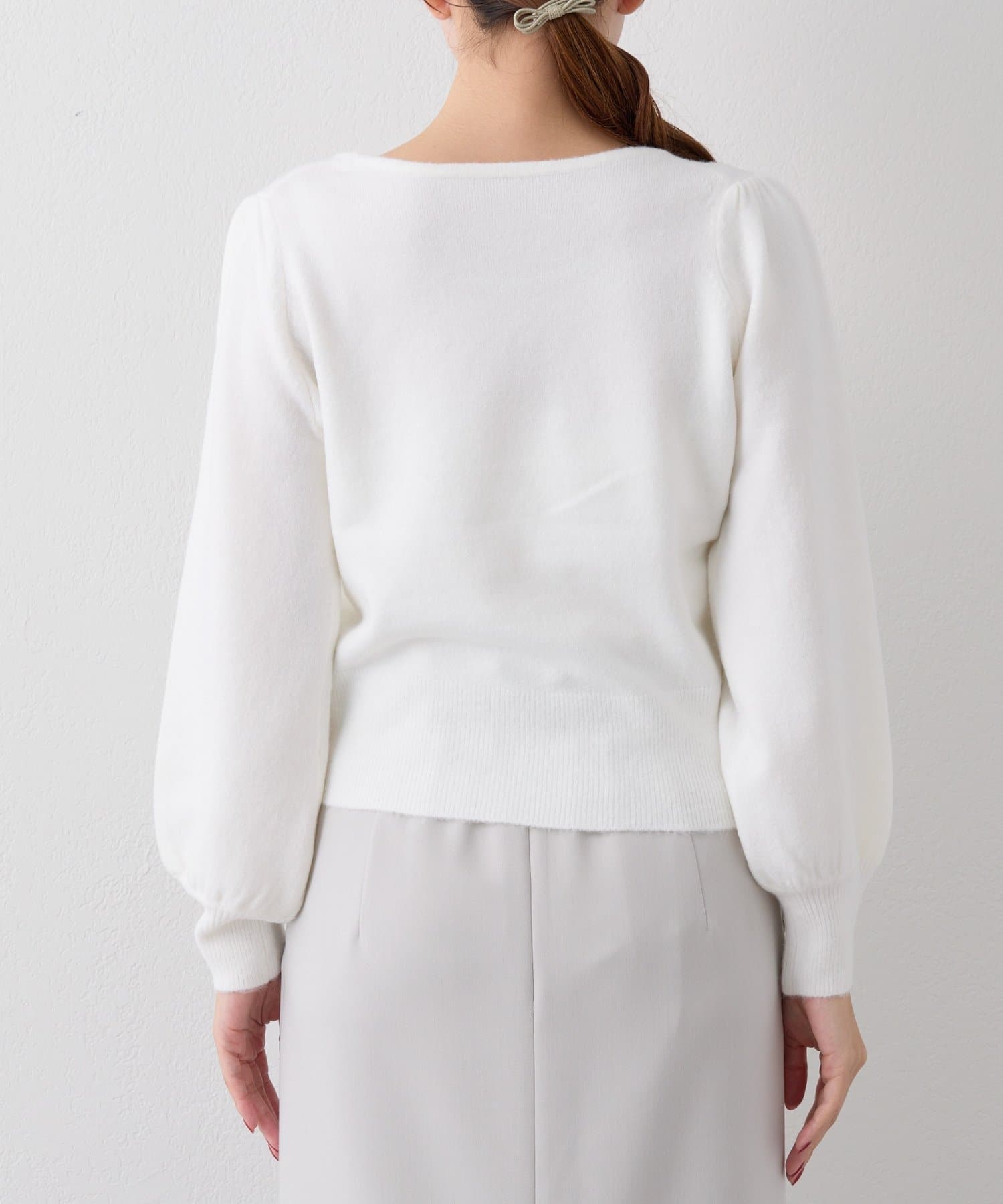 パフスリーブが可愛らしく、女性らしい柔らかさを演出。 軽く柔らかな風合いの糸を使用してるのでちくちくせずに着ていただけます。