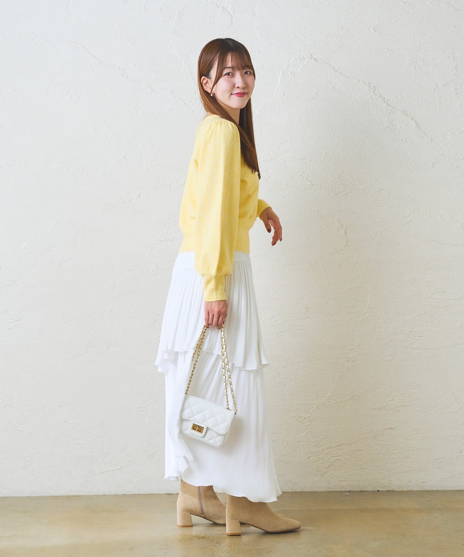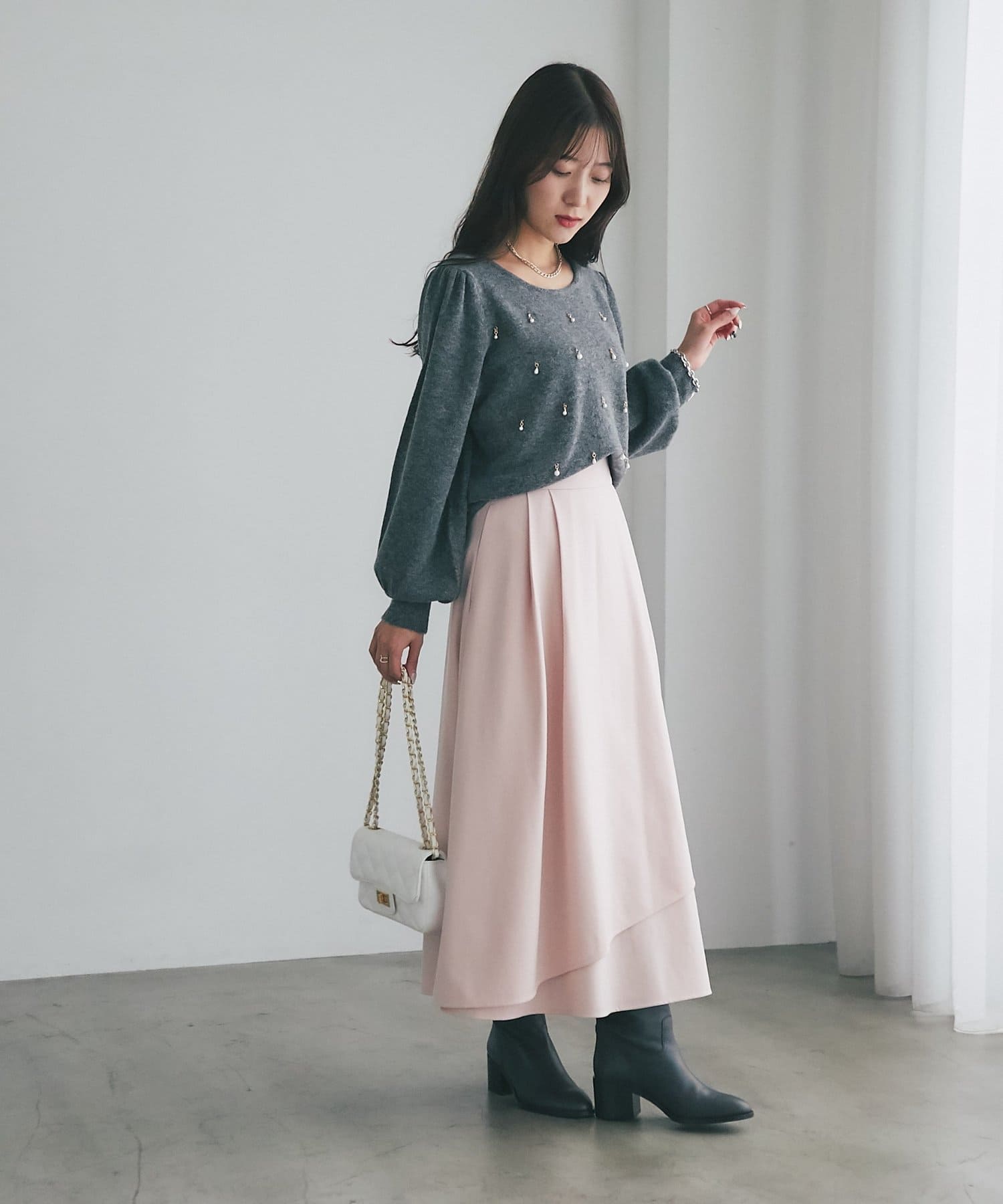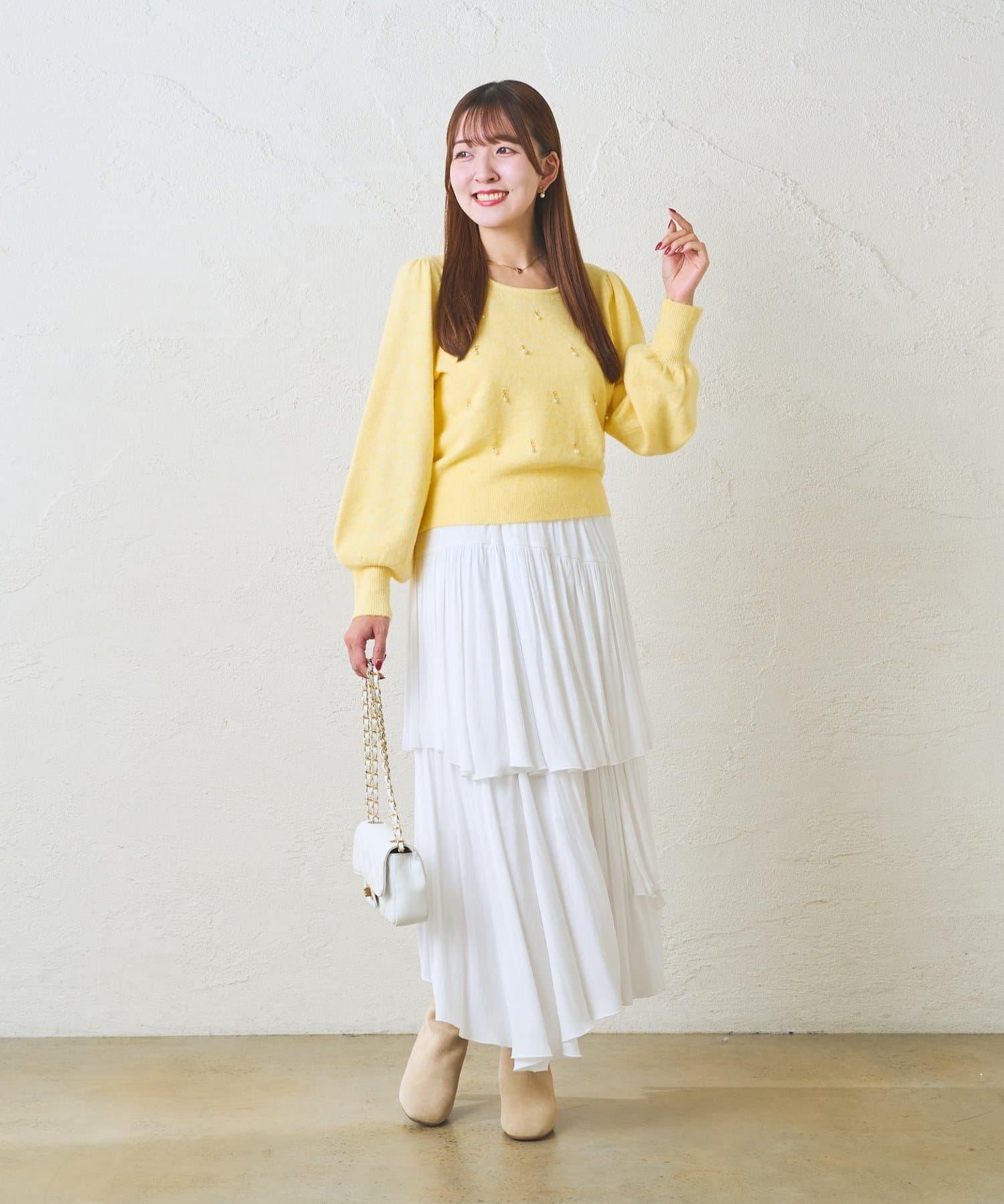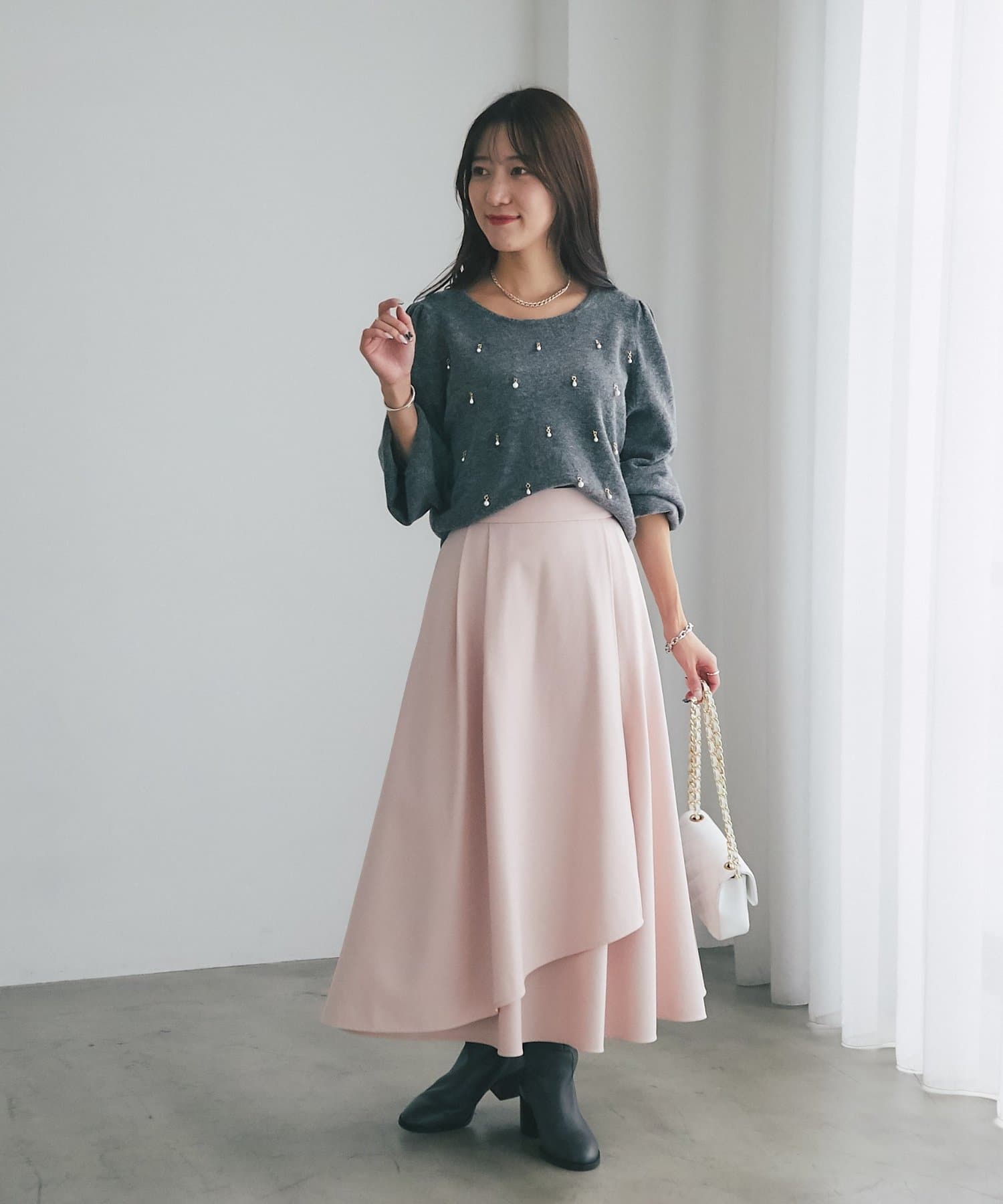 大人の女性にふさわしい、洗練された着こなしが楽しめます。
