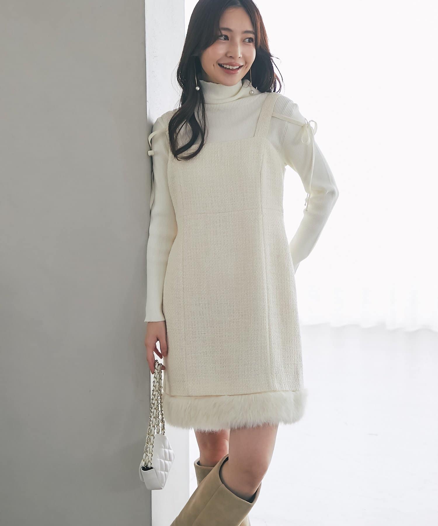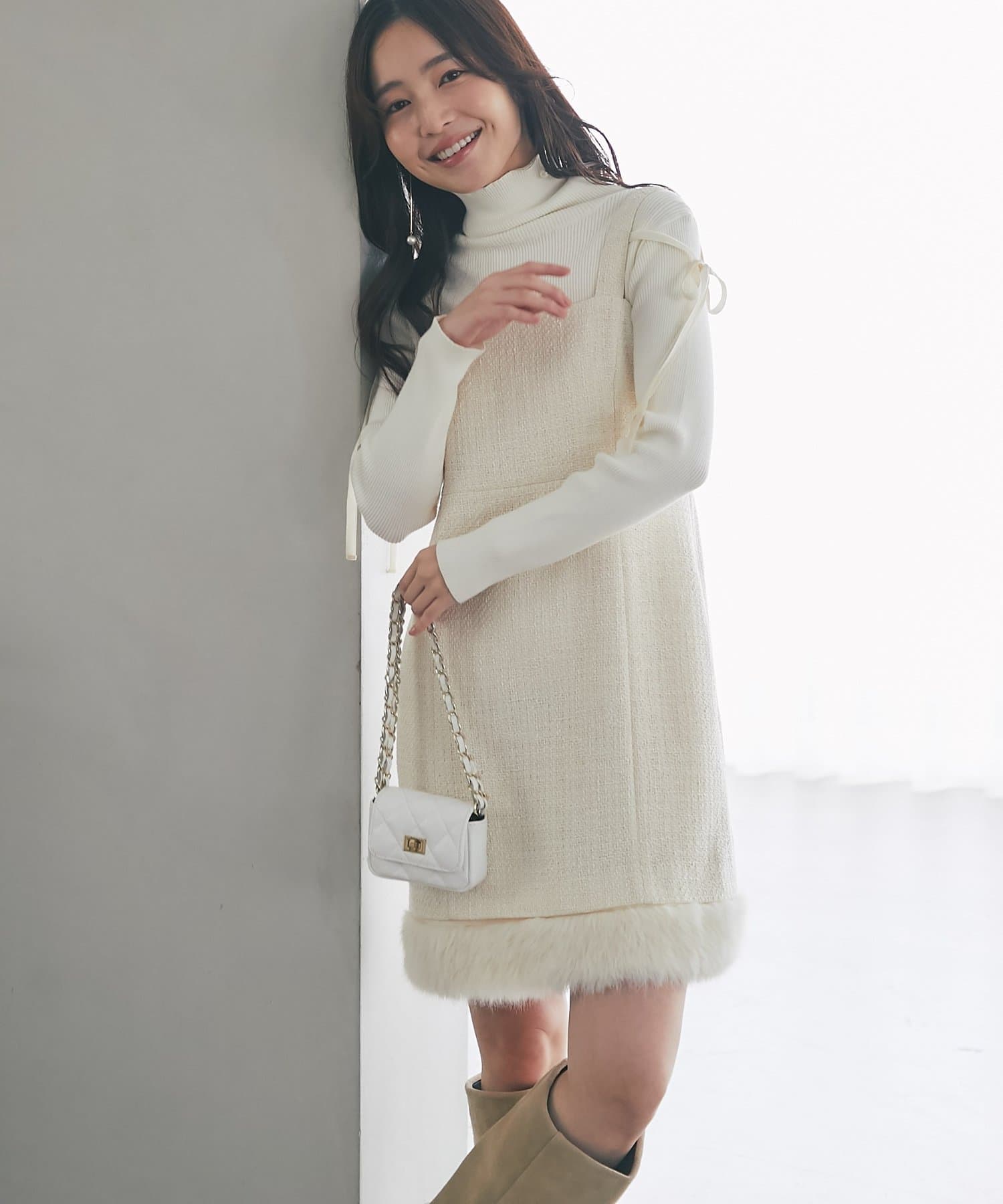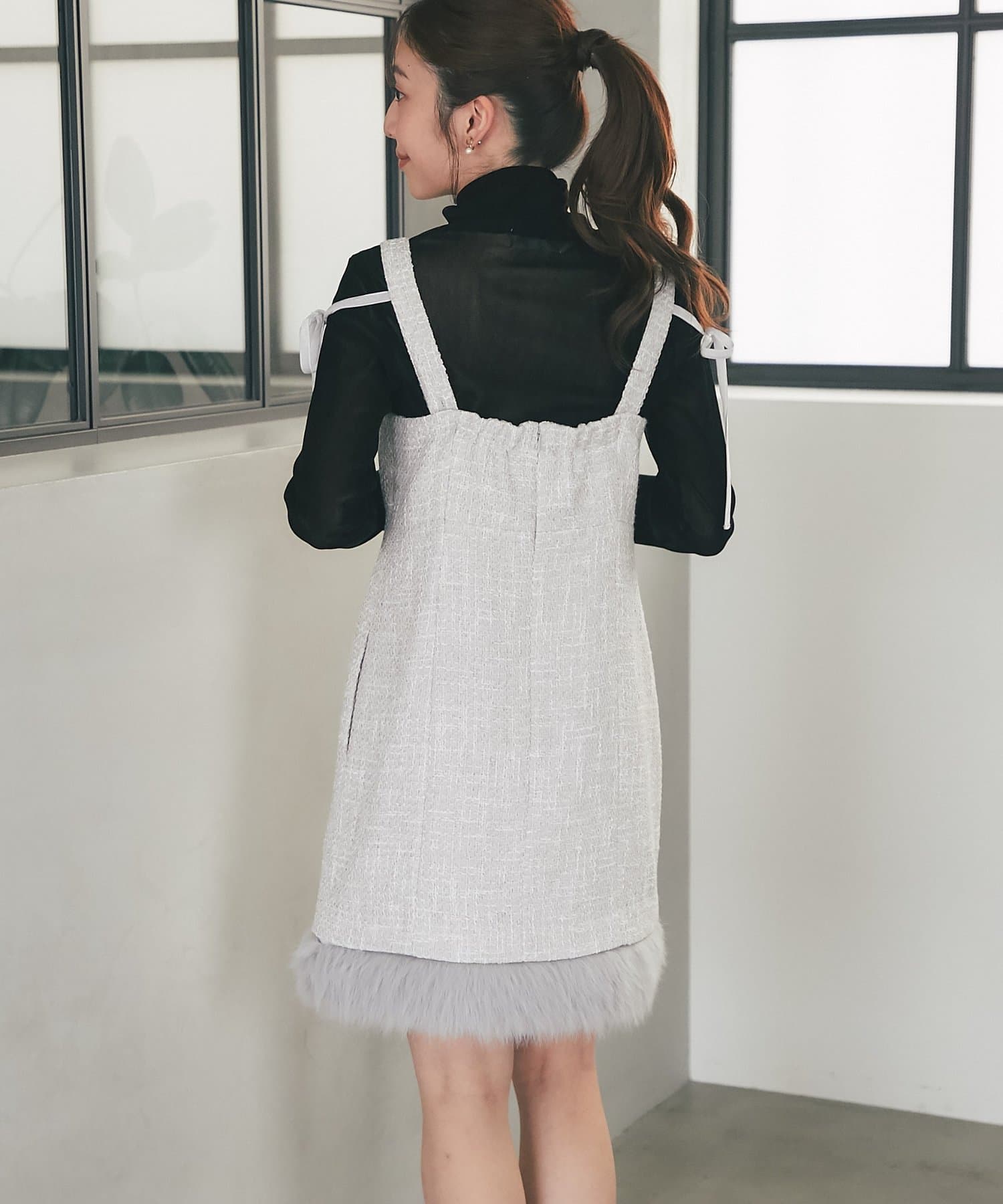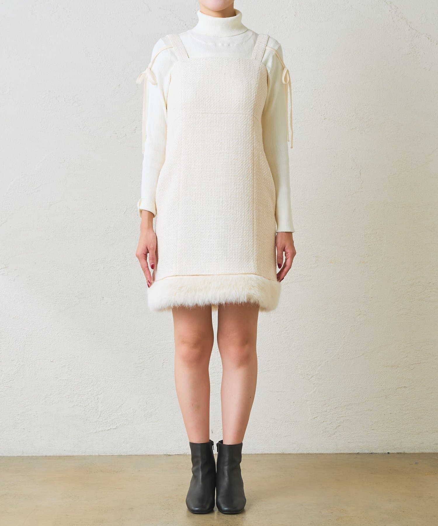 【大人ガーリー】ファンシーツイードフェイクファー付きジャンドレ