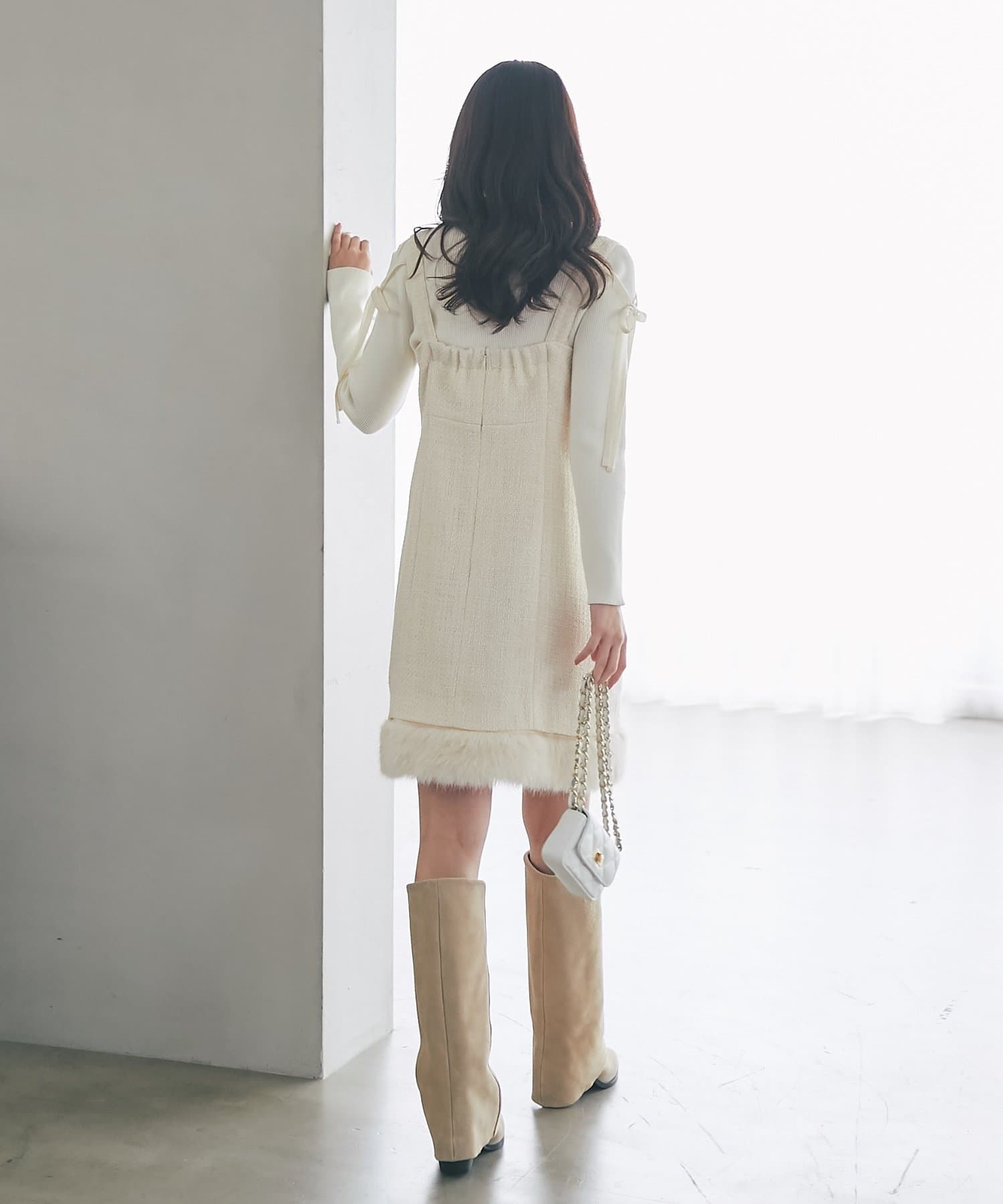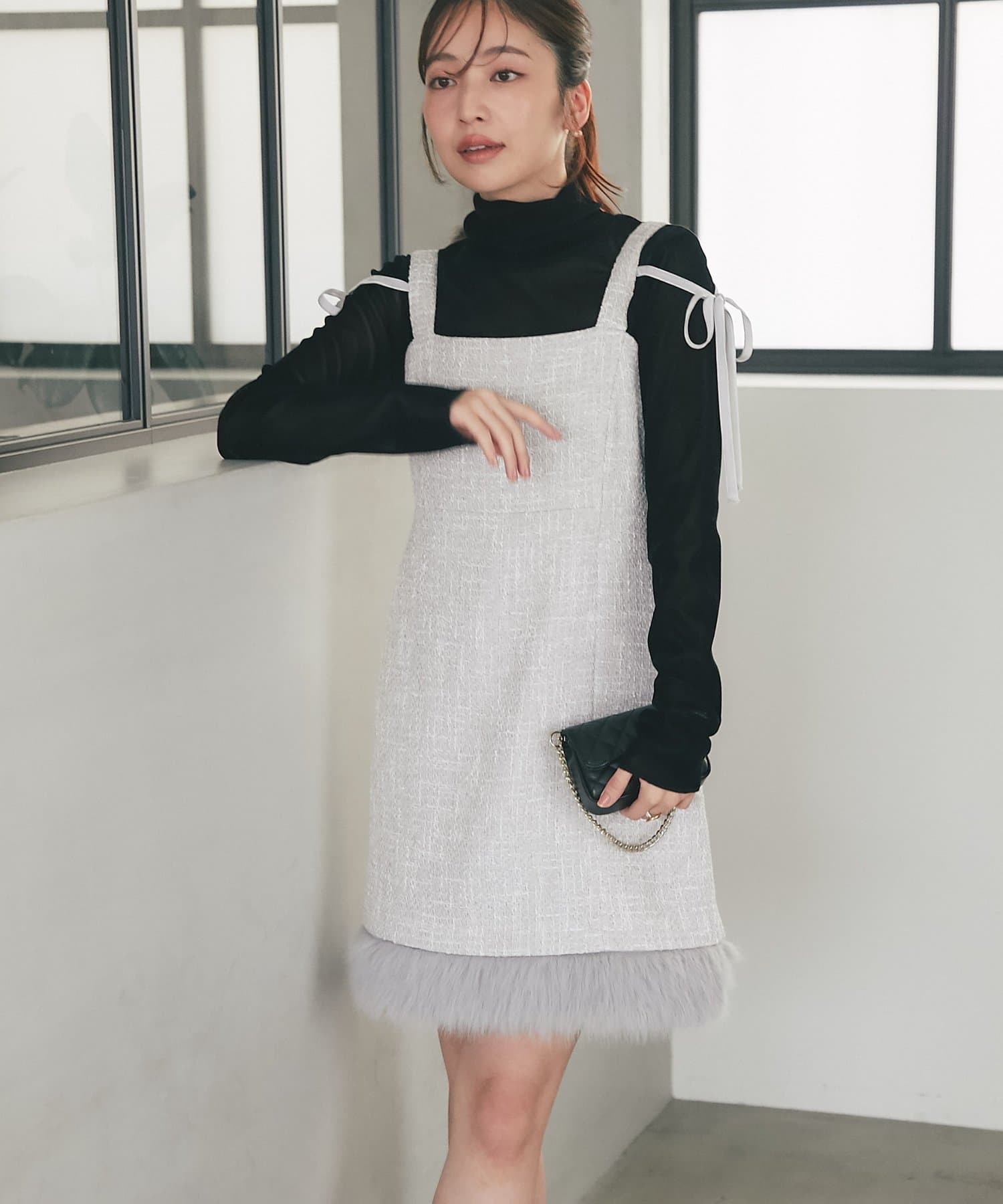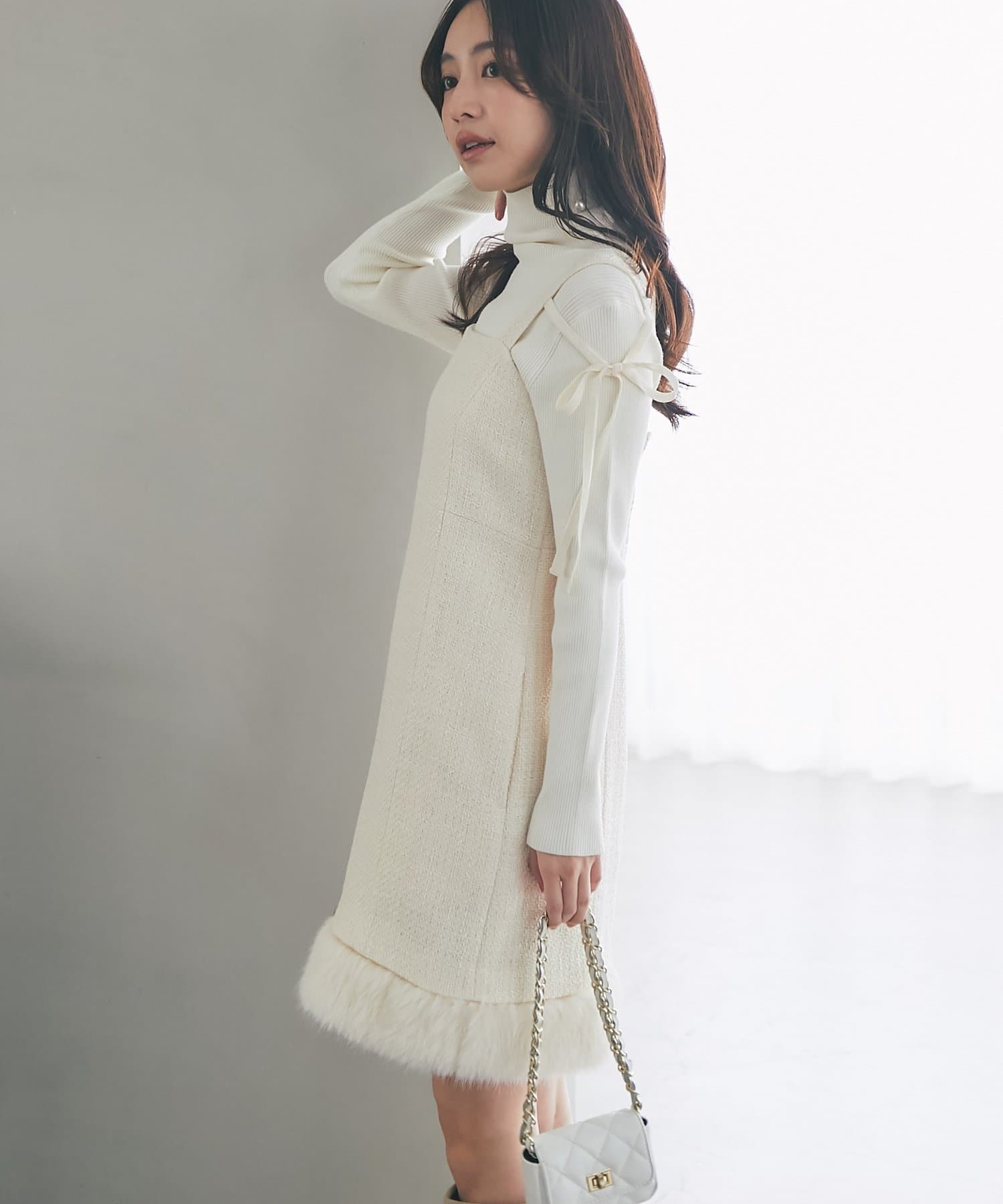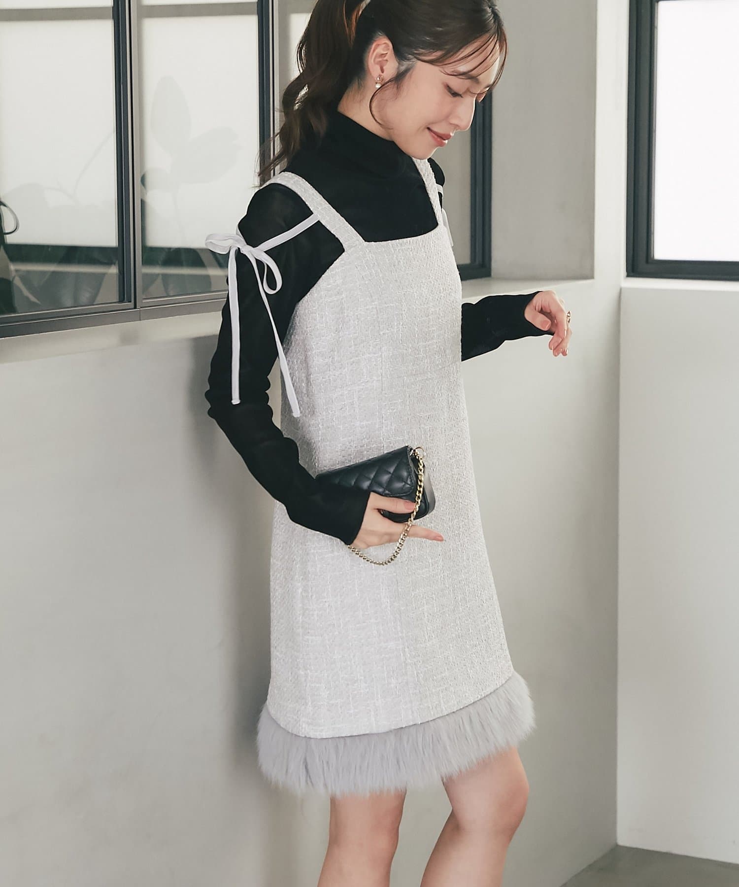 【大人ガーリー】ファンシーツイードフェイクファー付きジャンドレ